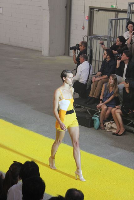 Les couleurs sont quant à elles très acidulées. A noter la présence sur presque toutes les pièces d’une bande noire, fil directeur de la collection.