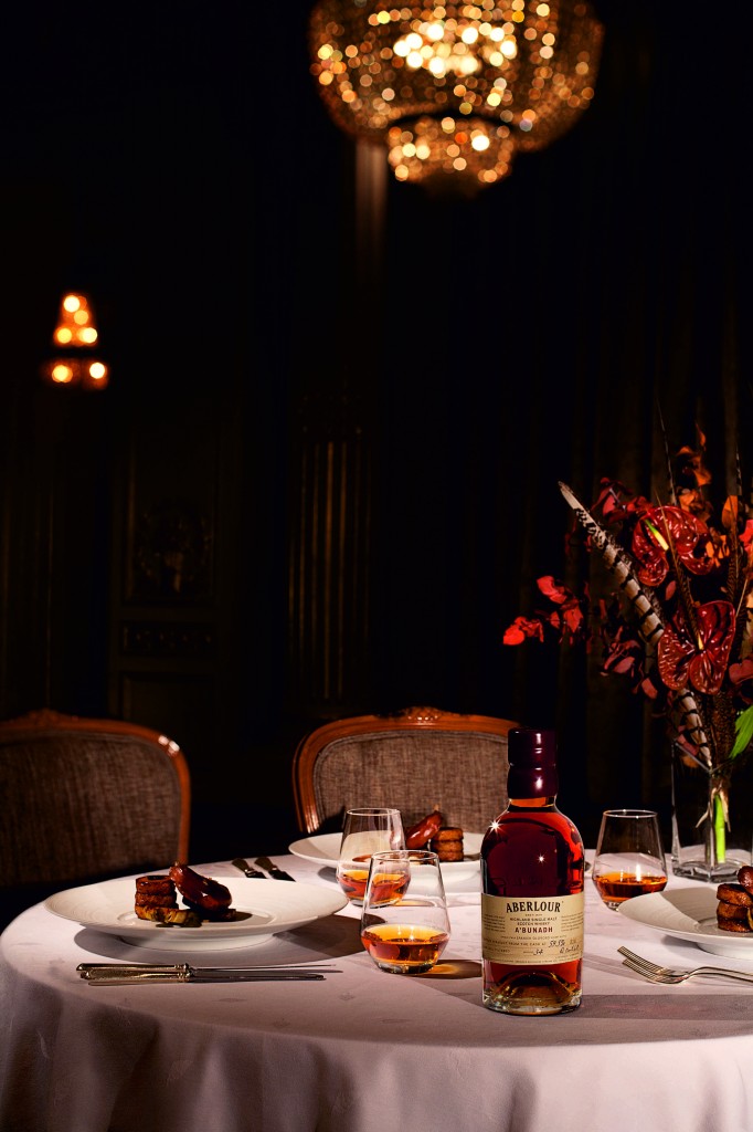 Lors de ces trois soirées, ABERLOUR invite les amateurs de fine gastronomie et de Single Malts d’exception à découvrir un menu spécialement créé par le Chef étoilé Simone Zanoni. Lors de la dégustation, les convives découvriront l’association subtile des saveurs écossaises de la gastronomie du gibier et des Single Malts : chevreuil mariné aux baies de genièvre, homard écossais mariné et cuit au « 15 ans d’âge », légumes croquants d’antan et crème de haddock fumé, grouses rôties à la noisette torréfiée, fricassée d’artichauts et cèpes…