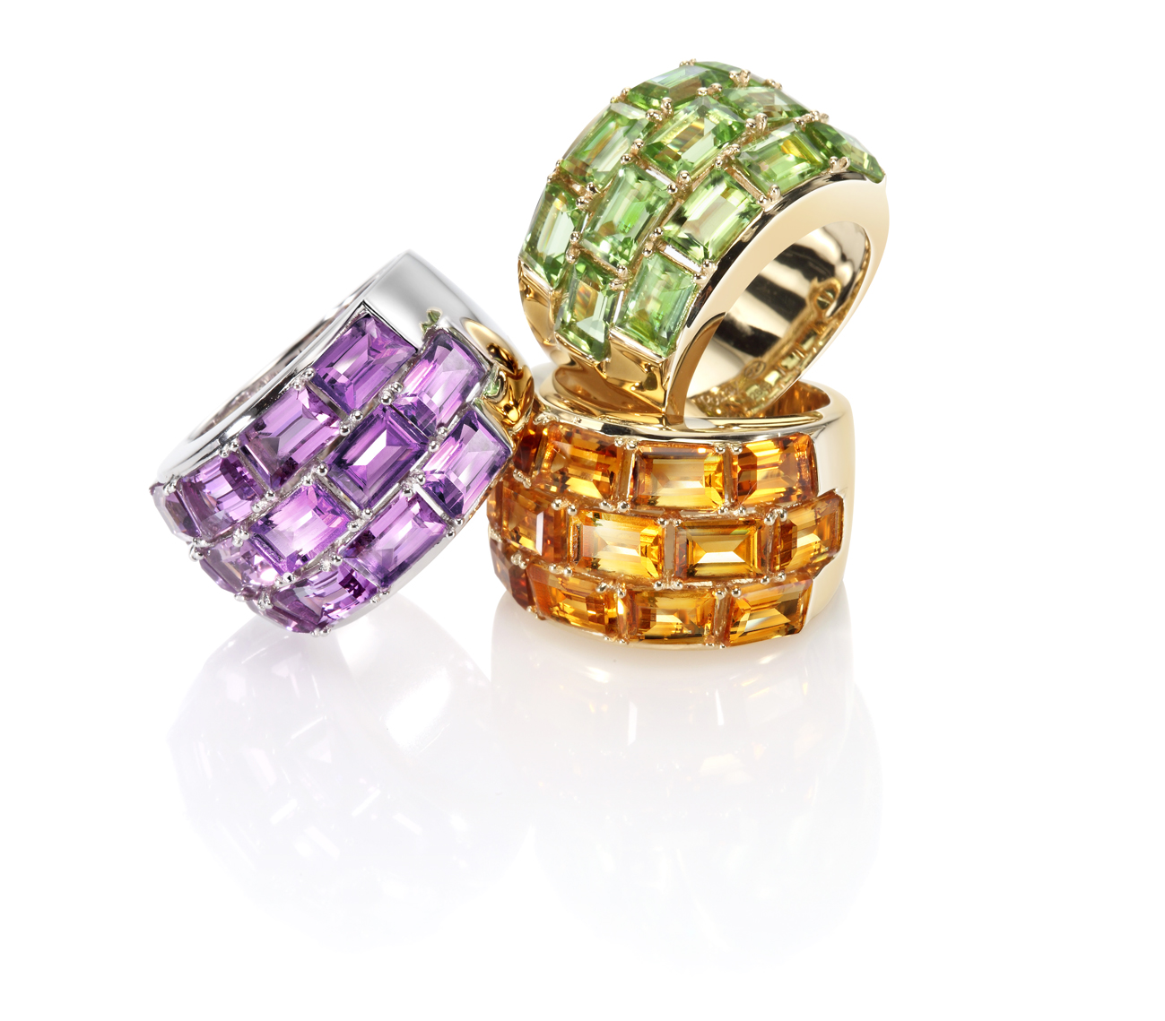Dans un style résolument Art Déco, Poiray a imaginé sa dernière collection nommée Niris. Une ligne de bagues conçue autour d’un travail subtil de la pierre fine. Un hommage rendu au raffinement des formes qui font la renommée de la Maison, un savoir faire historique au service de la délicate taille baguette.