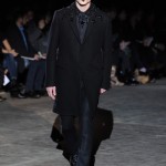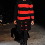 Cette saison Automne/Hiver donne à Riccardo Tisci l’occasion de sonder le rêve américain. Les obsessions de son enfance ressurgissent. Le drapeau américain et le mythe masculin du minotaure se confondent en un sportswear graphique et des costumes affutés. Après 7 saisons en tant que directeur artistique de l’homme chez Givenchy, ce défilé renforce la signature Riccardo Tisci, à savoir des silhouettes nettes et élégantes associées à un sportswear luxueux.