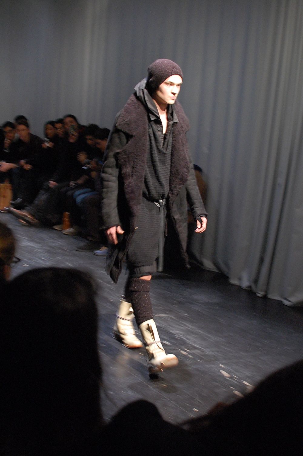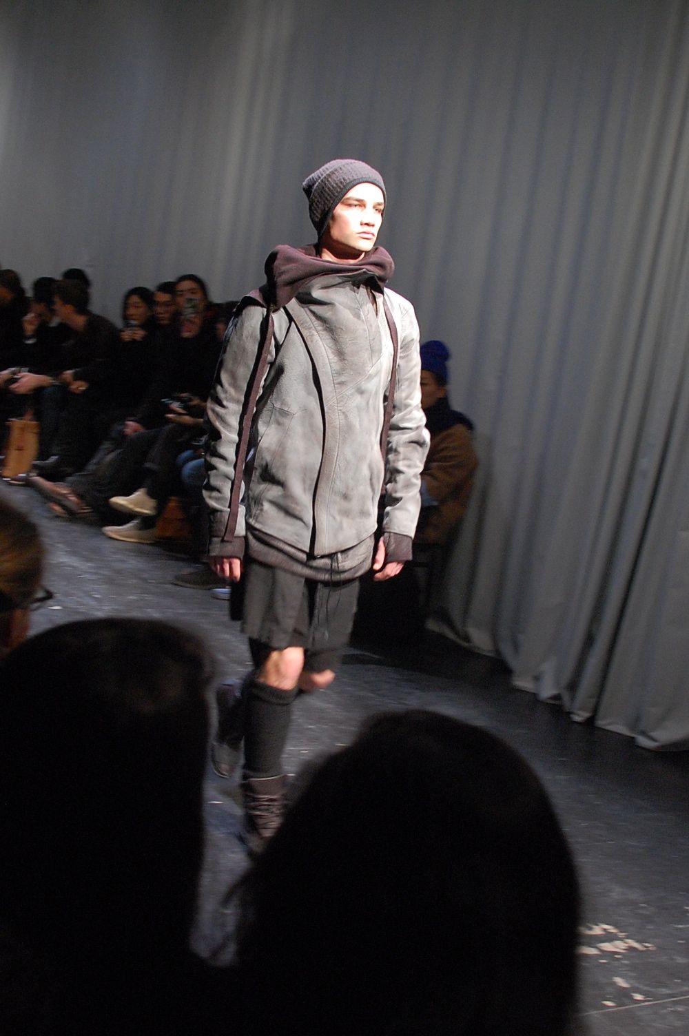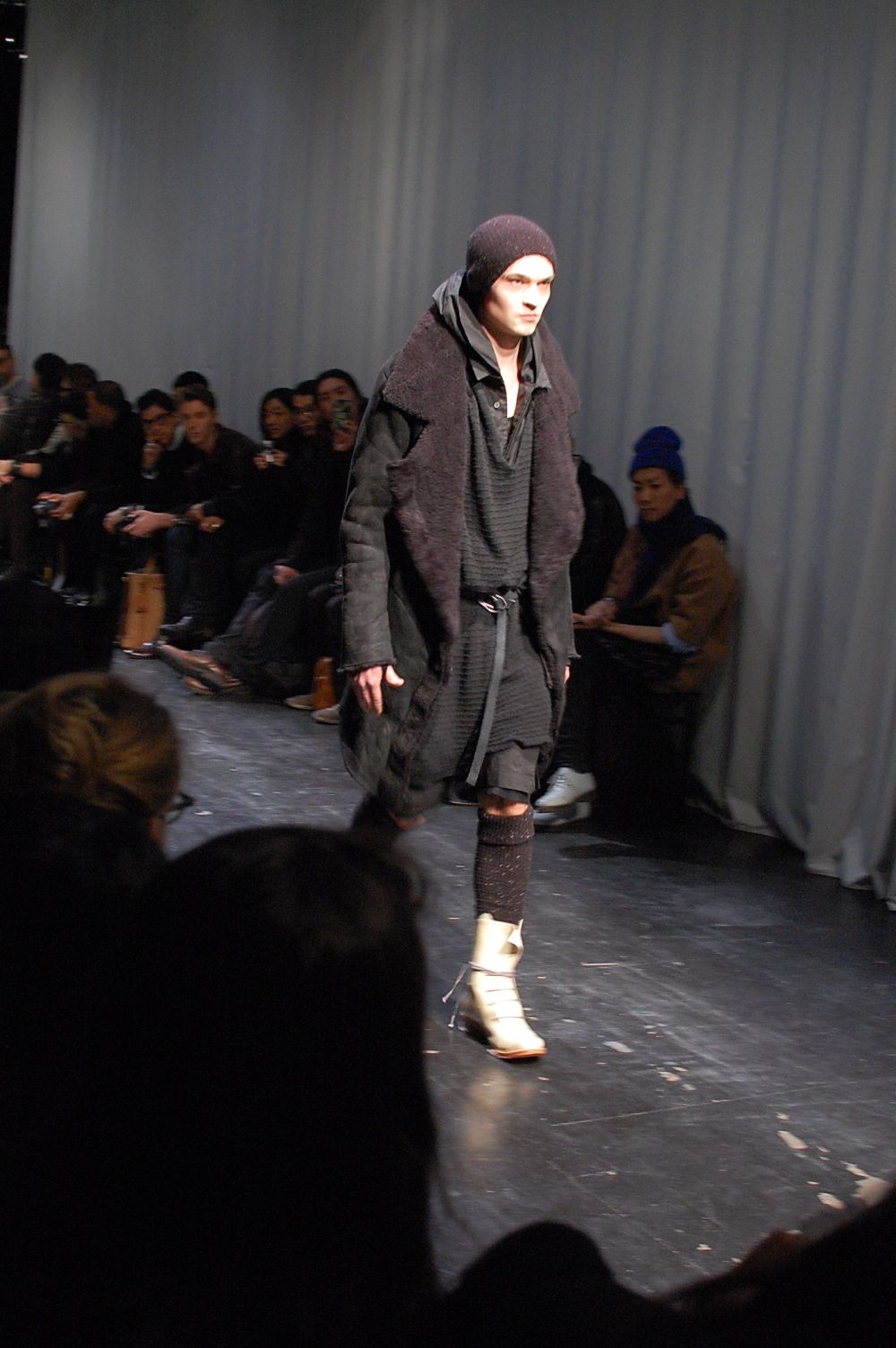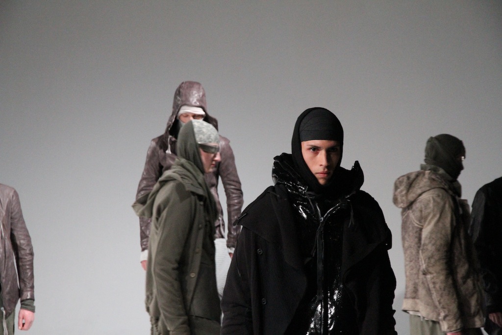 Une collection faite de tissu usé, de cuir tapé et bouilli, des véritables costumes d’apparats contre les agressions de l’hiver : tuniques, manteaux, …