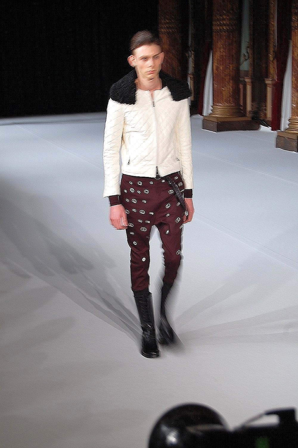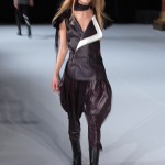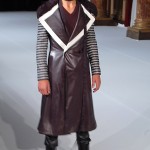 subtil du cuir blanc, le « mirror pants » ainsi que la veste et le manteau avec « col-oreiller ».