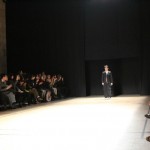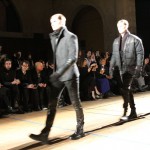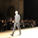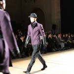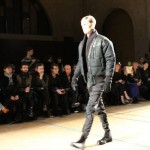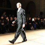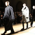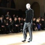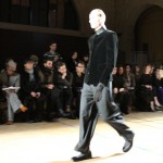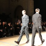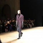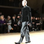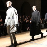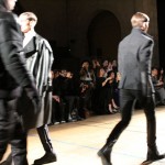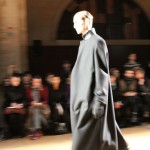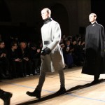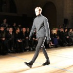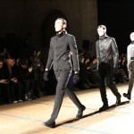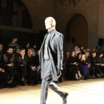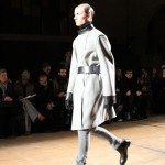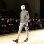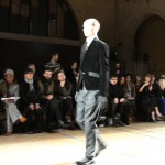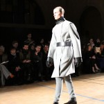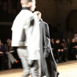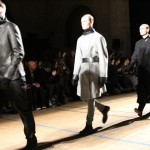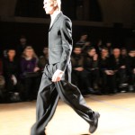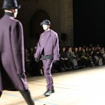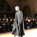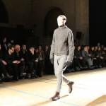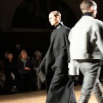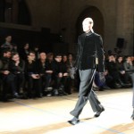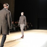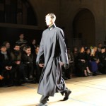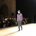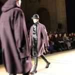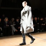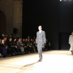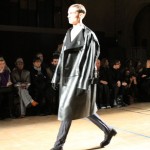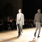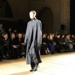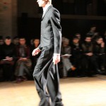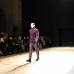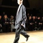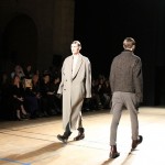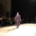 Songzio imagine chaque saison un homme sophistiqué et créatif. Pour cette saison le mot d’ordre était l’aspiration. A la frontière du rêve et de la bande dessinée sa collection donnant la part belle au noir, violet, bleu foncés, beiges et marrons est l’expression d’un modernisme assumé. Les formes sont larges et empruntent aux uniformes d’écoliers. Songzio créé ici une collection sophistiquée aux confins du rétro oriental et du modernisme poétique.
