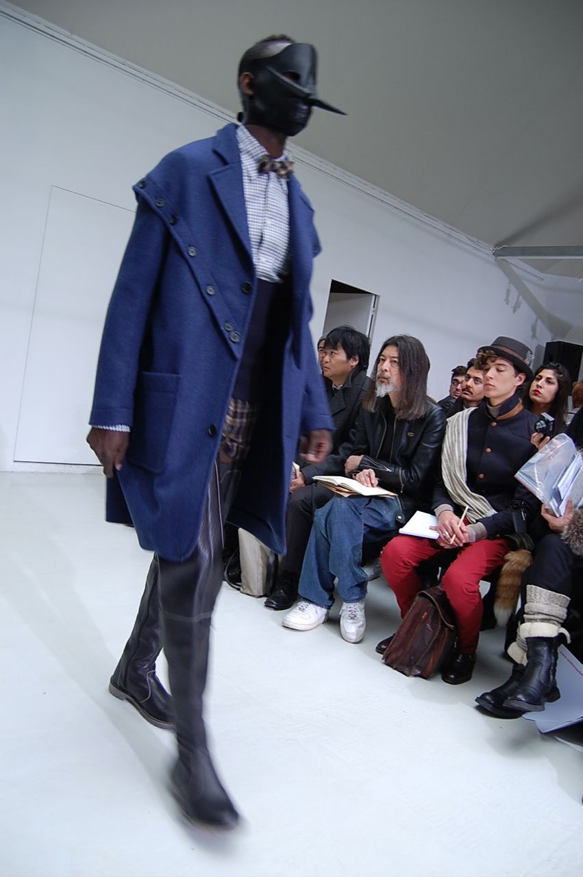 Repoussant à chaque saison les limites de la création masculine, Walter Van Beirendonck nous présente une collection accessoirisée, rebelle et sexué. Des dandys destroy affublés d’accessoires fétichistes défilent et véhiculent un message presque politique. L’homme moderne doit s’affranchir de ses frontières et de l’esclavage comme l’ont fait, il y a de nombreuses années les esclaves des champs de cotons américains.