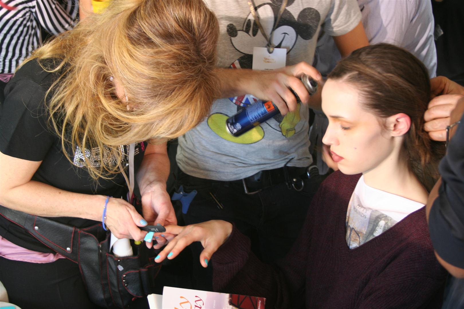 Legendary UK nail stylist Marian Newman headed the nail stylist team of Adam Slee, David Barton, Monica Ropihol, Jane Emerson, and Delphine that applied Minx to the models for the show.