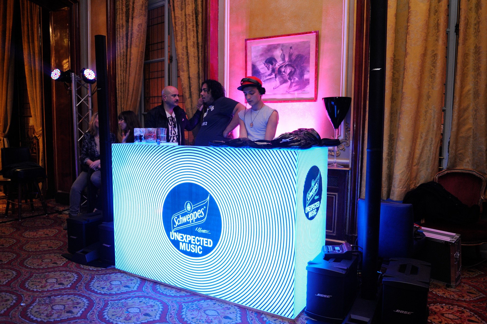 La semaine dernière avait lieu la soirée de lancement de la Villa Schweppes. La sauterie se déroulait Pavillon Napoléon, a deux pas de la place de l’Opéra. Garée devant l’entrée, une sublime décapotable aux couleurs du fameux breuvage laisse à penser que ça va partir sur les chapeaux de roues. Le but de l’évènement était de présenter le programme la Villa installée pendant la quinzaine cannoise.
