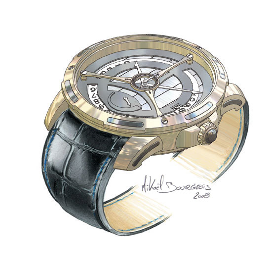 Fin 2008, Mikaël BOURGEOIS sort de l’ombre des grandes marques horlogères suisses pour lesquelles il travaille en freelance depuis plus de 10 ans. Durant ces années il a été à l’origine de nombreux succès horlogers, et tout naturellement ce créateur confirmé dévoile au grand jour ses talents.