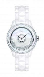 L’histoire Dior VIII, commencée l’an dernier, se poursuit et, naturellement, à l’instar du tailleur Bar qui en est la source d’inspiration première, propose de nouvelles versions en céramique blanche. Christian Dior disait : « Le blanc est pur, simple et se marie avec tout. » Le blanc, dans une maison comme Dior, a une signification toute particulière, car c’est la couleur de la toile, le point de départ fondamental de la construction d’une robe. « Avec ses lignes, ses volumes, ses ombres, ses lumières, la toile est devant moi. Je ferai tout, d’après celle-là… », disait encore Christian Dior. Nous poursuivons par ailleurs l’histoire du noir et proposons un nouveau diamètre 28 mm, des lunettes diamants en « serti neige » et renforçons l’histoire du calibre « Dior inversé » débutée l’an dernier.