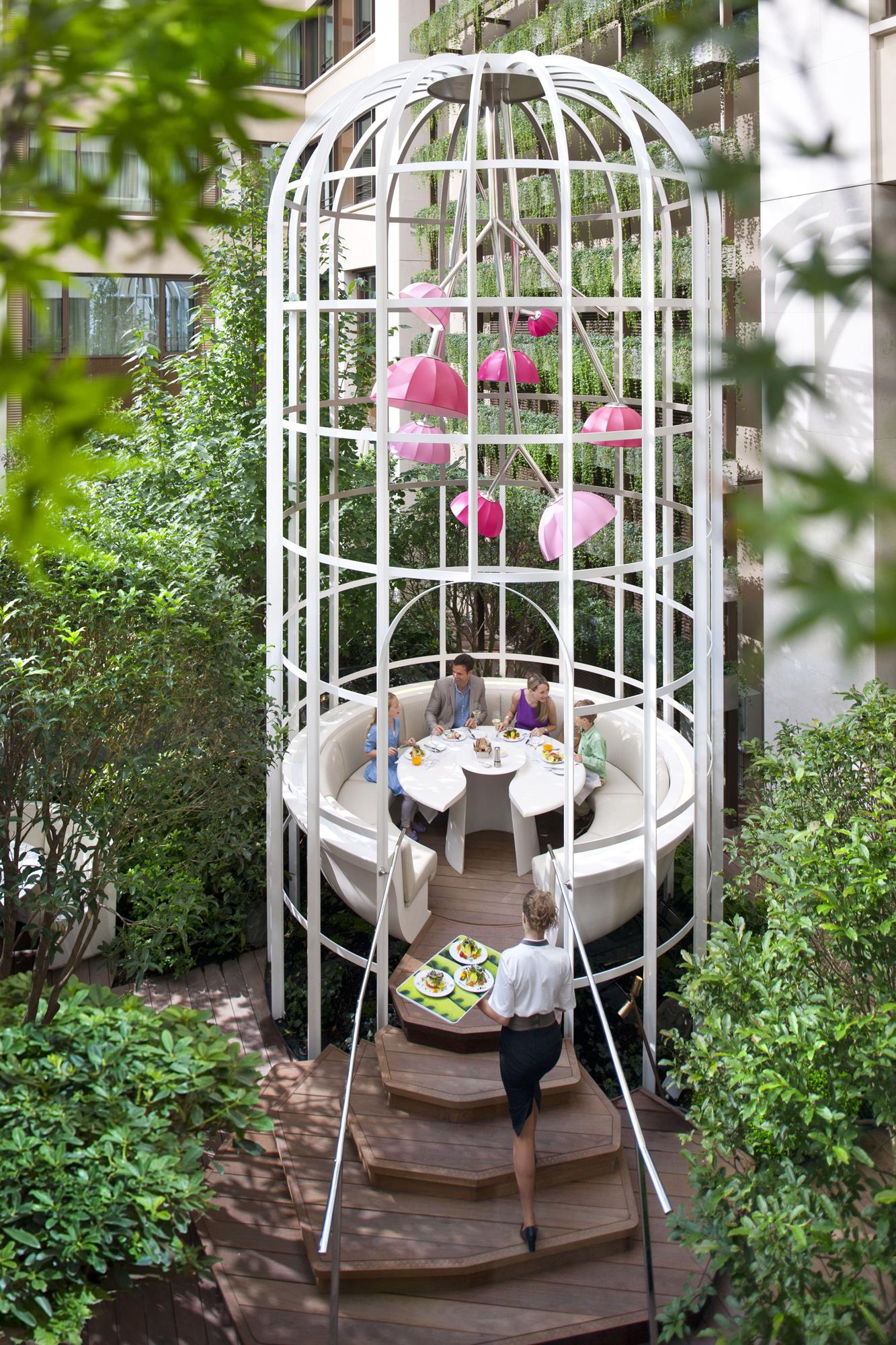 Ce prestigieux hôtel de 8 étages dispose de 99 chambres et 39 suites, dont 8 d’exception en duplex, et la plupart bénéficiant de discrètes terrasses privées, surplombant le jardin intérieur.