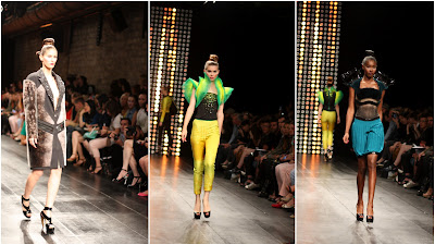 C’est au Showcase que Julien Fournié nous donna rendez-vous cette année pour nous présenter sa nouvelle collection Haute Couture nommée Première Déclaration. Le designer de mode, connu pour son excentricité a fait ses armes auprès de grands noms de la mode tels que Nina Ricci, Dior, et Jean Paul Gaultierqui l’engagea comme assistant styliste Haute Couture. Pour cette nouvelle collection, le créateur s’amuse avec les références et expérimente les matières techniques. Dès l’arrivée des premiers mannequins, us avons l’impression de pénétrer dans le monde de la Sci-Fi. Telles des héroïnes de films fantastiques, elles arborent des queue de cheval futuristiques, des enluminures métalliques, du néoprène, du fluo, du zip, des robes près du corps et des jupes crayons, mais aussi du manteau XXL avec incrustations de phoque ce qui defraya quelque peu la chronique. Le créateur ne s’en cache pas : il avoue puiser son inspiration dans l’univers des bandes dessinées Marvel, en particulier X men, film avec lequel il établit un parallèle avec l’univers de la mode : d’après lui, les costumes qu’arborent les personnages sont « extrêmement stylisés et raffinés ». Il nous dépeint une femme moderne, avant-gardiste, et féminine : de quoi ravir toute la sphère mode actuelle en phase avec le retro-futurisme.