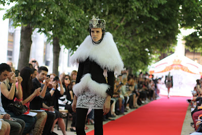 « Il était une fois …un royaume chimérique » Voilà comment démarre la présentation du défilé Haute Couture On Aura Tout Vu. Cette année est spéciale pour l’équipe puisqu’ils fêtent leur 10 ans, et les créateurs ont décidé de fêter ça dans les Jardins du Palais Royal. Et c’est bien simple : dès notre arrivée sur les lieux, nous avons l’impression de pénétrer dans l’antre d’une Cour royale. La musique retentit, le défilé commence enfin : une ribambelle de reines décalées défilent sous nos yeux. De l’esprit barock, rococo, rock, un grande dose d’excentricité, de l’originalité, de la fourrure, des strass et paillettes Swarovski, mais surtout d’élégantes couronnes féeriques. Pour les dix ans de la marque, On Aura Tout Vu marque une nouvelle association avec Caron, la maison de Haute parfumerie. Une effervescence à son comble, et un défilé anniversaire à la hauteur de nos espérances, créatif, ingénieux, rock, et couture. Retour en images :