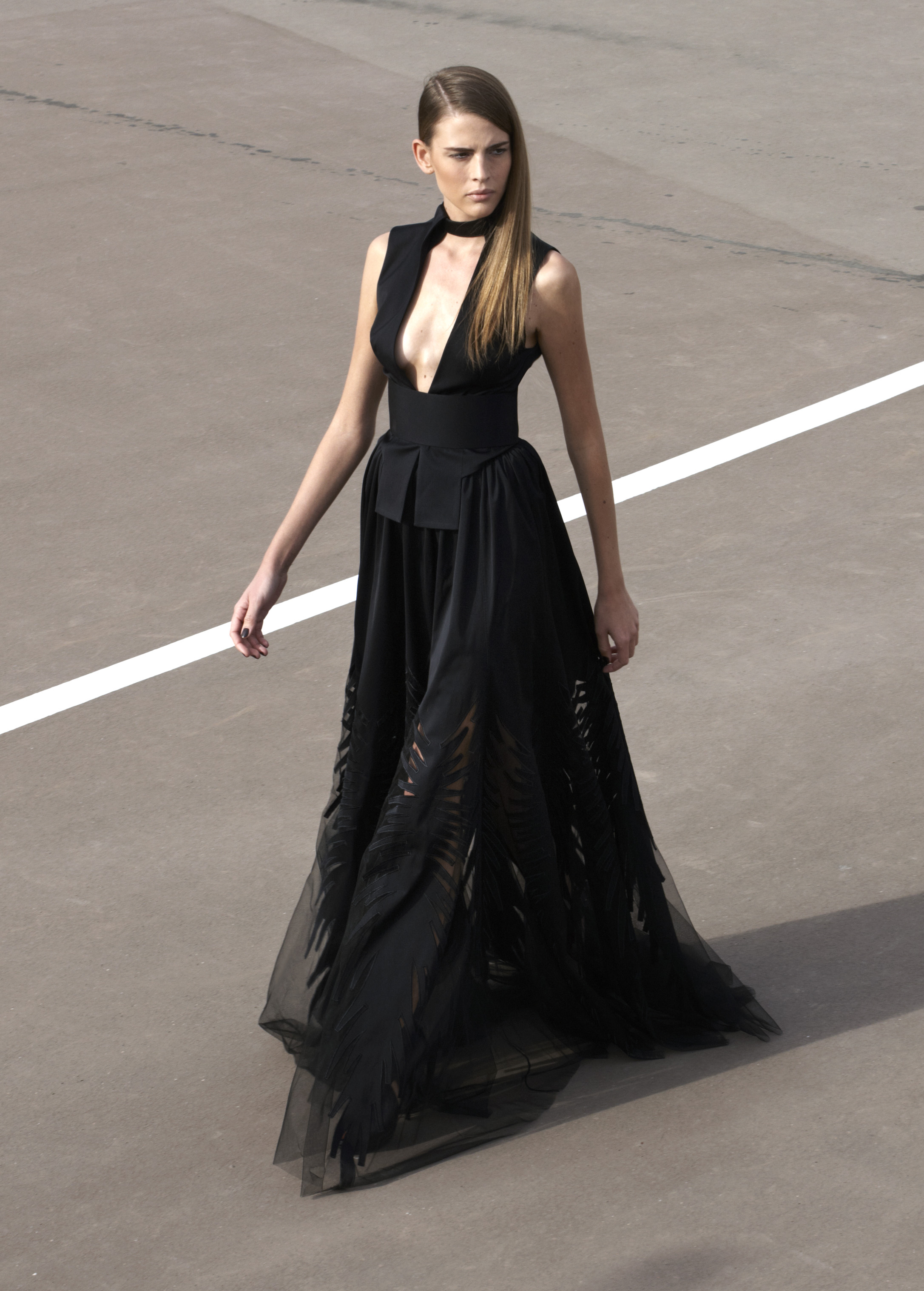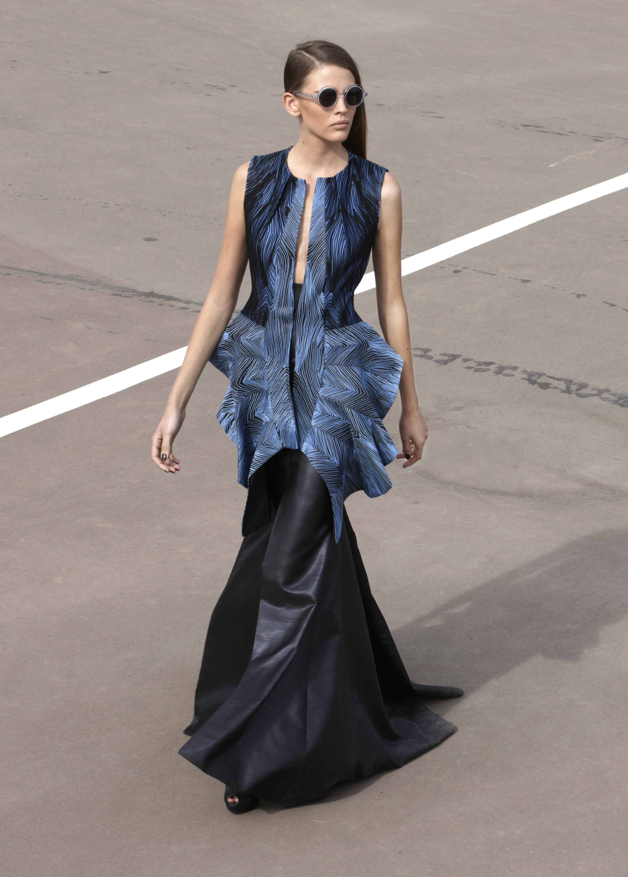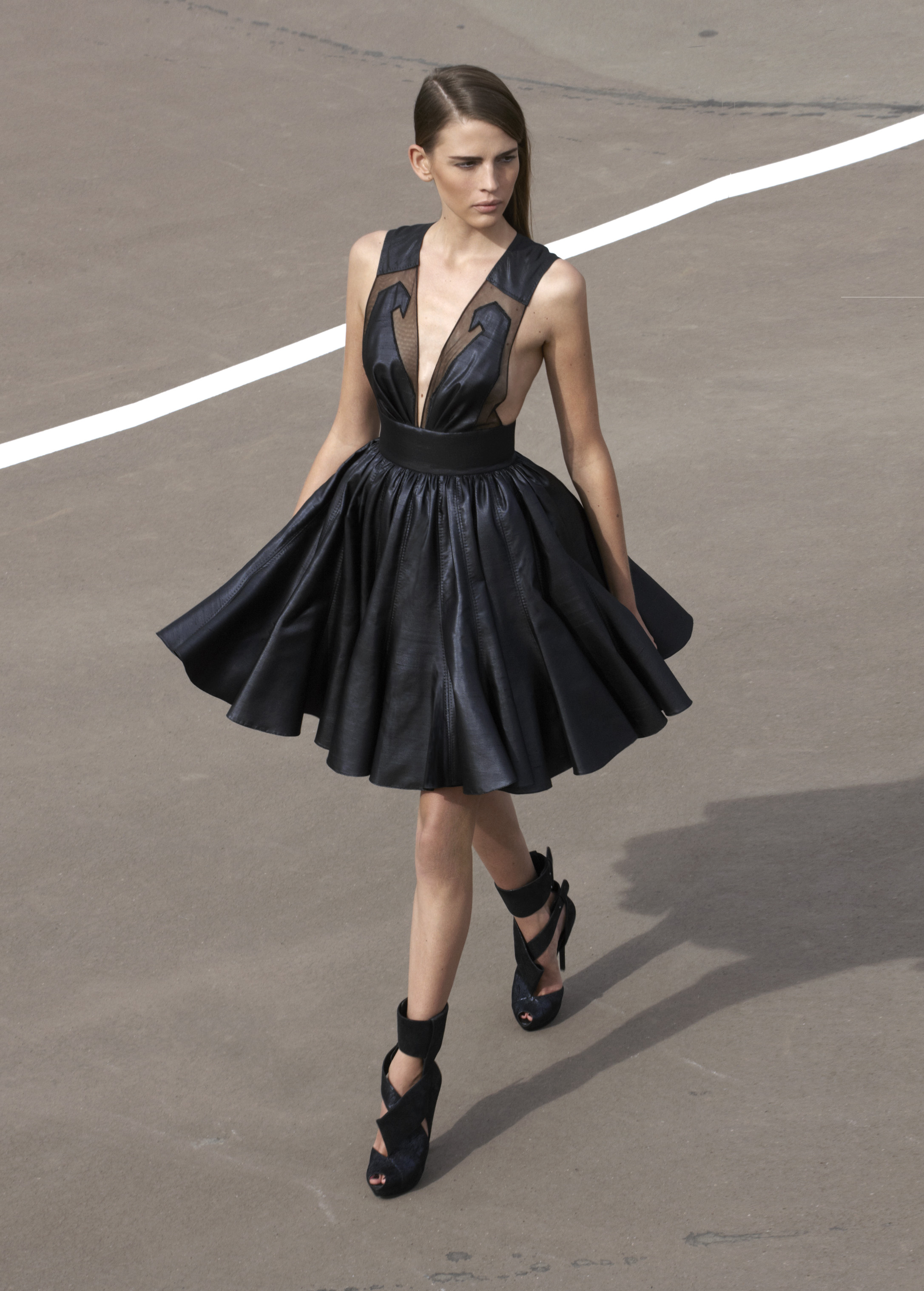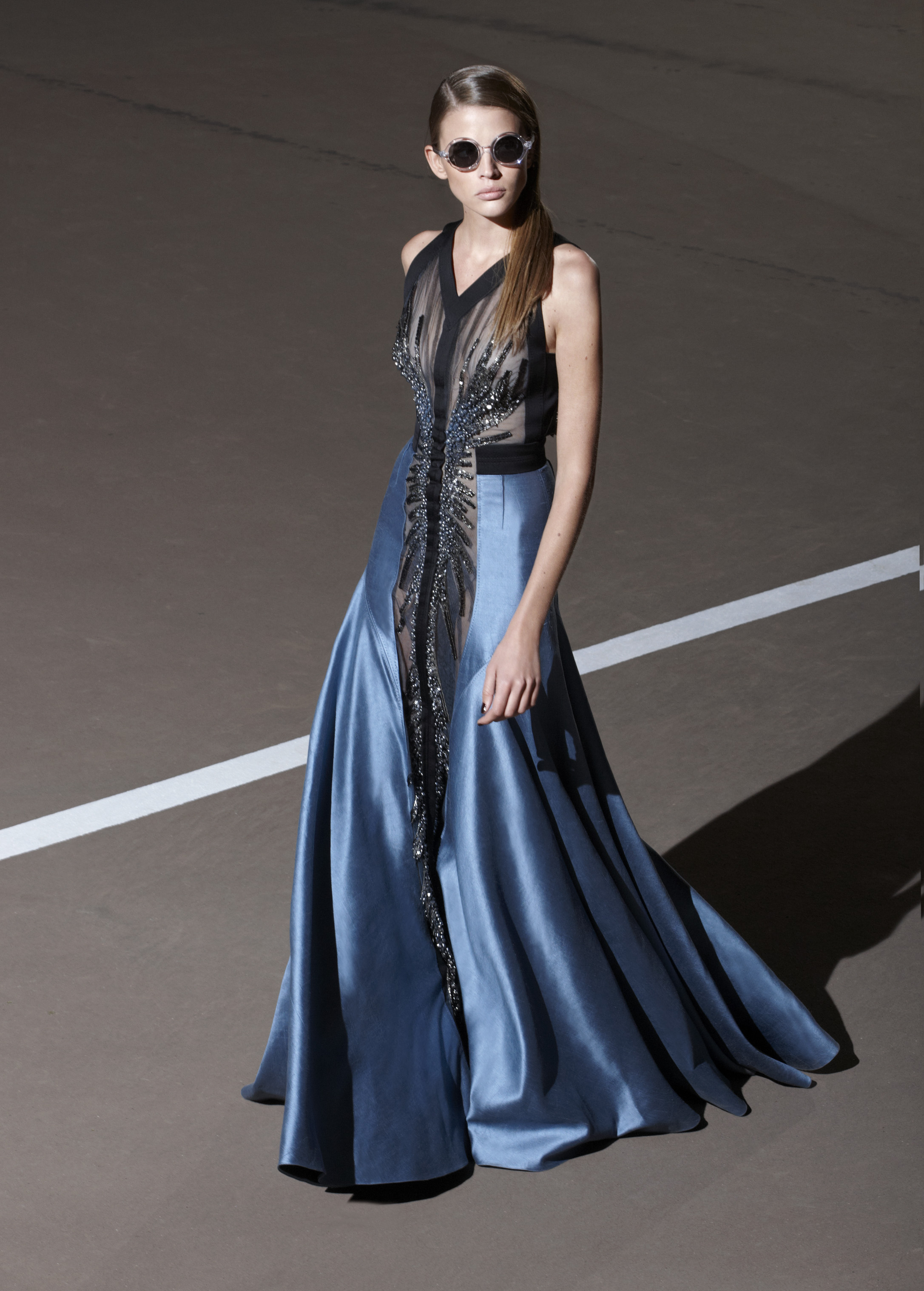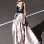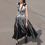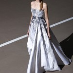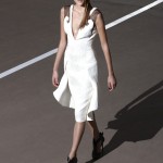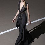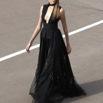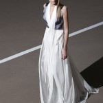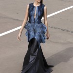 Les silhouettes longilignes, graphiques, ultra féminines de la collection printemps 2013 rappellent les femmes à l’ordre ! Ne rien céder sur la féminité, oser, jouer, transcender le vêtement pour en faire un accessoire du corps. Court ou long, la géométrie s’impose autour de jupes ouvertes, la fluidité se dit dans les matières douces et souples, le corps se révèle dans des coupes qui valorisent les épaules, le port de tête, les jambes interminables. La collection met un coup de projecteur sur la volonté évidente de travailler le vêtement sur le corps ainsi modelé, sculpté, toujours en volume et en mouvement. Les robes glissent, sensuelles et conquérantes, les volants créent la surprise, les couleurs font l’allure, l’argent réfléchissant, le bleu azuréen, le noir profond… Imprimés et broderies parsèment les robes et structurent la forme, dessinant l’axe central de l’équilibre ! Des découpes, des transparences, des jeux de longueur, l’audace féminine est au rendez-vous de l’élégance.