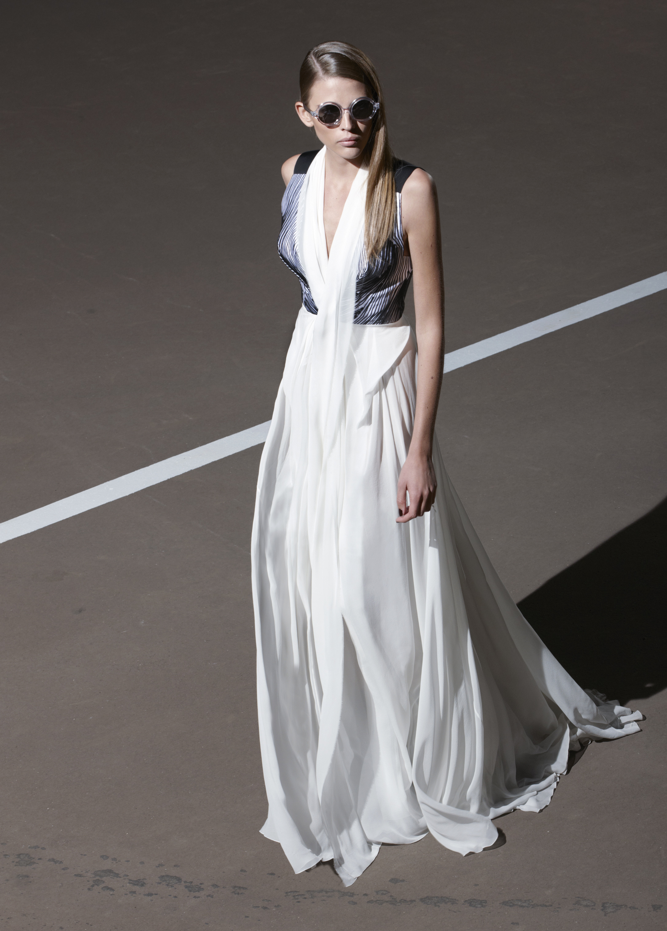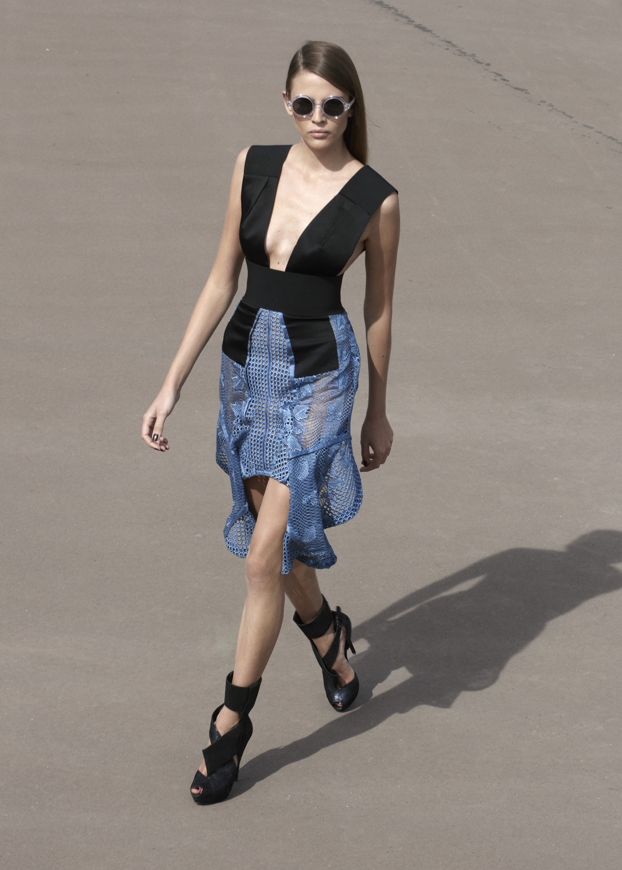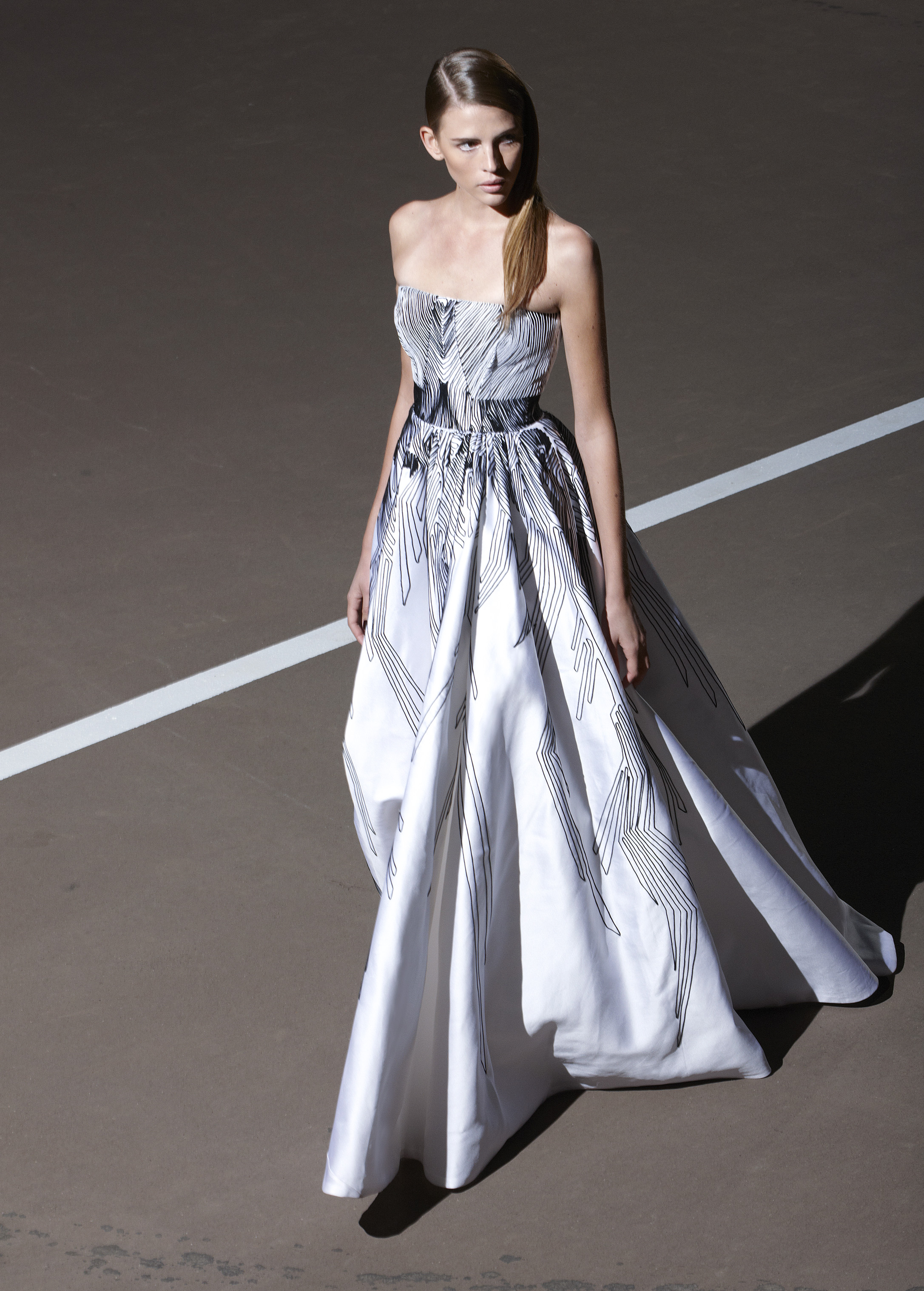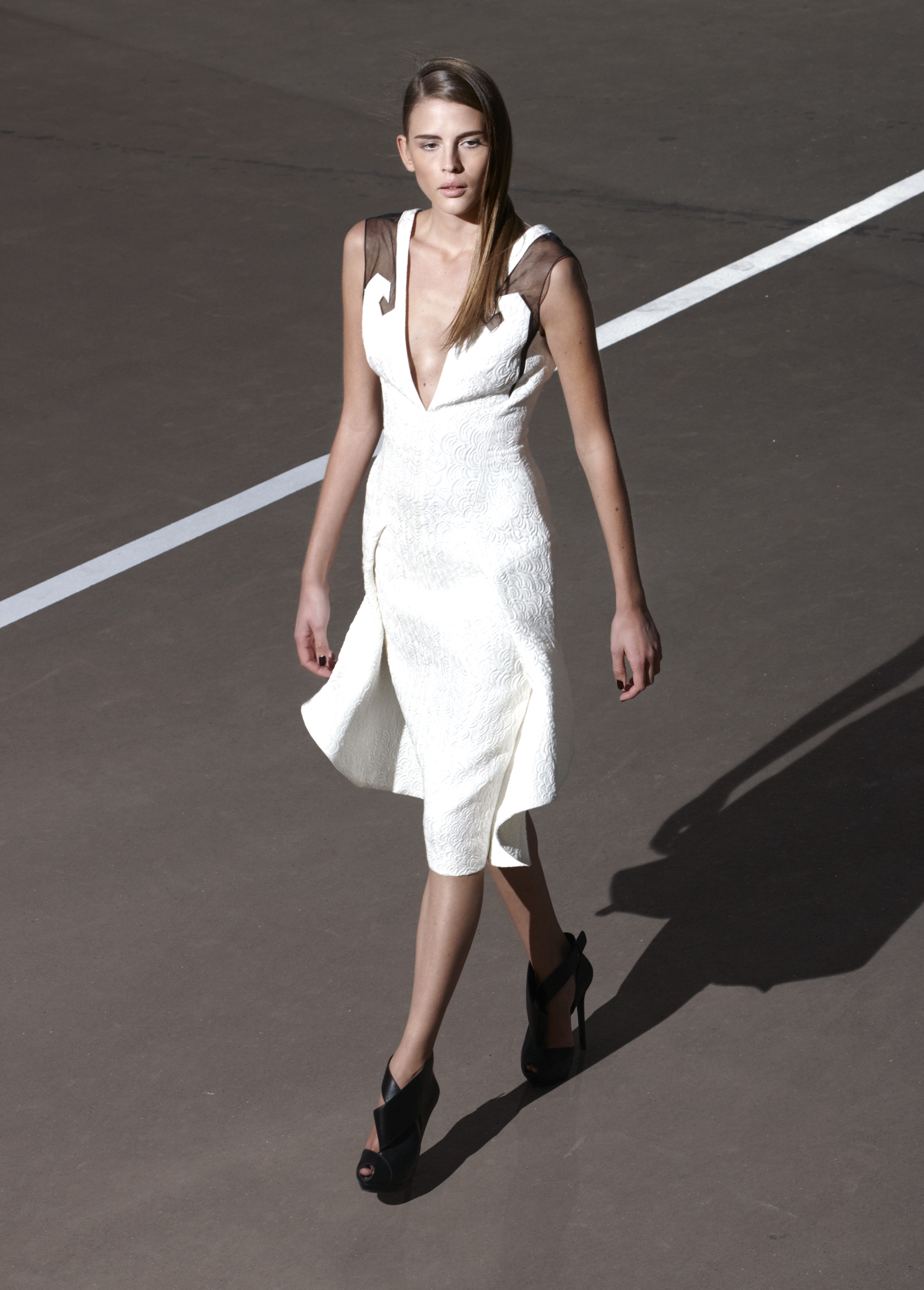 Les silhouettes longilignes, graphiques, ultra féminines de la collection printemps 2013 rappellent les femmes à l’ordre ! Ne rien céder sur la féminité, oser, jouer, transcender le vêtement pour en faire un accessoire du corps. Court ou long, la géométrie s’impose autour de jupes ouvertes, la fluidité se dit dans les matières douces et souples, le corps se révèle dans des coupes qui valorisent les épaules, le port de tête, les jambes interminables. La collection met un coup de projecteur sur la volonté évidente de travailler le vêtement sur le corps ainsi modelé, sculpté, toujours en volume et en mouvement. Les robes glissent, sensuelles et conquérantes, les volants créent la surprise, les couleurs font l’allure, l’argent réfléchissant, le bleu azuréen, le noir profond… Imprimés et broderies parsèment les robes et structurent la forme, dessinant l’axe central de l’équilibre ! Des découpes, des transparences, des jeux de longueur, l’audace féminine est au rendez-vous de l’élégance.
