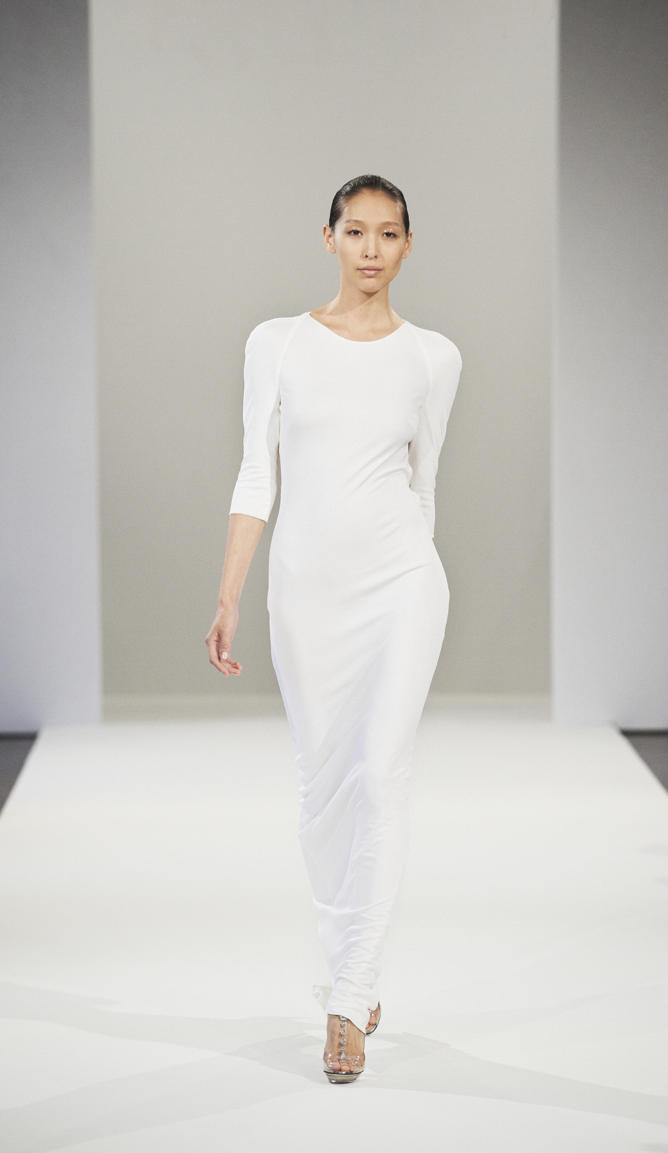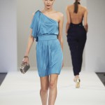 jersey, a sky-coloured dress invites contemplation. A flash of bright