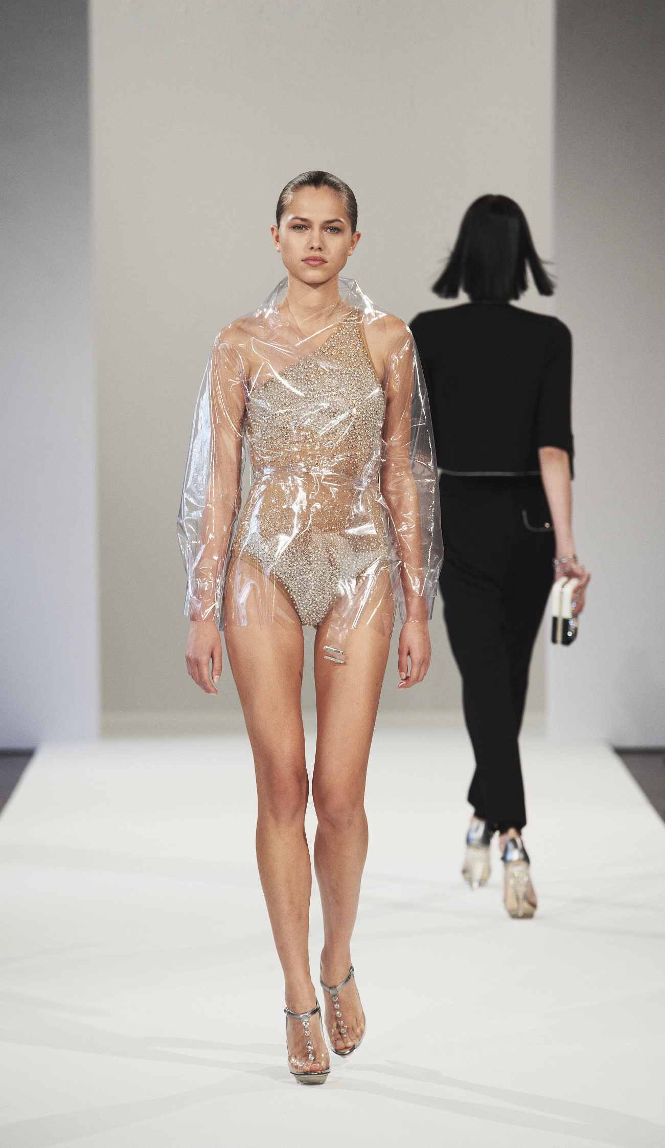 diamanté, worn with luxurious trenchcoats in embroidered black organza