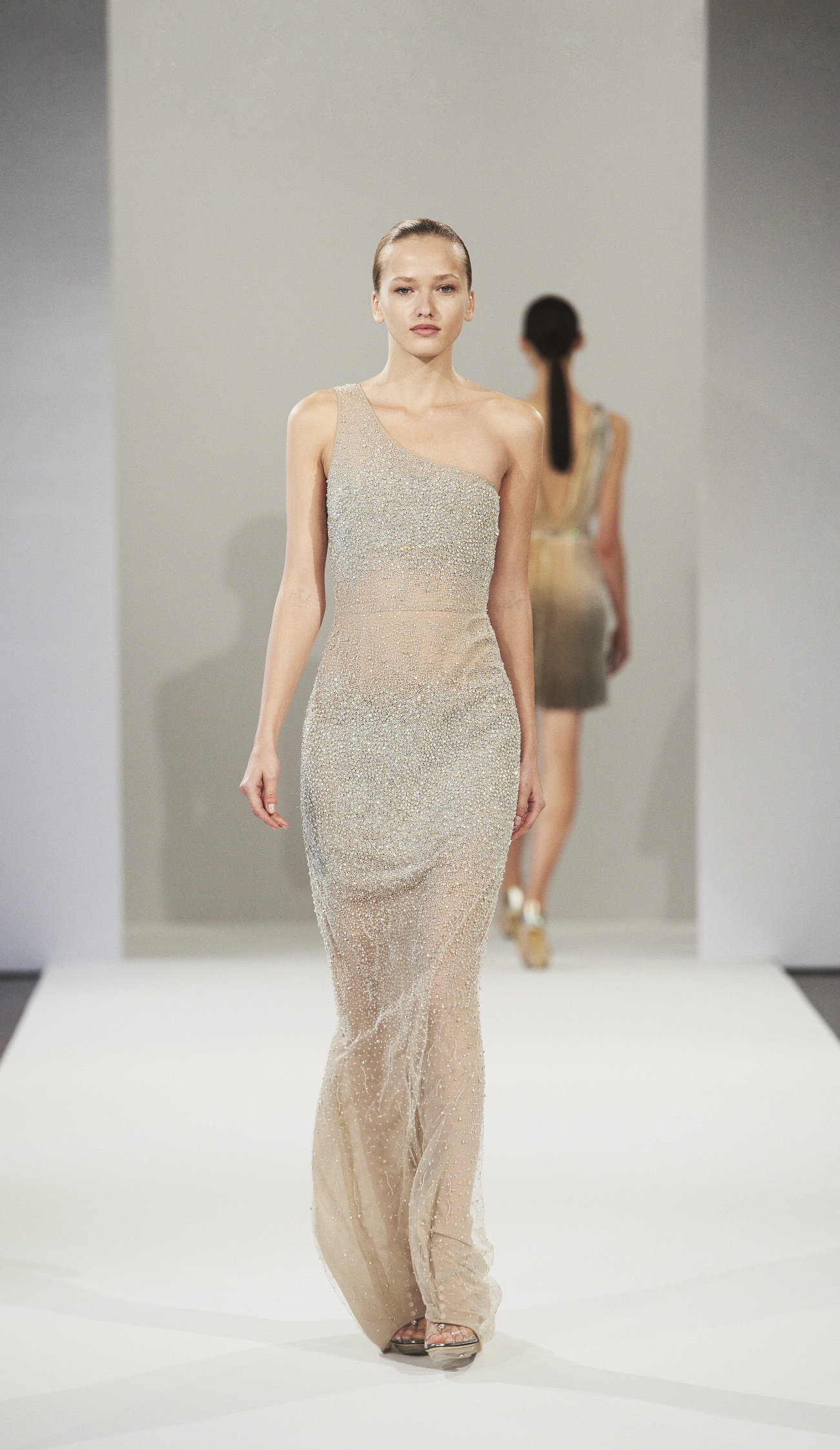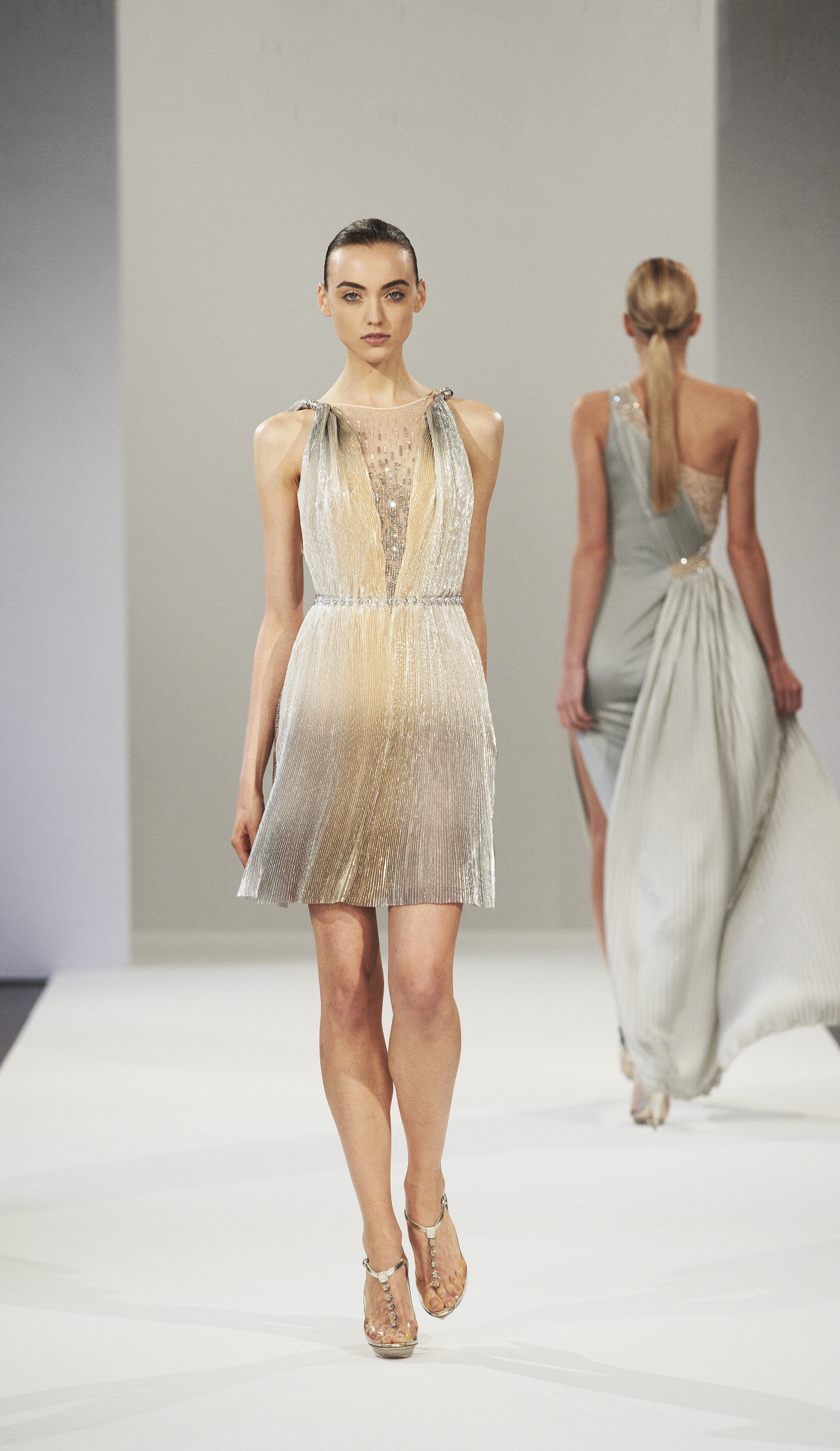 from the house’s archive. A sparkling champagne-coloured dress is the