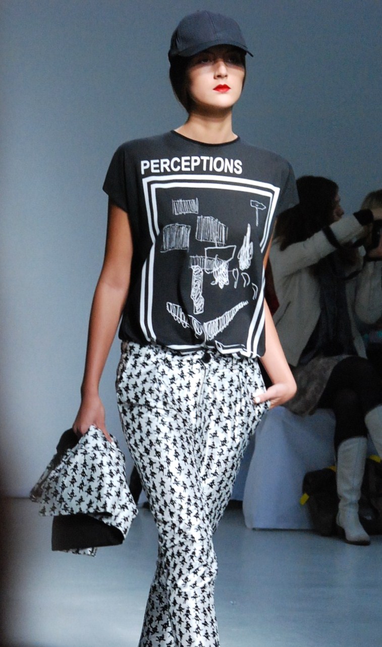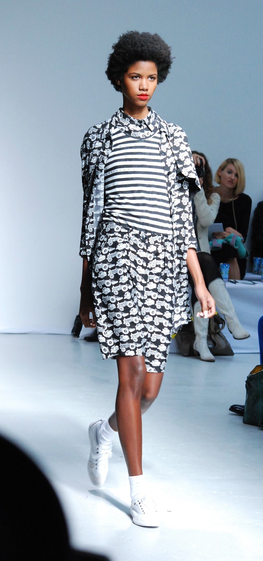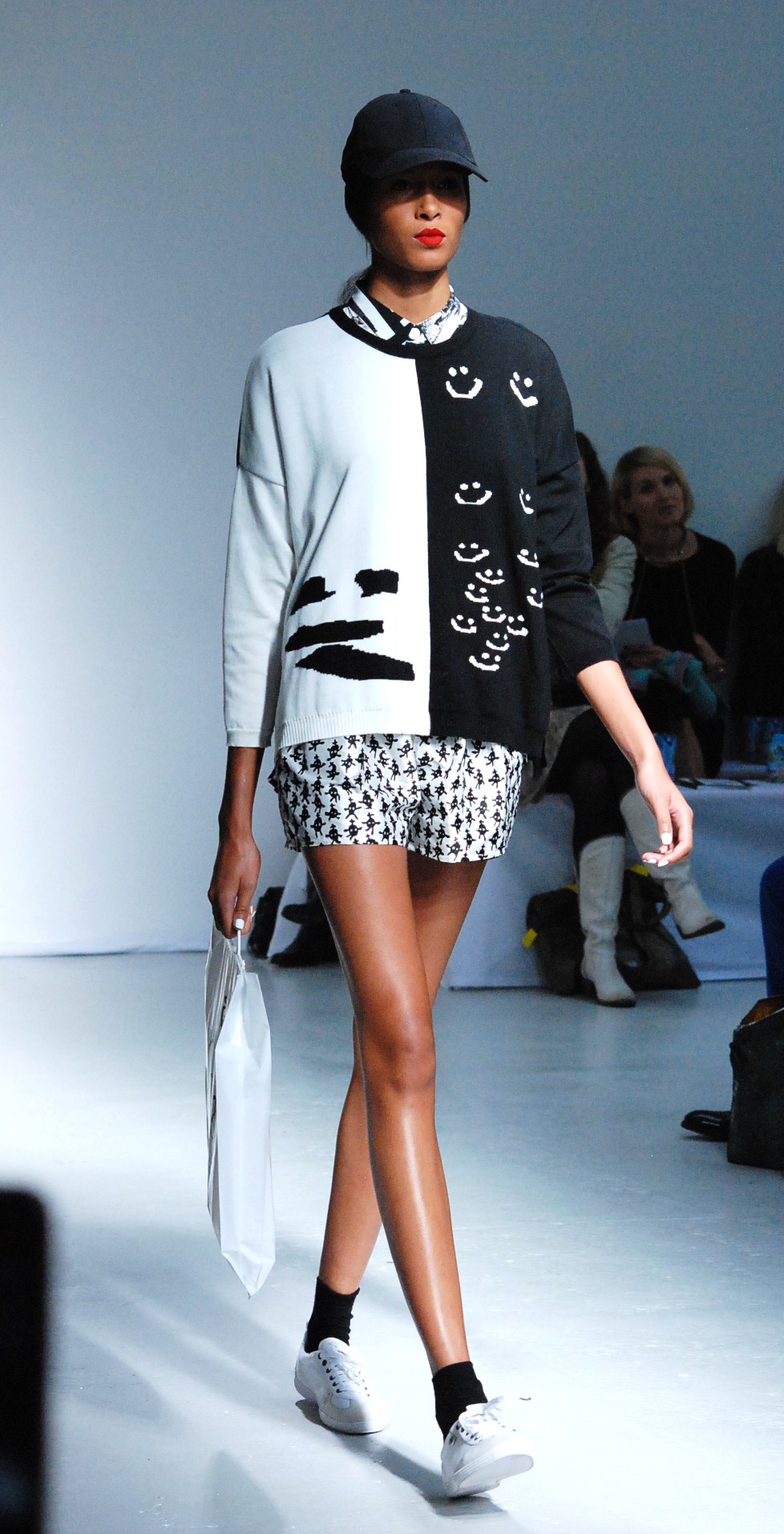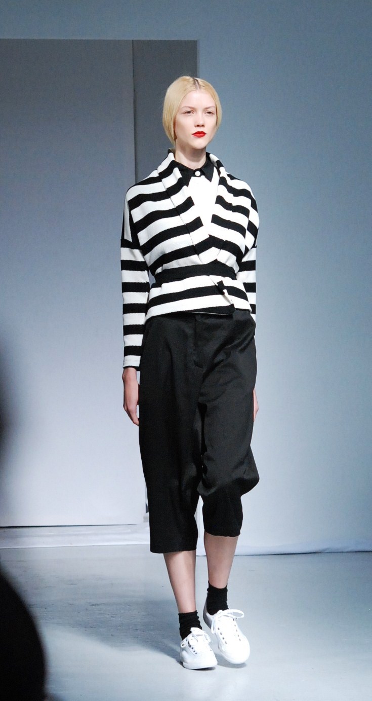 Looks androgynes mais néanmoins très propres, collages de photos vintage alliées à des jupes assez flirty, sneakers et casquettes sont au rendez vous. Les rayures horizontales sont aussi présentes, les plus belles tenues restant selon moi celles incluant des chemises à col pliés, l’ensemble restant dans la tendance garçonne.