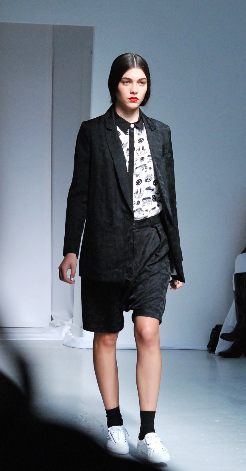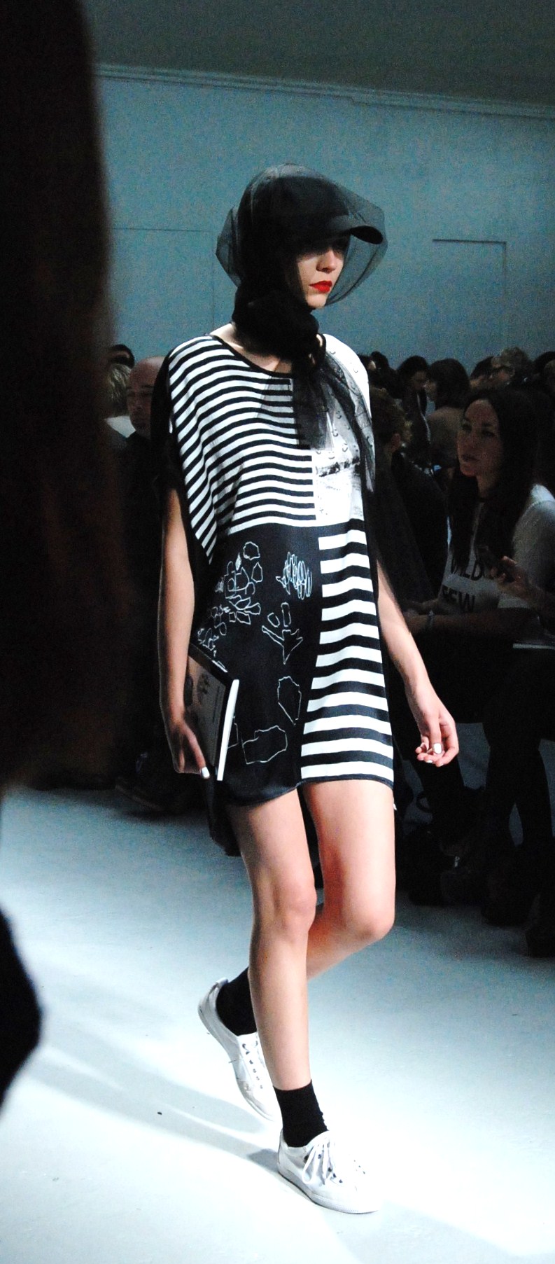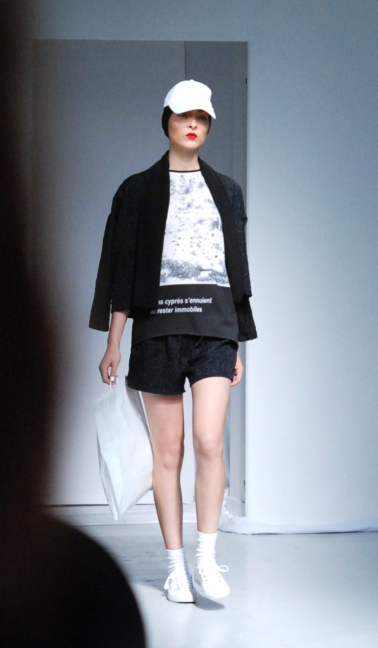 C’est dans le grand espace Commines d’un blanc immaculé que nous a été montrée la collection SPRING SUMMER 2013 de chez Dévastée. L’espace ou se tenait le défilé n’était sûrement pas anodin. C’est en fait un veritable contraste du blanc immaculé des murs avec la collection monochrome que nous avons observé chez Dévastée.