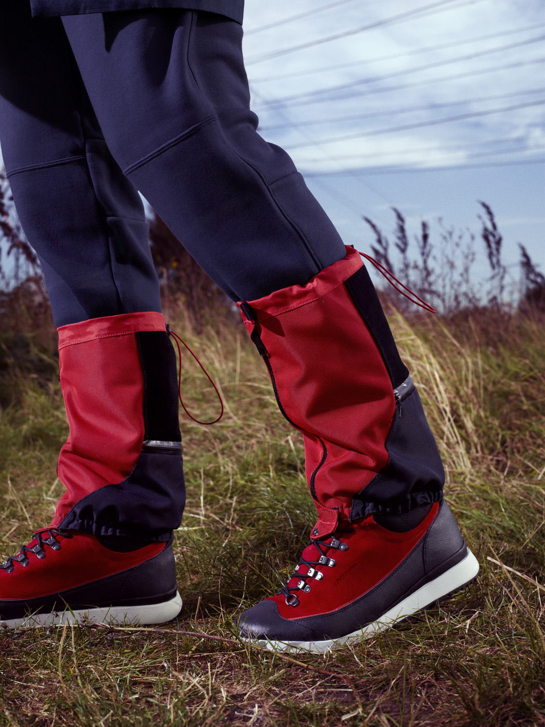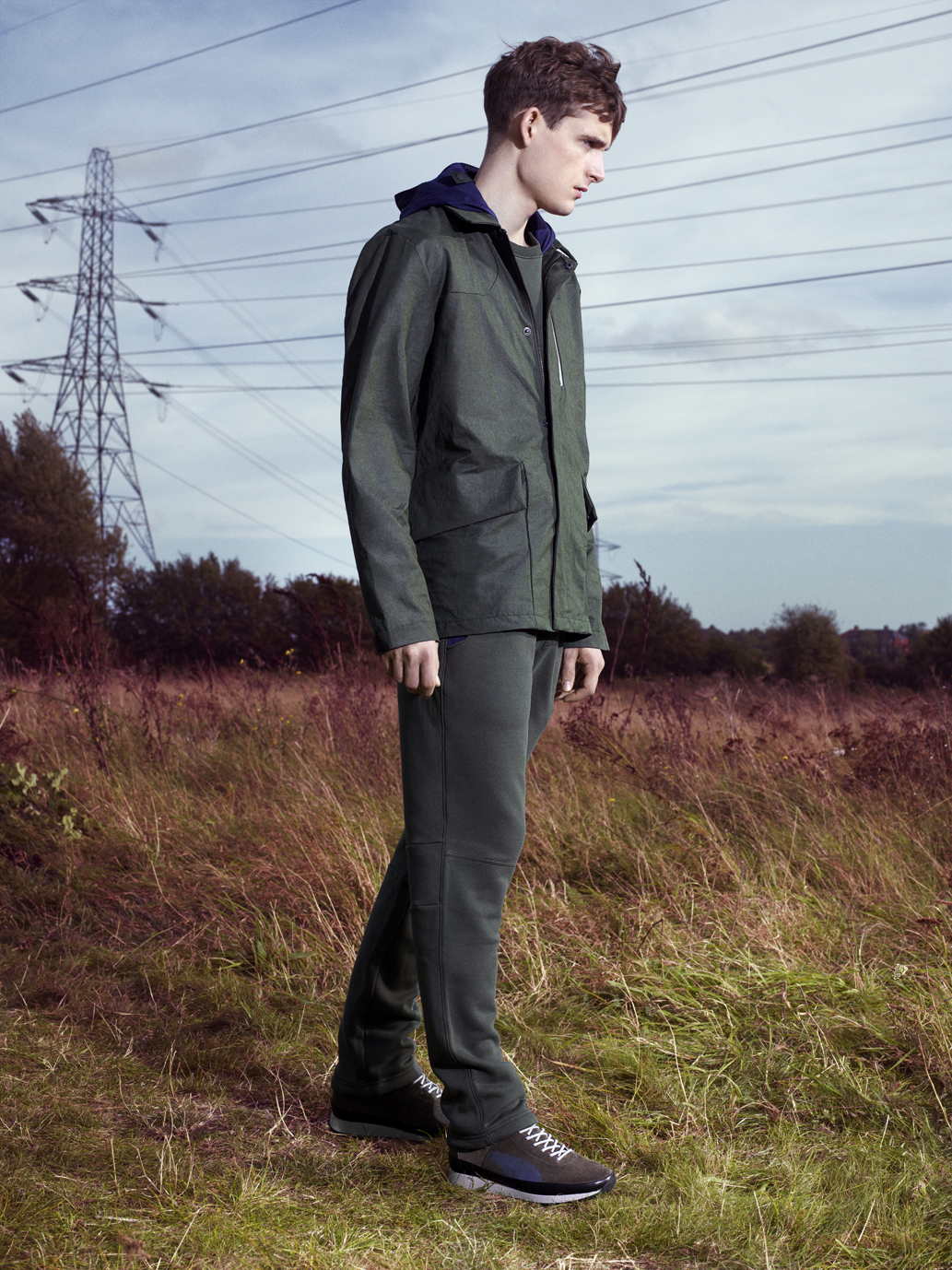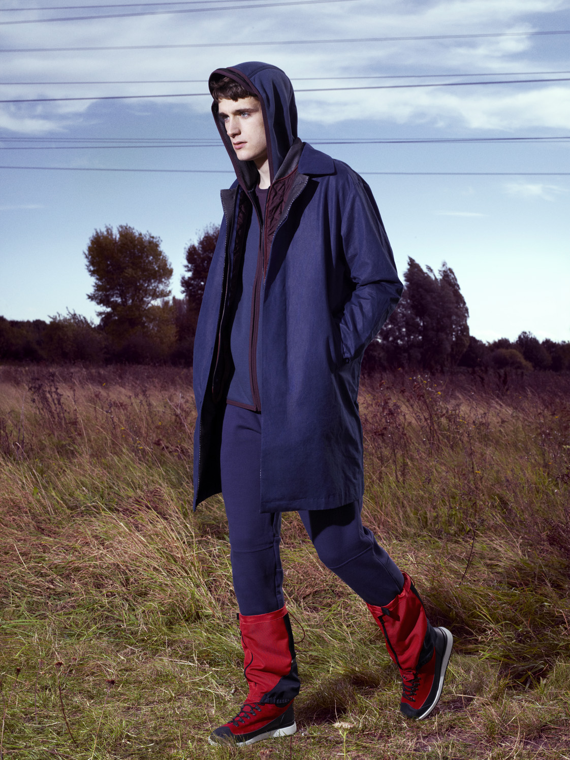 Les chaussures aux couleurs de la terre sont inspirées de la NASA. Les modèles phares des vêtements sont fabriqués à partir de matières fonctionnelles performantes, notamment une chaude laine Melton, un jersey de survie lustré et un coton huilé à damier numérique. La collection arbore des couleurs vives ultra branchées et les modèles sont à la fois pratiques et élégants.