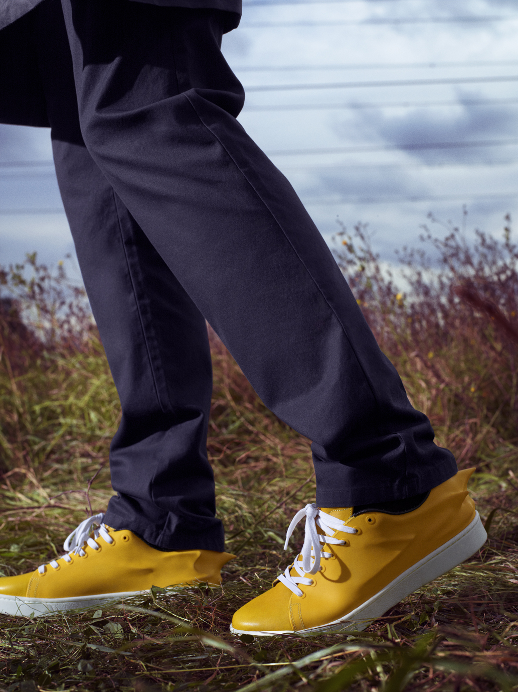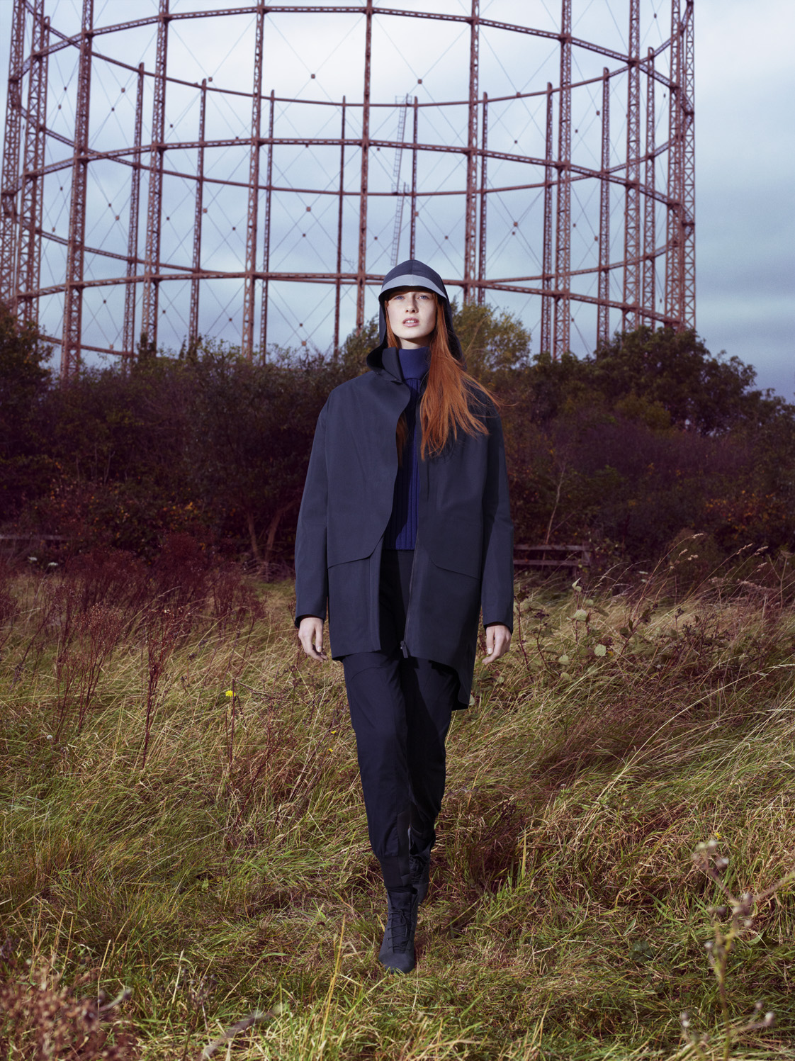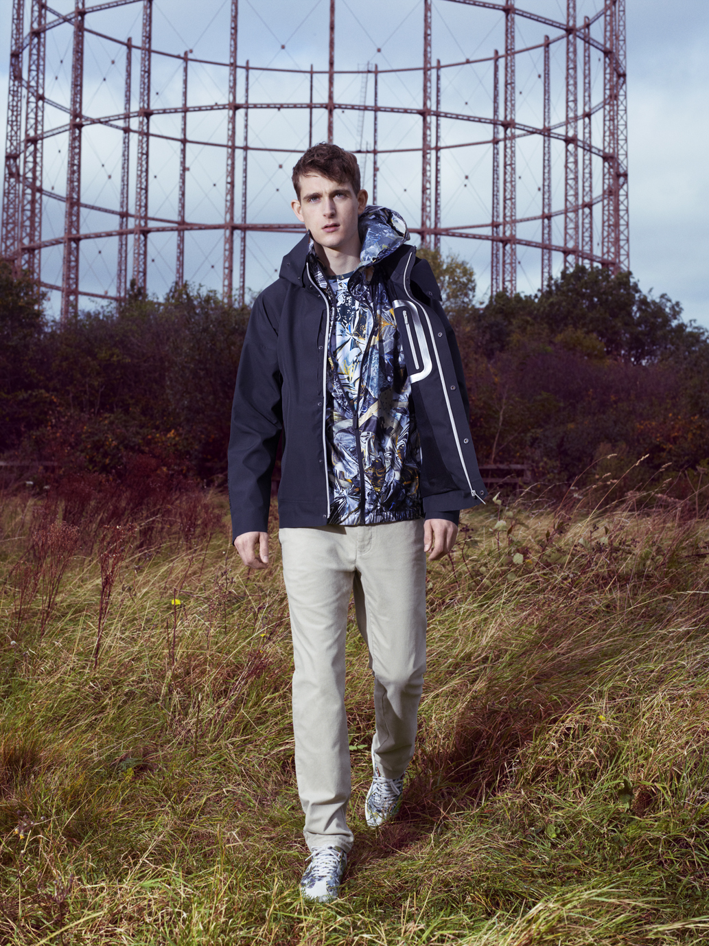 Les chaussures aux couleurs de la terre sont inspirées de la NASA. Les modèles phares des vêtements sont fabriqués à partir de matières fonctionnelles performantes, notamment une chaude laine Melton, un jersey de survie lustré et un coton huilé à damier numérique. La collection arbore des couleurs vives ultra branchées et les modèles sont à la fois pratiques et élégants.