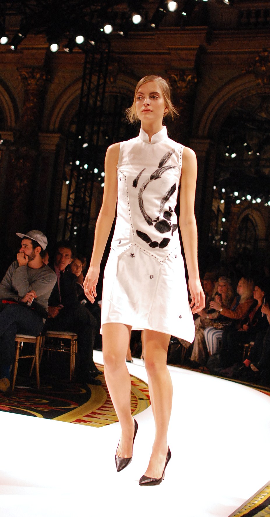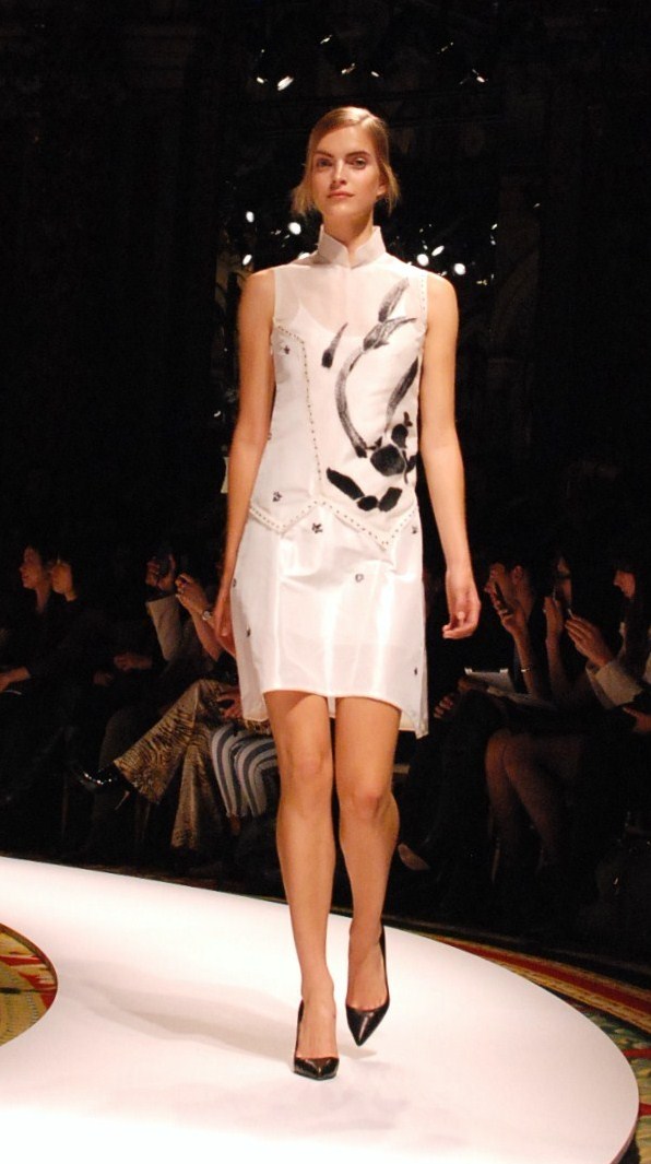 Perpetuality, l’intitulé de la collection printemps été 2013 trouve ses racines dans l’art du papier découpé, un art millénaire en Chine qui était l’apanage des familles modestes de la classe ouvrière et servait alors à la décoration. C’est par une esthétique épurée et quasi religieuse que se démarque les vêtements chez Shiatzy Chen.