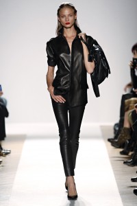 C’est définitivement sur la carte minimaliste et rock qu’a choisi de jouer la créatrice. Cuir sur cuir sur des silhouettes androgynes de bikers, sac en python et escarpins à bout pointus, tous les éléments étaient réunis pour nous faire penser dès le début du défilé à une collection assez smart, rebelle à la limite.
