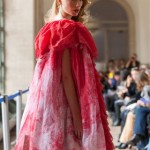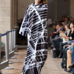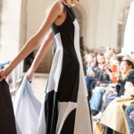 Beaucoup de blanc, de noir donnant ainsi le ton pour l’ensemble des tendances que l’on a pu voir lors de cette fashion week. Les couleurs étaient néanmoins présentes. Ce qui a le plus marque ce défilé reste tout de même l’idée originale de la mise en scène : les mannequins étaient drapés et ne se découvraient qu’à la fin du podium, à côté du mur des photographes. Le mystère était donc à son comble, étant donné que les personnes dans l’assistance ne voyaient que les chaussures jusqu’au retour sur le podium.