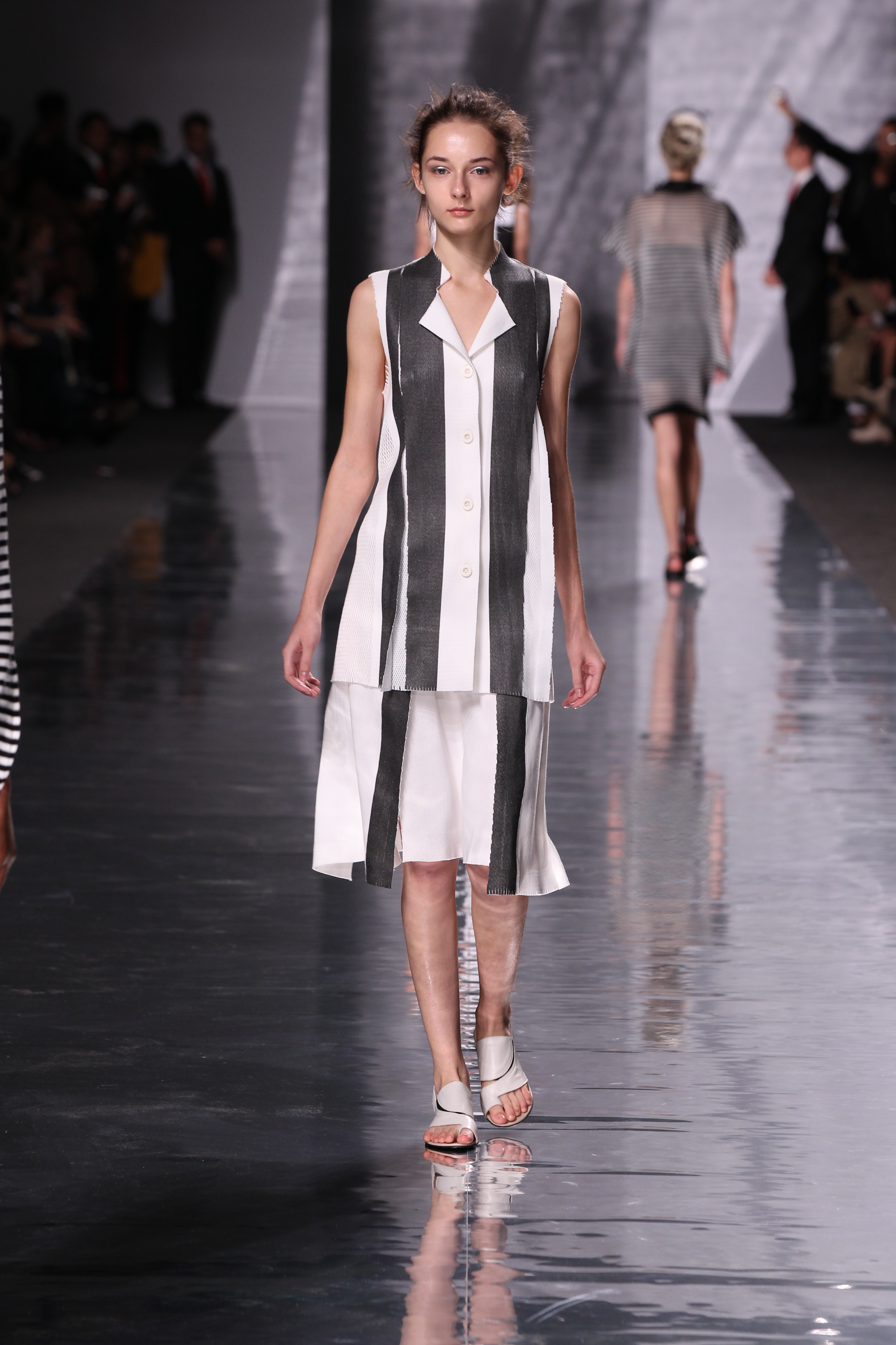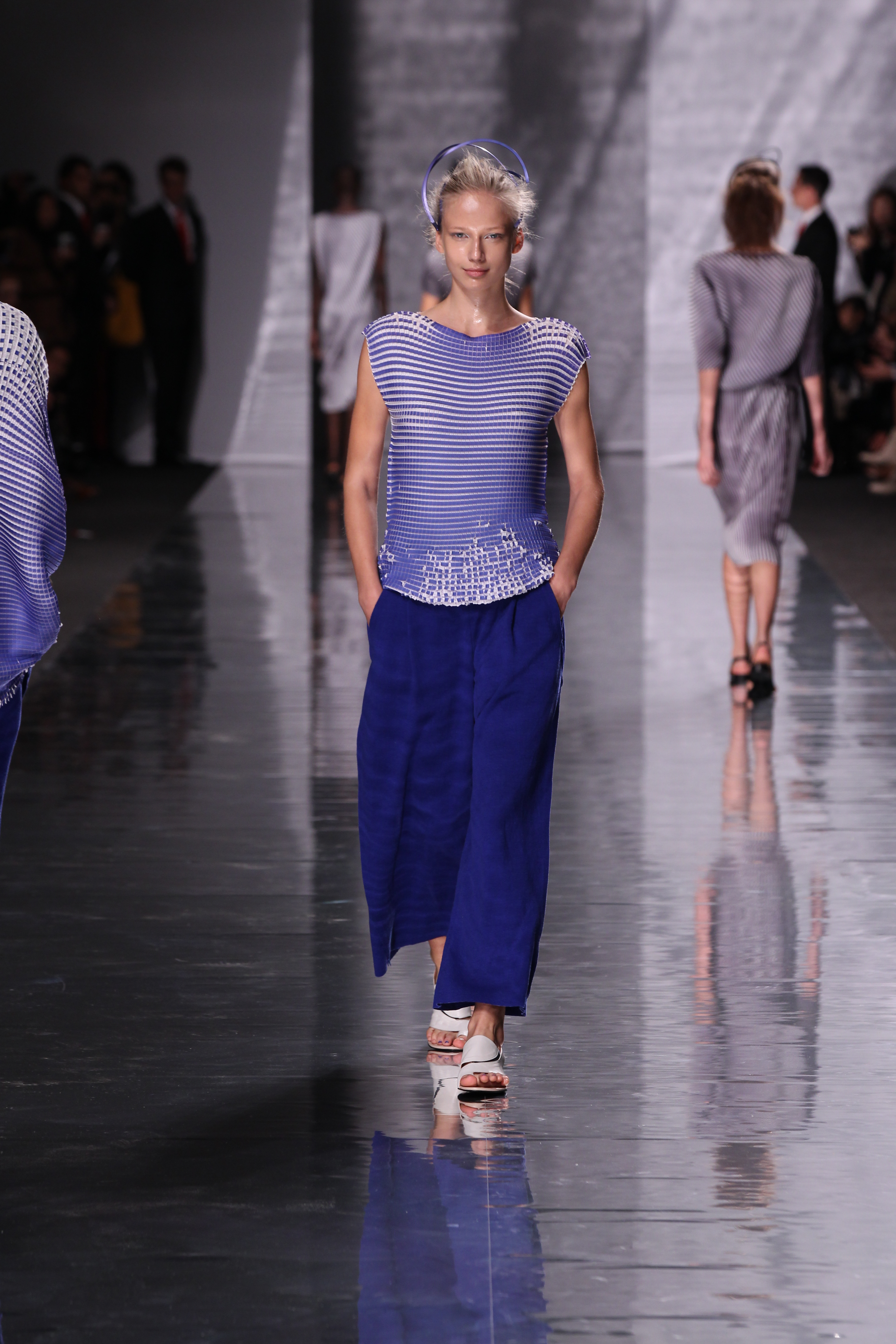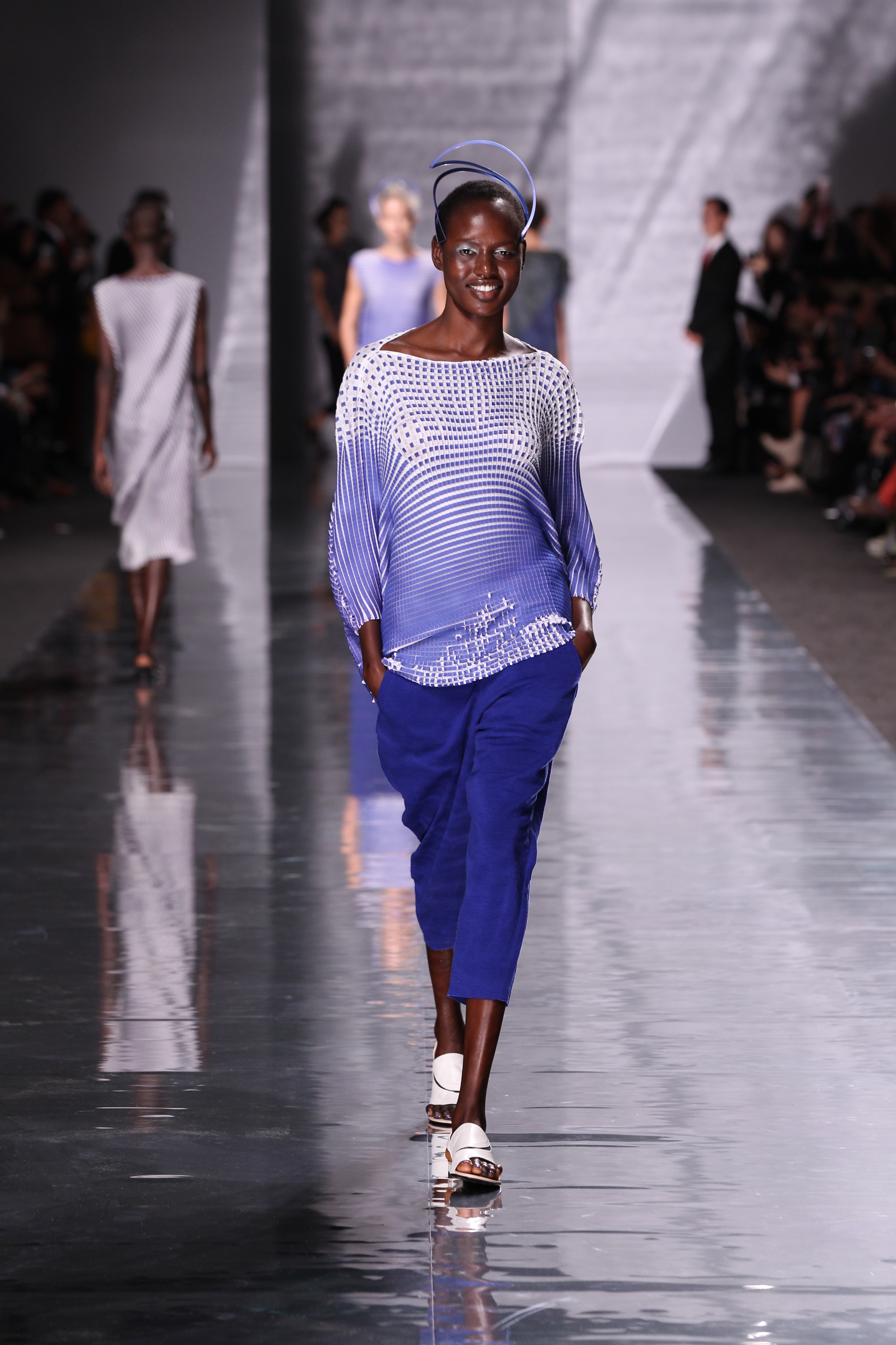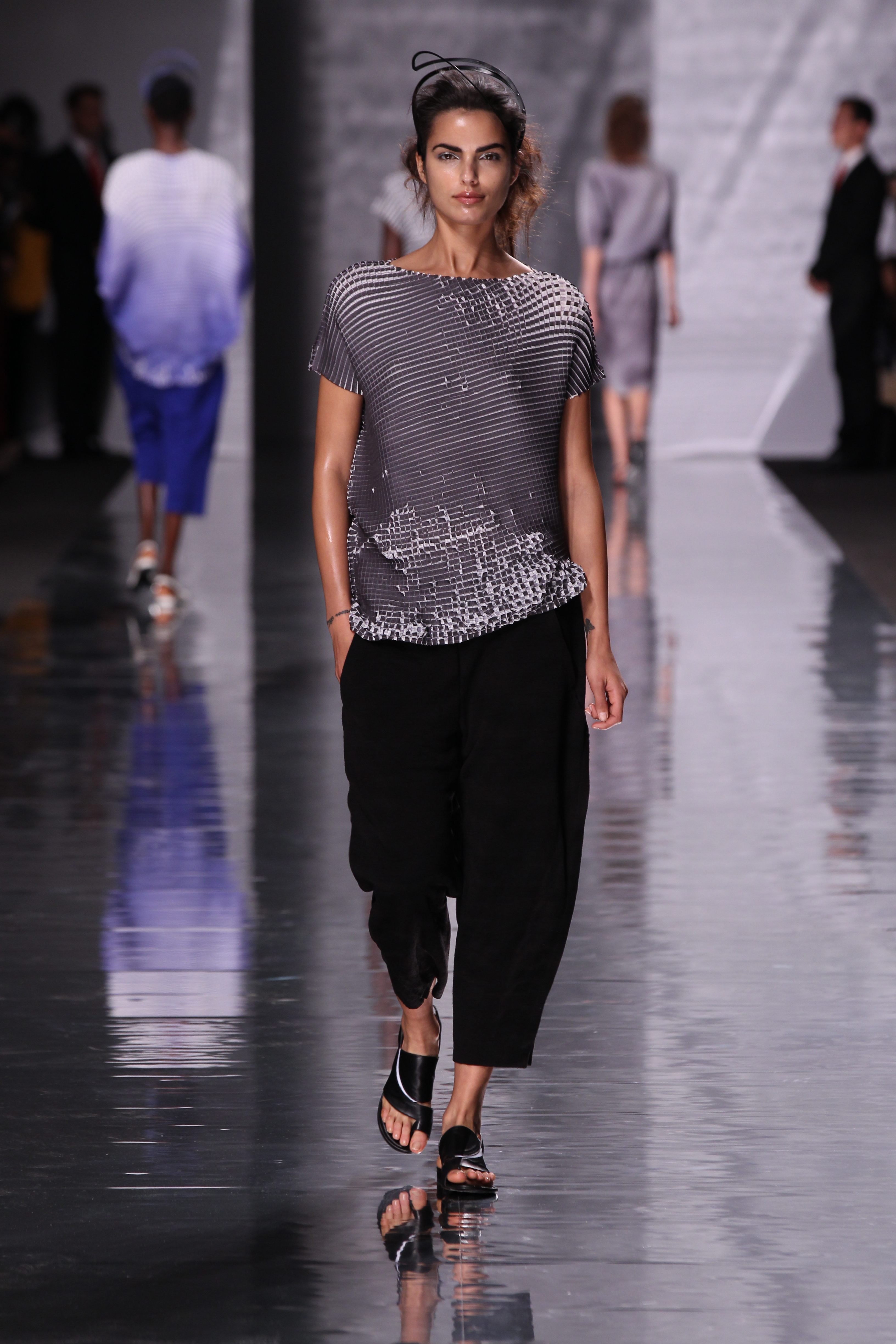 La maison Issey Miyake est connue pour son travail de recherche et d’ingénierie importants quant à l’élaboration de ses collections. Elle n’hésite jamais à faire preuve d’audace et à sortir des terrains battus et propose toujours des collections qui sortent de l’ordinaire à de nombreux niveaux que ce soit celui de la mise en scène ou plus simplement des vêtements.