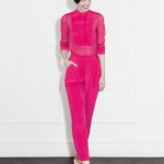 Je suis au départ étonnée par les couleurs vives qu’elle a choisi pour cette collection : rose, fuschia, rose bonbon qui contraste avec la palette plus austère de sa collection passée . Elle m’explique qu’elle même ne supporte pas le fuschia mais qu’elle était comme possédée et ressentait le besoin d’utiliser cette couleur. Ce qui ne va pas sans rappeler les créations de la grande Elsa Schiaparelli, car je suis convaincue que c’est dans ses pas que marche Barbara.