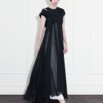 Drapés grandioses, elle me dit qu’elle a voulu faire une collection « Madame Grès rencontre Helmut Lang des années 90 », deux références qui étaient aussi venues à l’esprit. Helmut Lang pour les coutures que l’on peut retrouver sur certains des vêtements, signature du créateur et Madame Grès pour la majesté de ses robes.