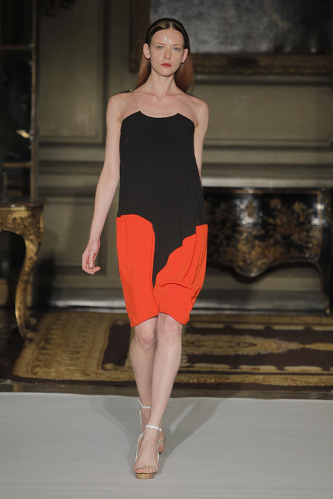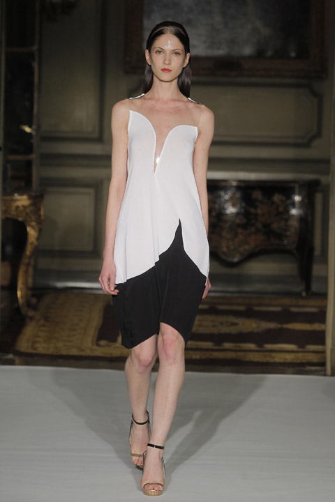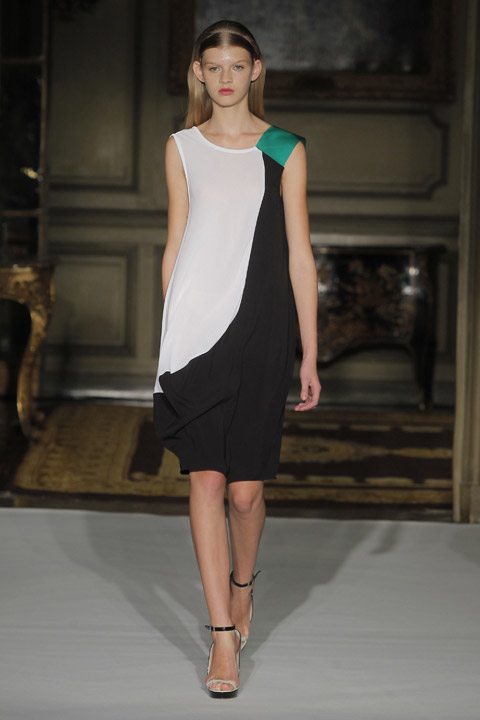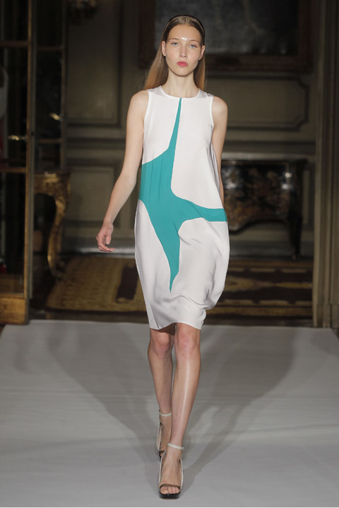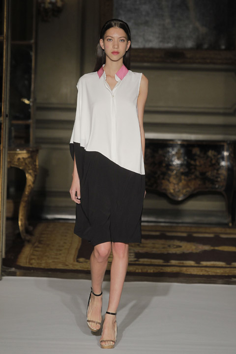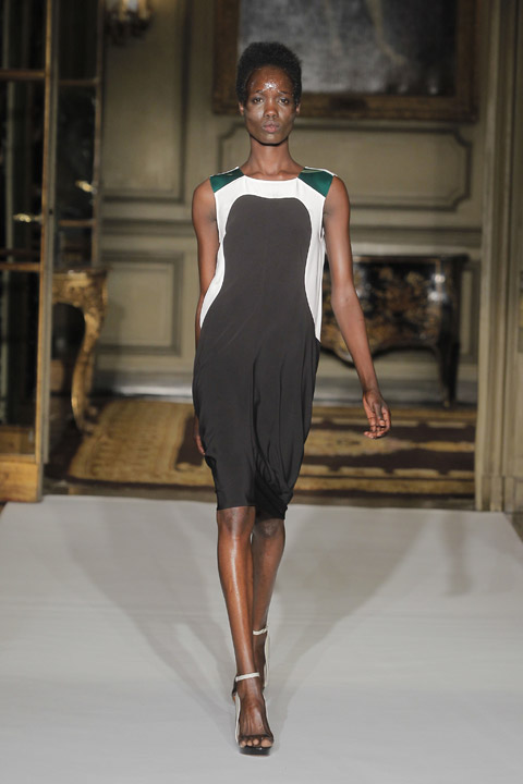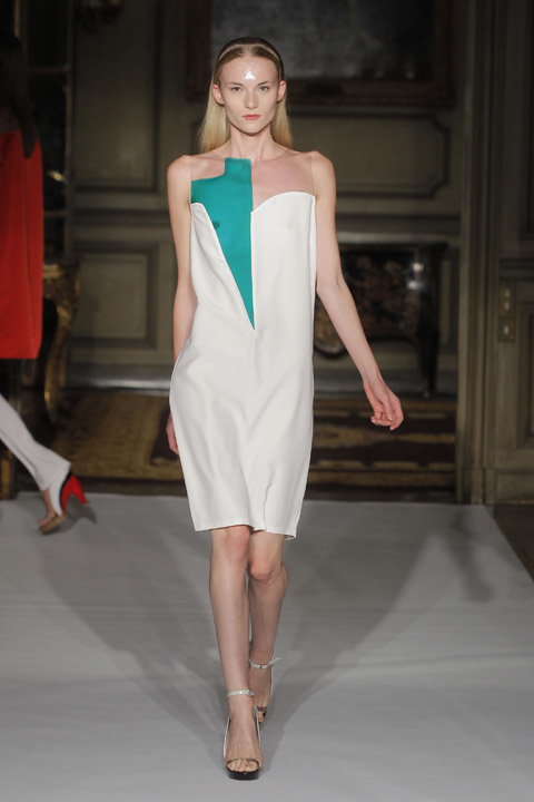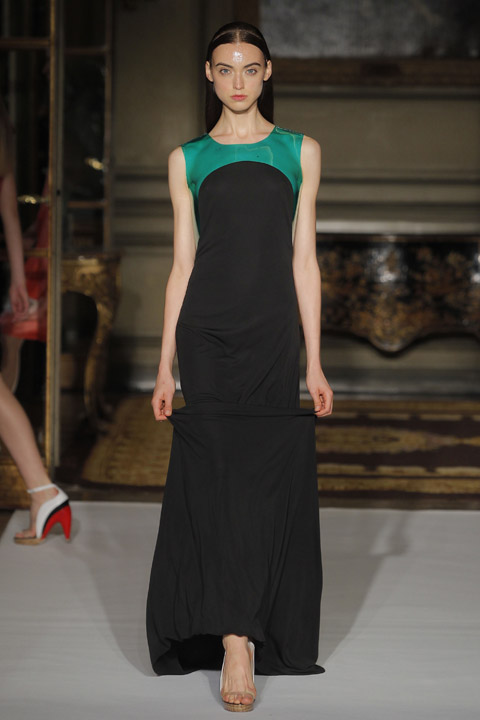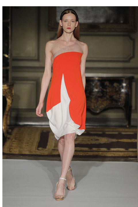Très jolies symétries sur les robes avec des mélanges de couleur et du plastique transparent la ou on ne l’attend pas comme au niveau de la taille ou des épaules, c’est une collection pleine de finesse et de bon goût que nous présente la créatrice espagnole, brisant cependant les codes établis avec son utilisation intelligente de matières qu’on ne voit pas souvent mariées ensemble de façon aussi empirique.