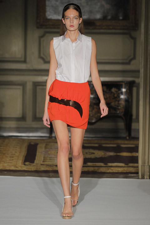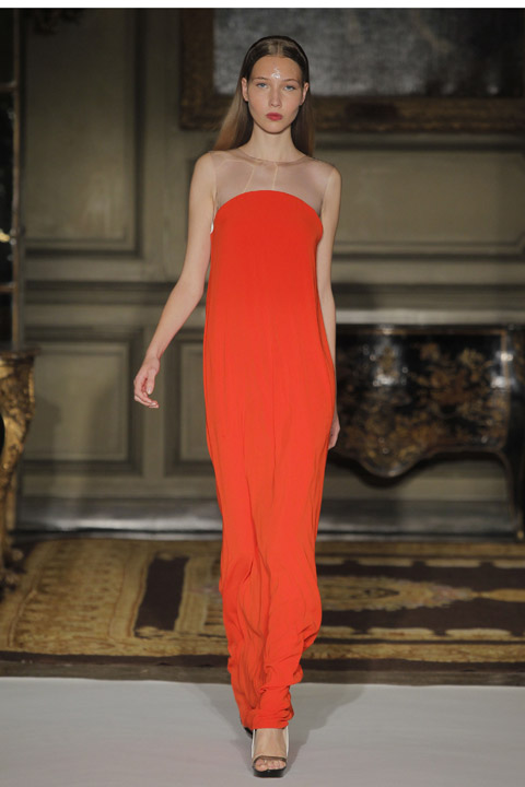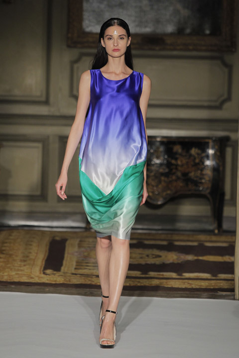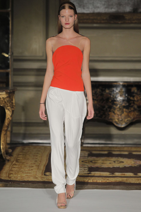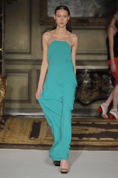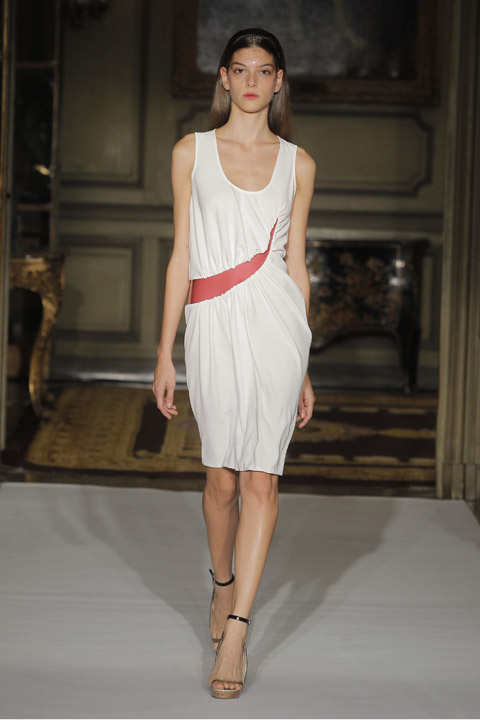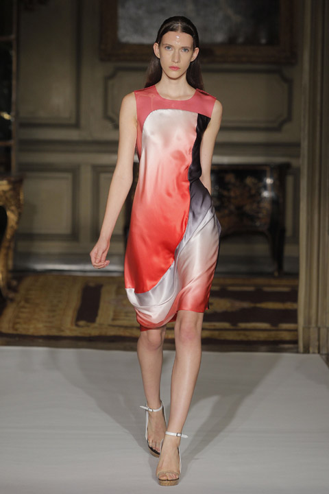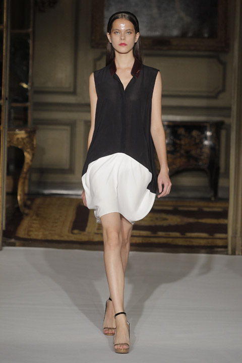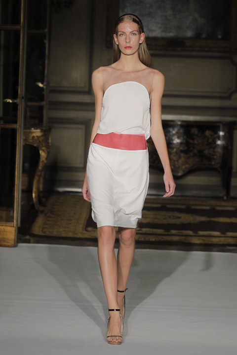 Très jolies symétries sur les robes avec des mélanges de couleur et du plastique transparent la ou on ne l’attend pas comme au niveau de la taille ou des épaules, c’est une collection pleine de finesse et de bon goût que nous présente la créatrice espagnole, brisant cependant les codes établis avec son utilisation intelligente de matières qu’on ne voit pas souvent mariées ensemble de façon aussi empirique.