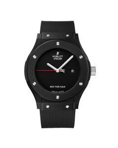 Cette « Montre Atelier» est un modèle spécial et non disponible à la vente dont la conception est fidèle au principe de fusion cher à la marque : elle est fabriquée en composite noir, boite, lunette, boucle à ardillon également en composite noir avec un bracelet en caoutchouc noir, vis et couronne en acier, et équipée d’un mouvement quartz avec date et petite seconde. La