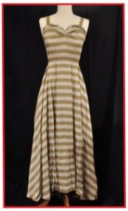 • une robe du soir rayée beige et crème, griffée Jean FARELL, 37 avenue Georges V à Paris et son jupon noir, qu’Edith Piaf, venue encourager son champion, portaient lors de la finale de 1948 (2 000 / 3 000 €)