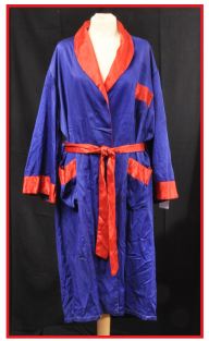 • un peignoir bleu et rouge avec sa ceinture. Accompagnant le short et porté durant la même période, ce peignoir devrait recueillir des enchères comprises entre 1 000 et 1 200€. Les deux vêtements portent une griffe « BENLEE Sporting Goods, MFG . CO. N.Y.C. ».