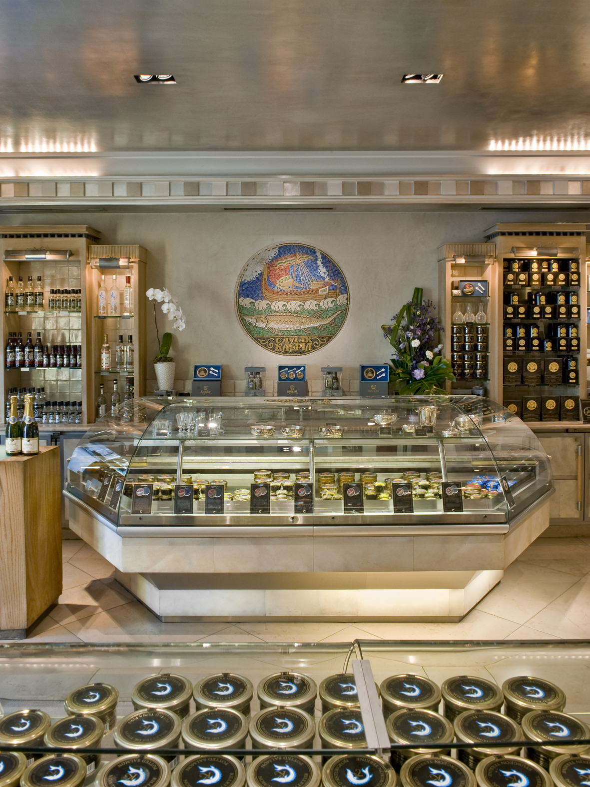 et traditionnelle, tout aussi appréciable que ces délectables mets. Au rez-de-chaussée, une boutique et un rayon traiteur pour emporter ou se faire servir chez soi tous les caviars, vodkas et autres poissons ou jambons fumés : presque toute la Russie en somme ! Riche de cadeaux raffinés et gourmands, la boutique Kaspia a sélectionné quelques suggestions à offrir ouà s’offrir en fonction de son budget et de ses envies.