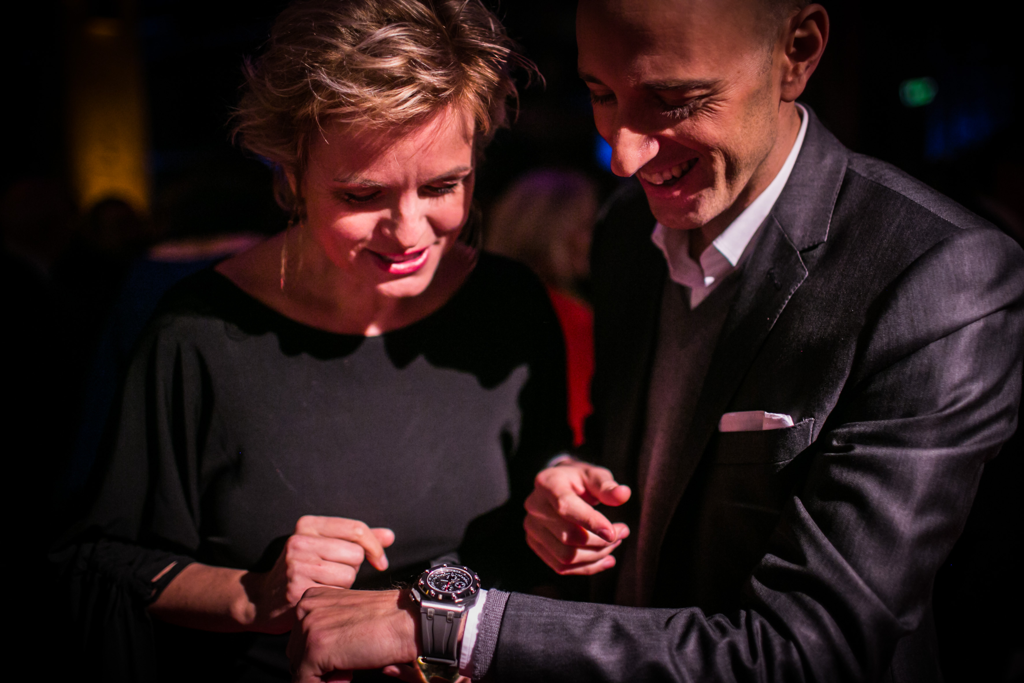 Pour fêter dignement le lancement du nouveau garde-temps d’Audemars Piguet, le décor industriel brut du Kraftwerk avait été spécialement transformé le temps d’une soirée. Au rez-de-chaussée, une zone de réception séparée du reste de la salle par une installation lumineuse avait été aménagée pour accueillir le cocktail de bienvenue, à l’issue duquel les convives sont passés à l’étage pour le dîner. Au cours de ce repas, ils ont pu assister à la projection d’une animation visuelle retraçant l’histoire de deux univers, ceux de l’horlogerie et de la course automobile, dont l’heureux mariage a donné naissance à la Chronographe Royal Oak Offshore Michael Schumacher.