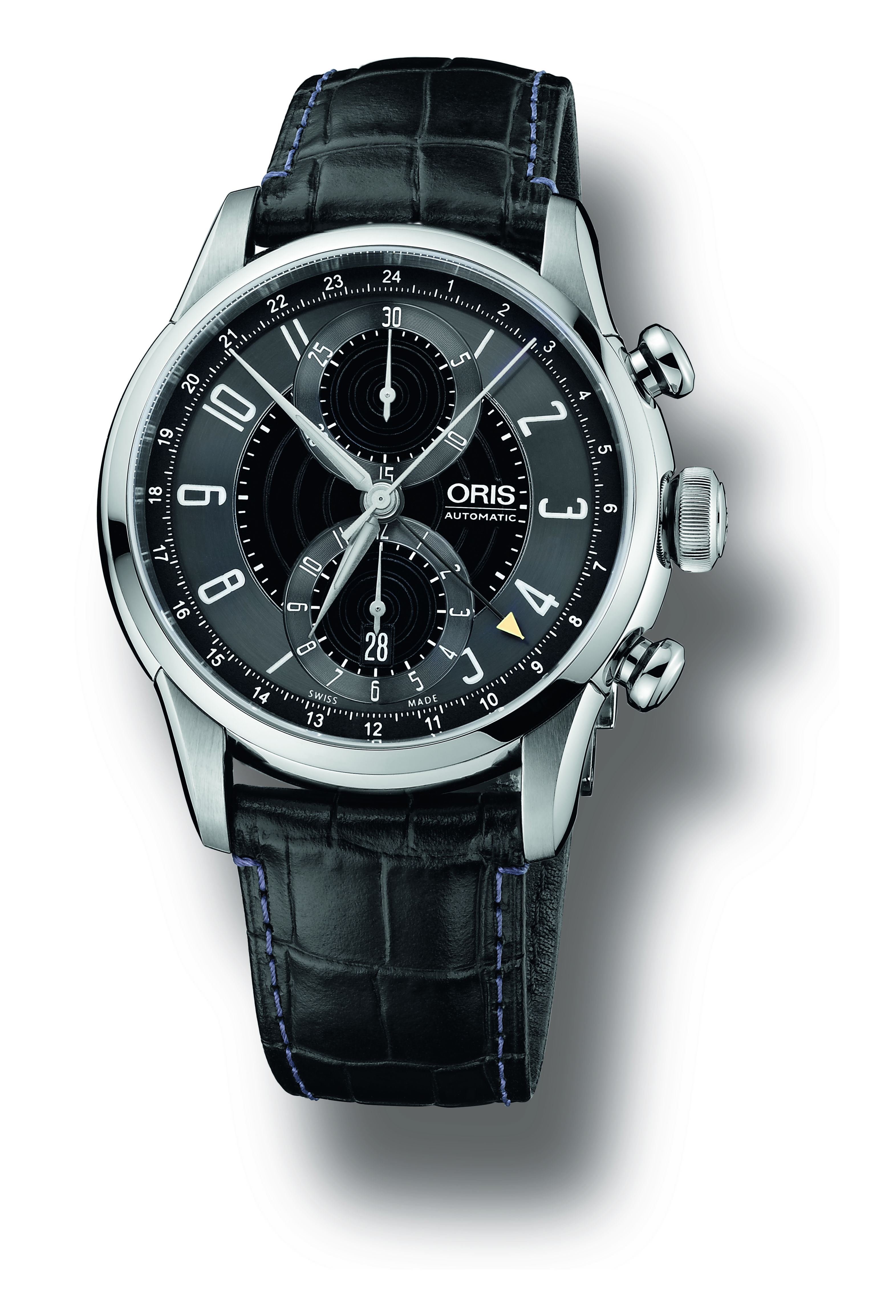 Pour rendre honneur au tableau de bord de la Cadillac Série 62 de 1942, le Chronographe Oris RAID 2012 édition limitée reprend la typographie emblématique de la série Cadillac. Les fonctions classiques du chronographe sont complétées par un indicateur supplémentaire de seconde zone de temps de 24 heures.