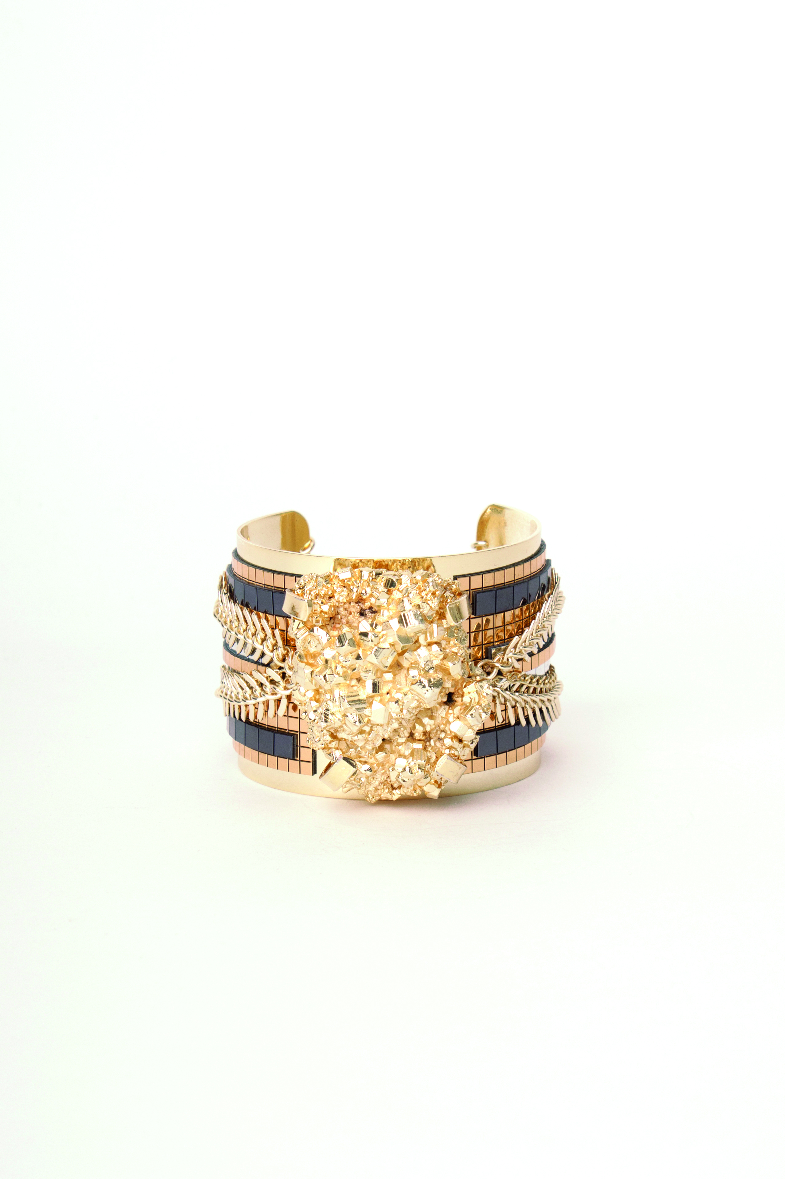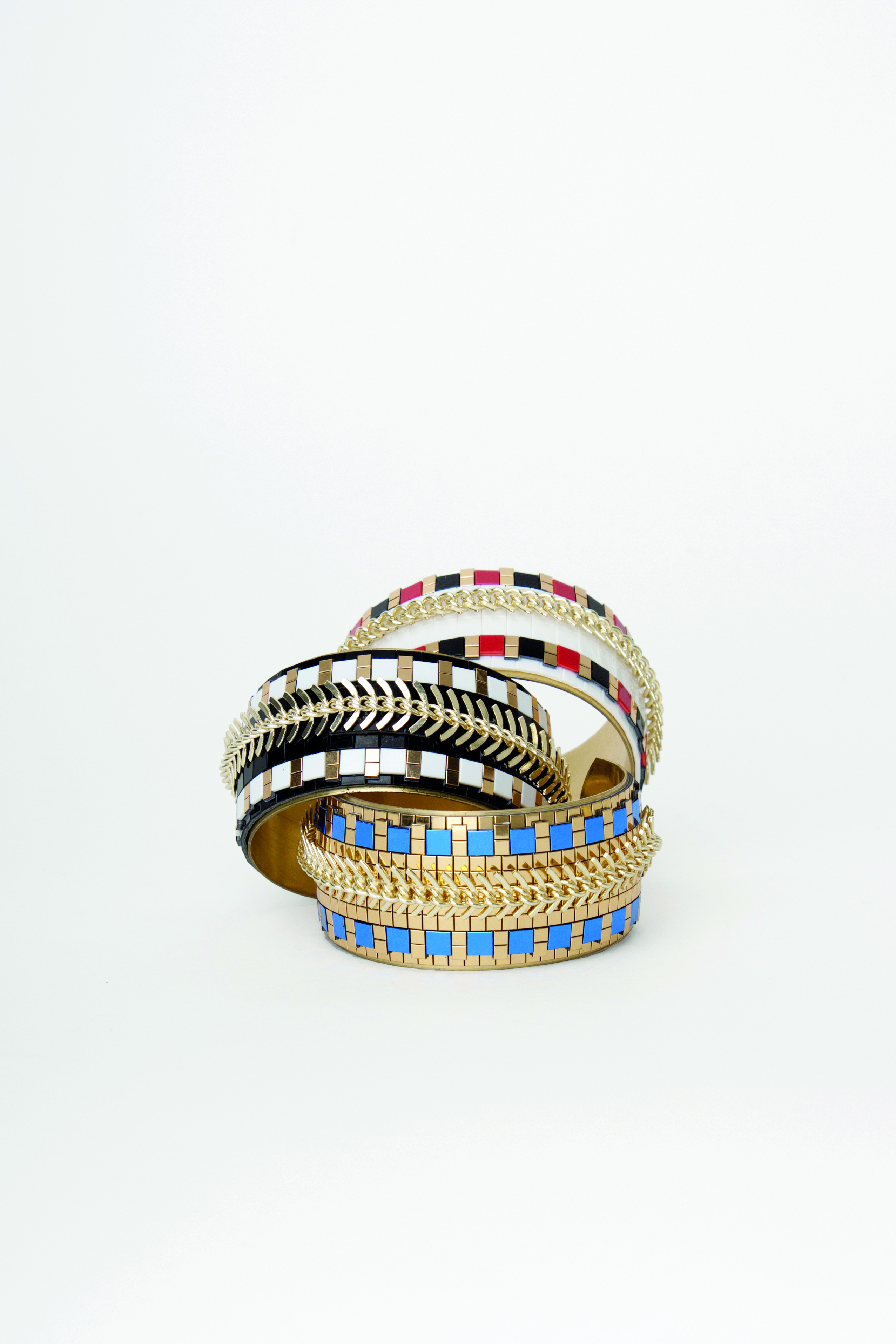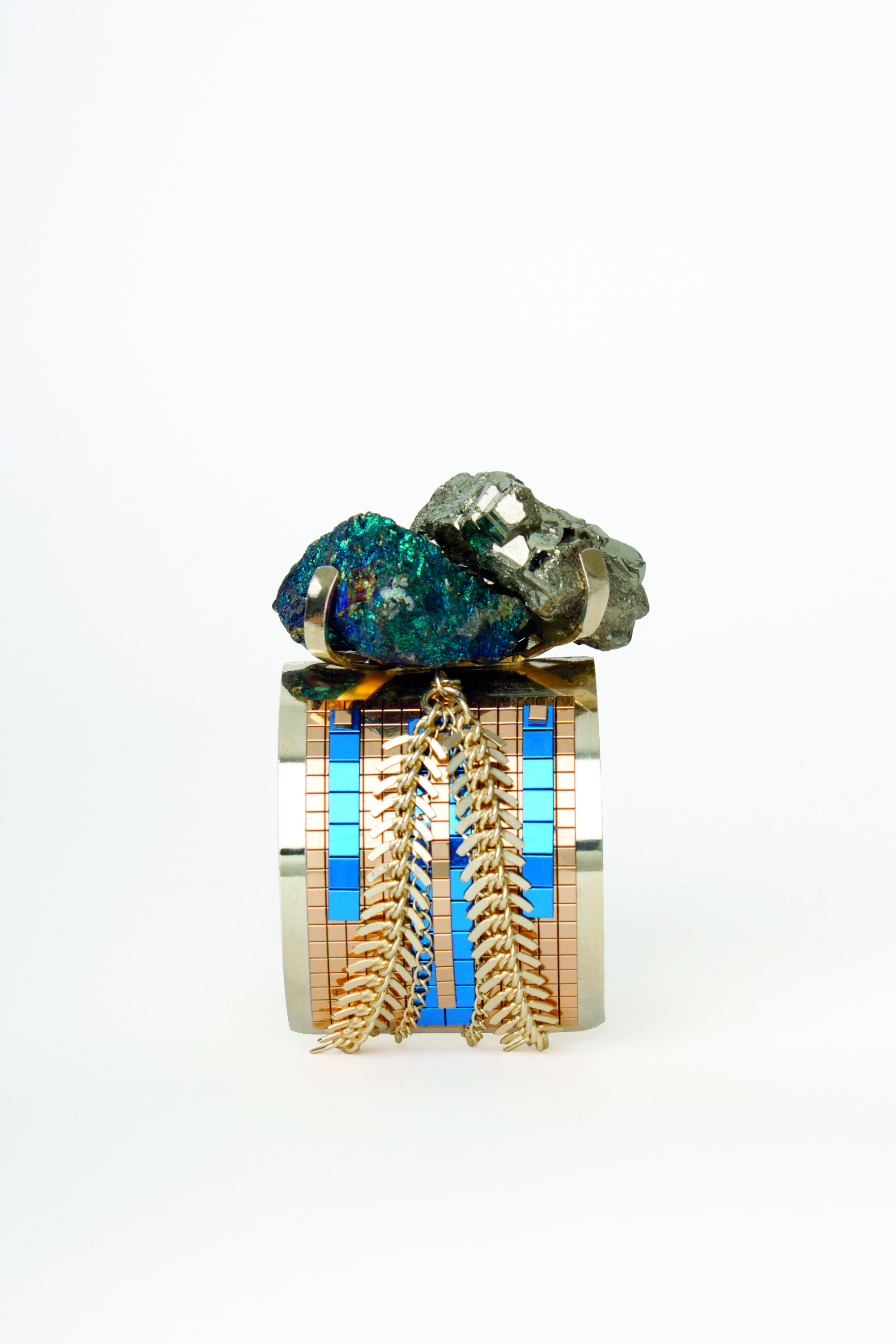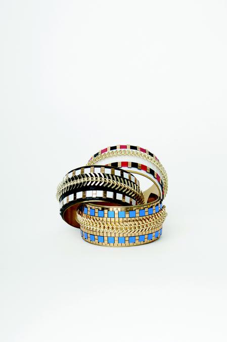 Hirschell crée des bracelets originaux, raffinés et colorés à porter sans modération pour cette collection inspirée du trésor des incas. Nous redécouvrons de vrais bijoux alliant volumes, motifs, couleurs faits e matériaux singuliers : pixels en résine époxy, base plaquée or, pyrite, chiropirite.