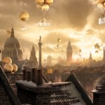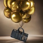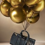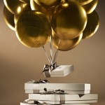 Burberry.com s’ouvre sur une image captivante du ciel londonien rempli de ballons dorés livrant des cadeaux.