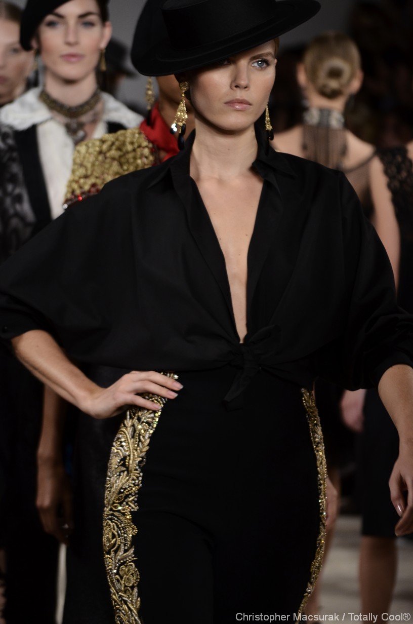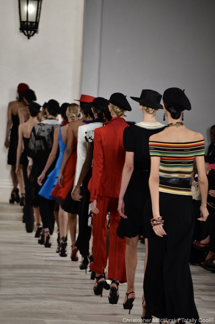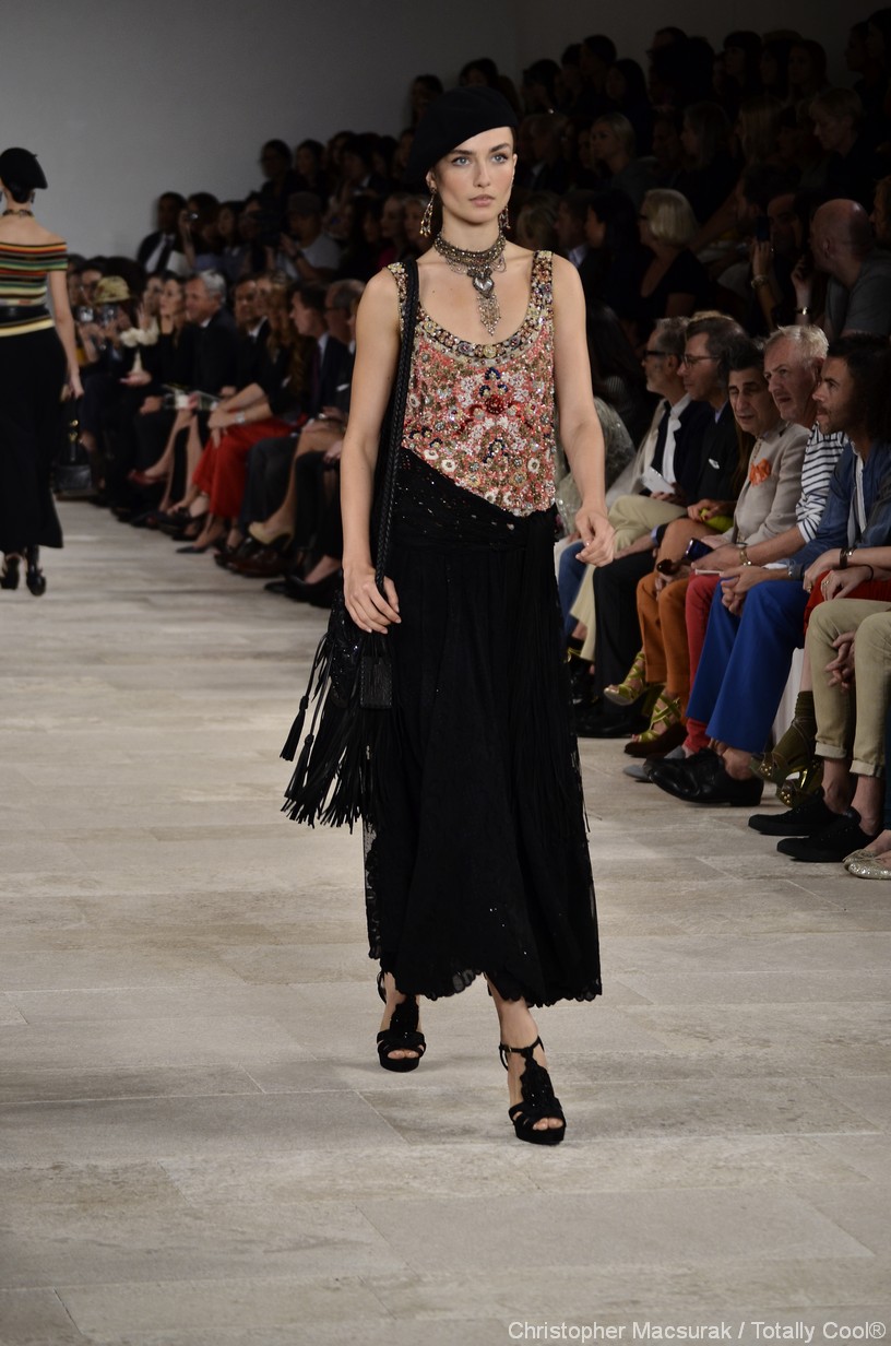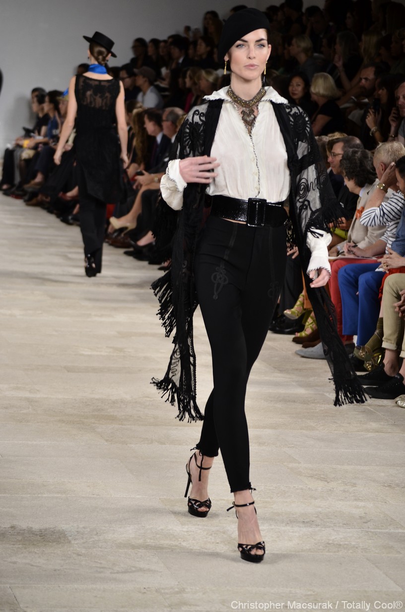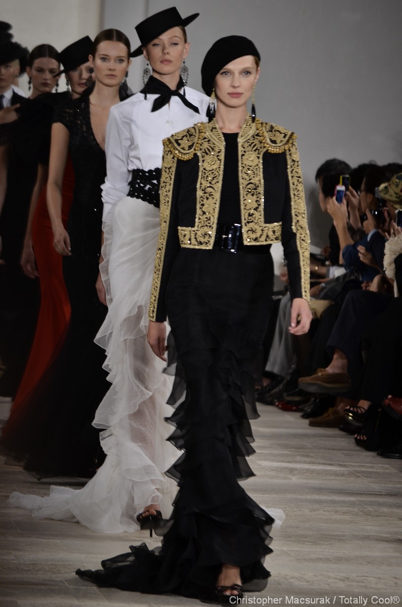 Une collection aux influences espagnoles, on y retrouve des emprunts au Flamenco, à l’hippisme, aux campagnes mais aussi à la fougue de la vie madrilène. Ralph Lauren nous offre donc une collection sophistiquée, soignée, très européenne en somme.