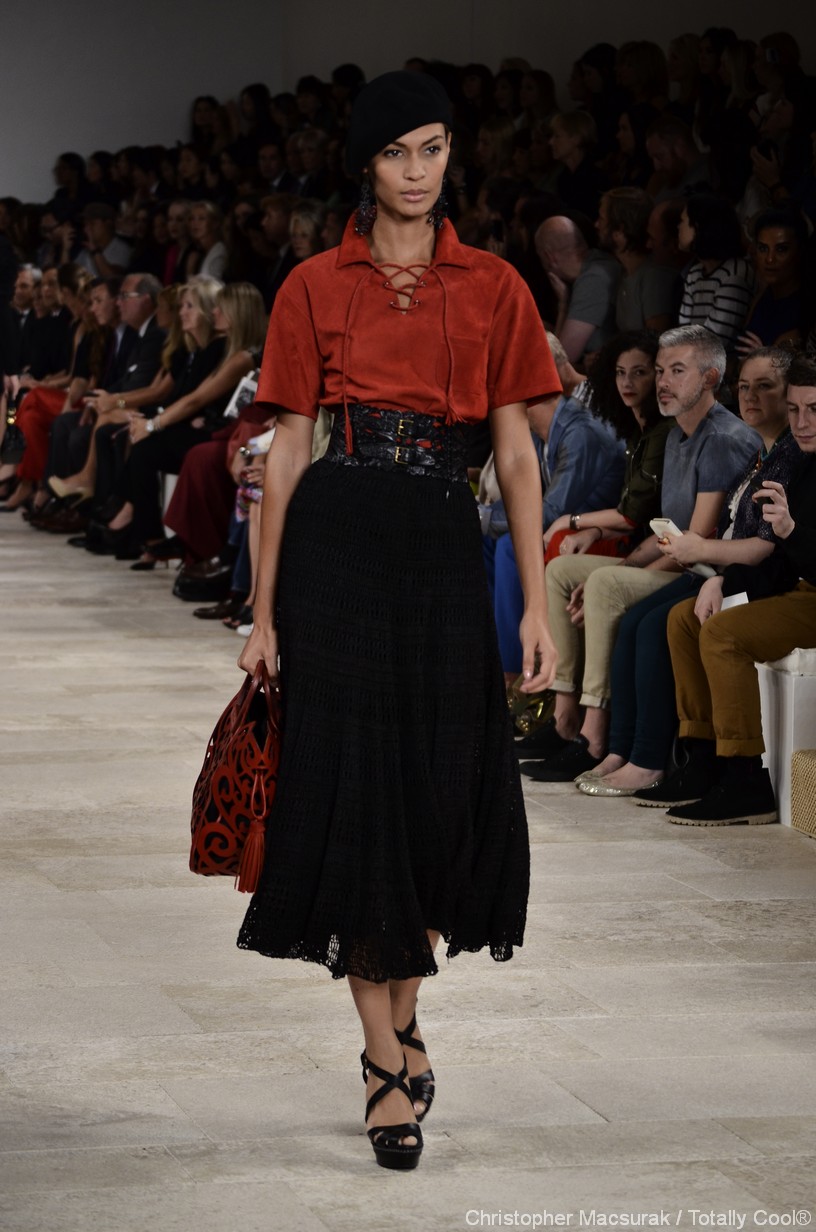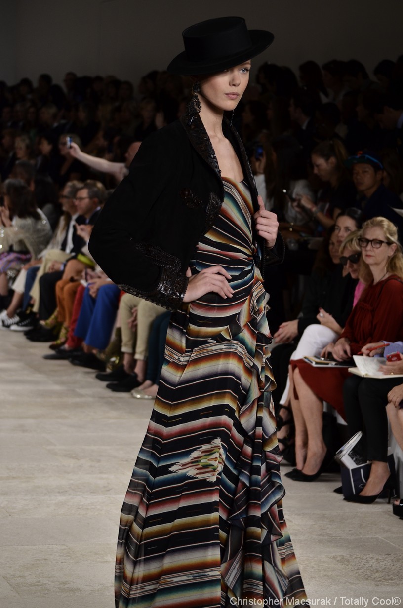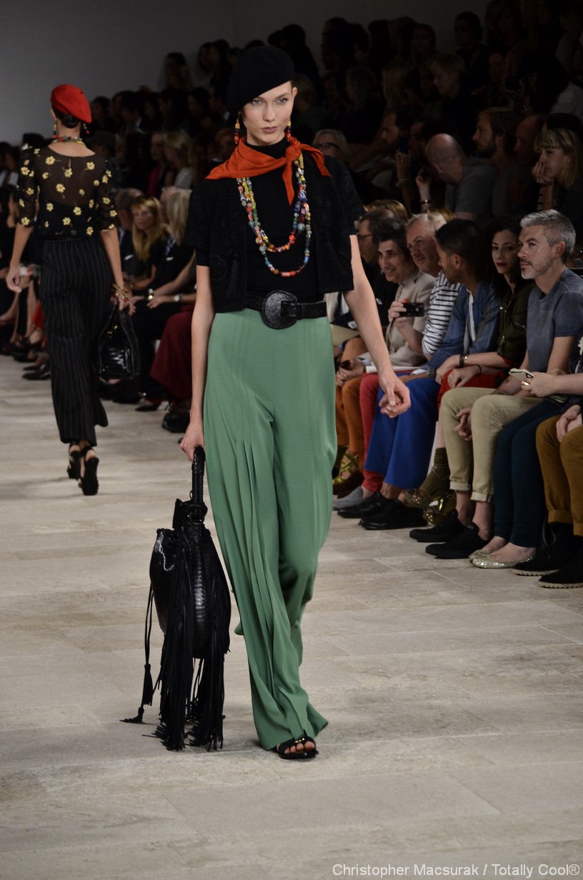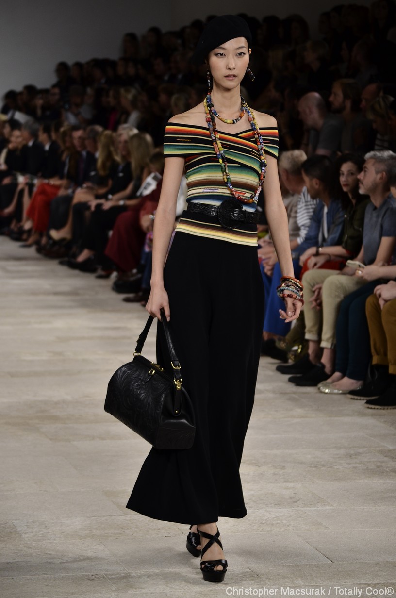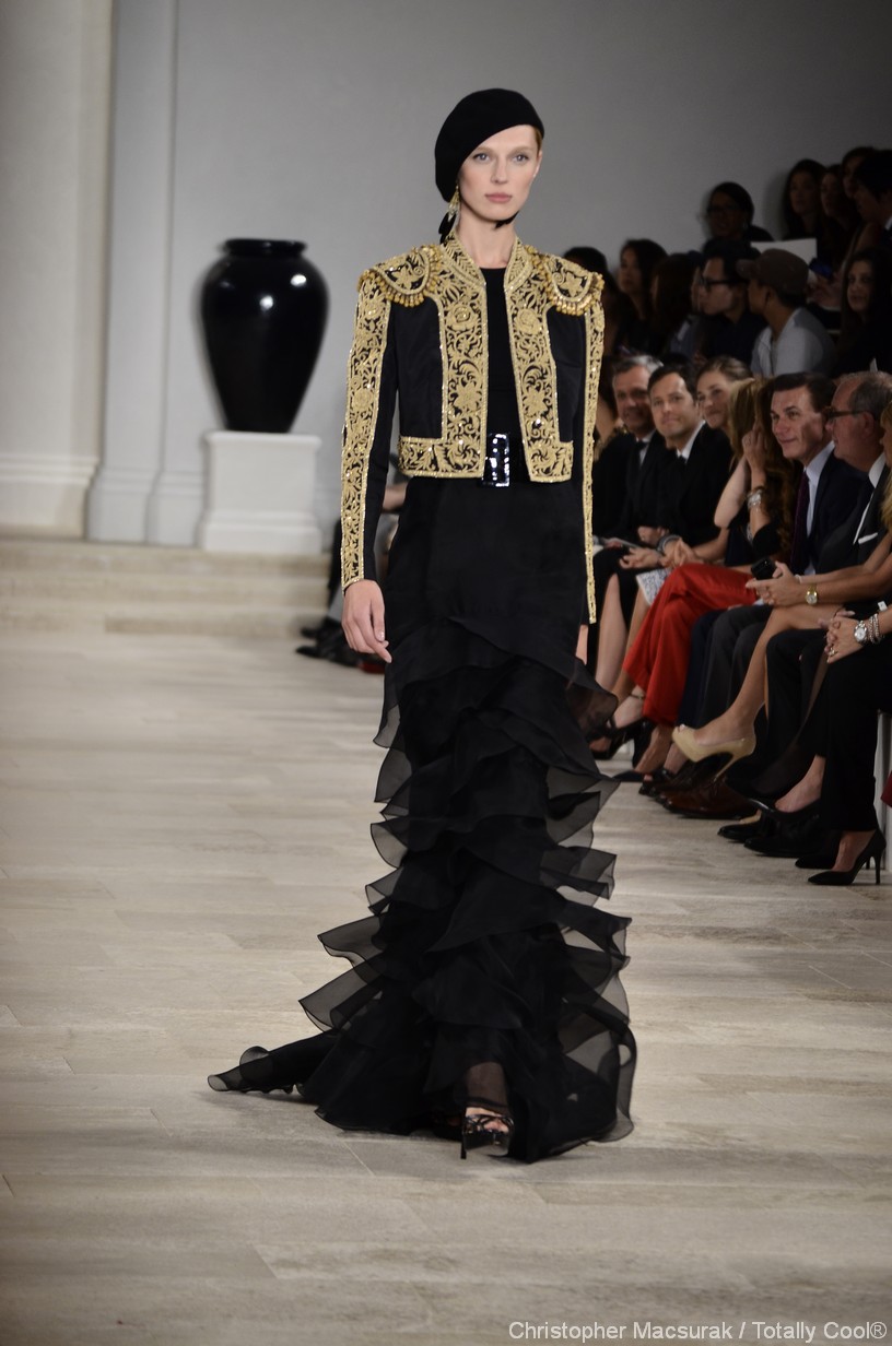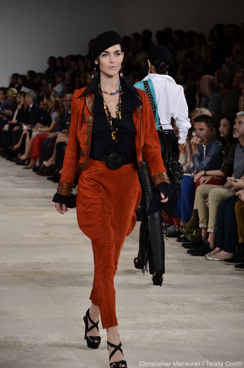 Une collection aux influences espagnoles, on y retrouve des emprunts au Flamenco, à l’hippisme, aux campagnes mais aussi à la fougue de la vie madrilène. Ralph Lauren nous offre donc une collection sophistiquée, soignée, très européenne en somme.