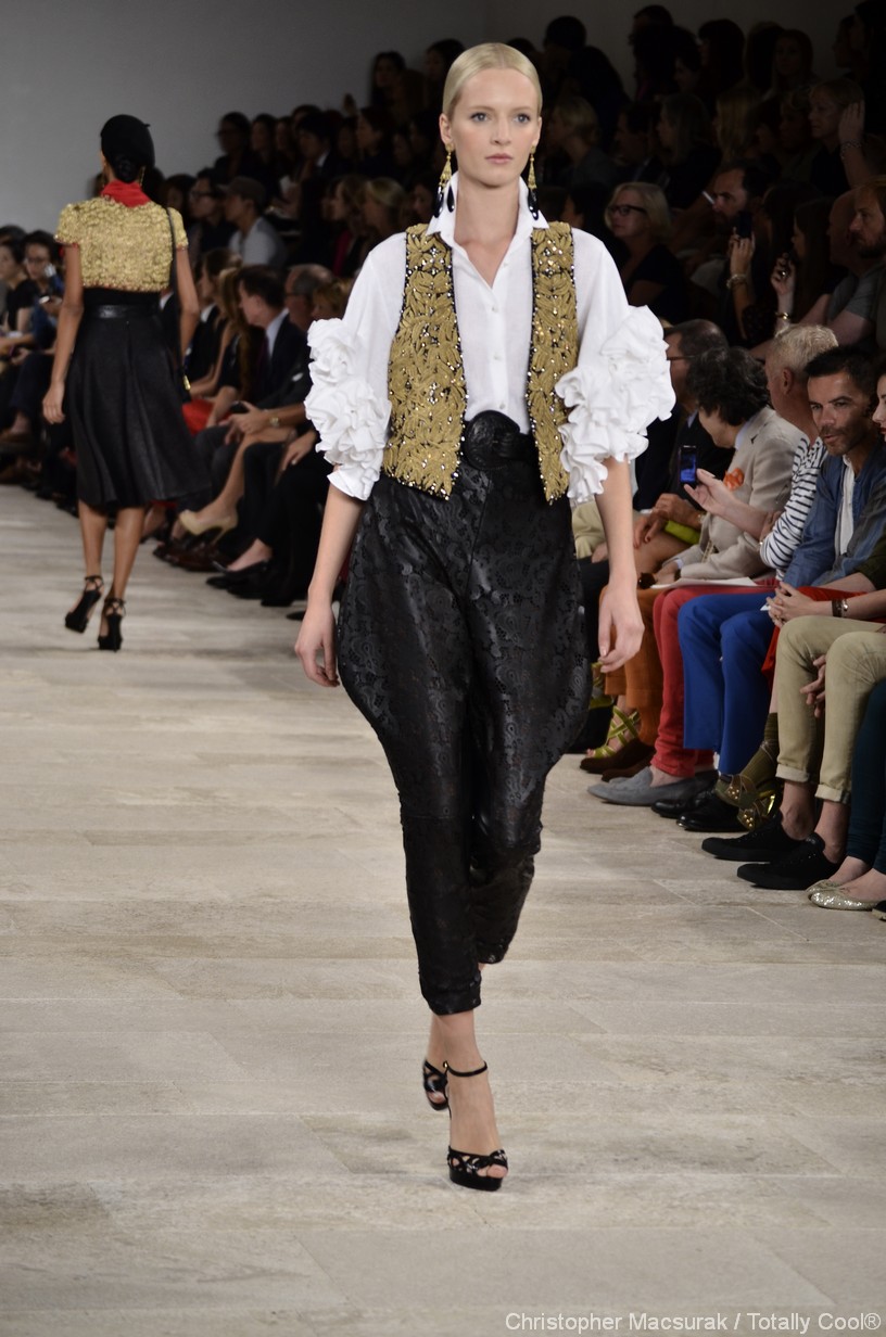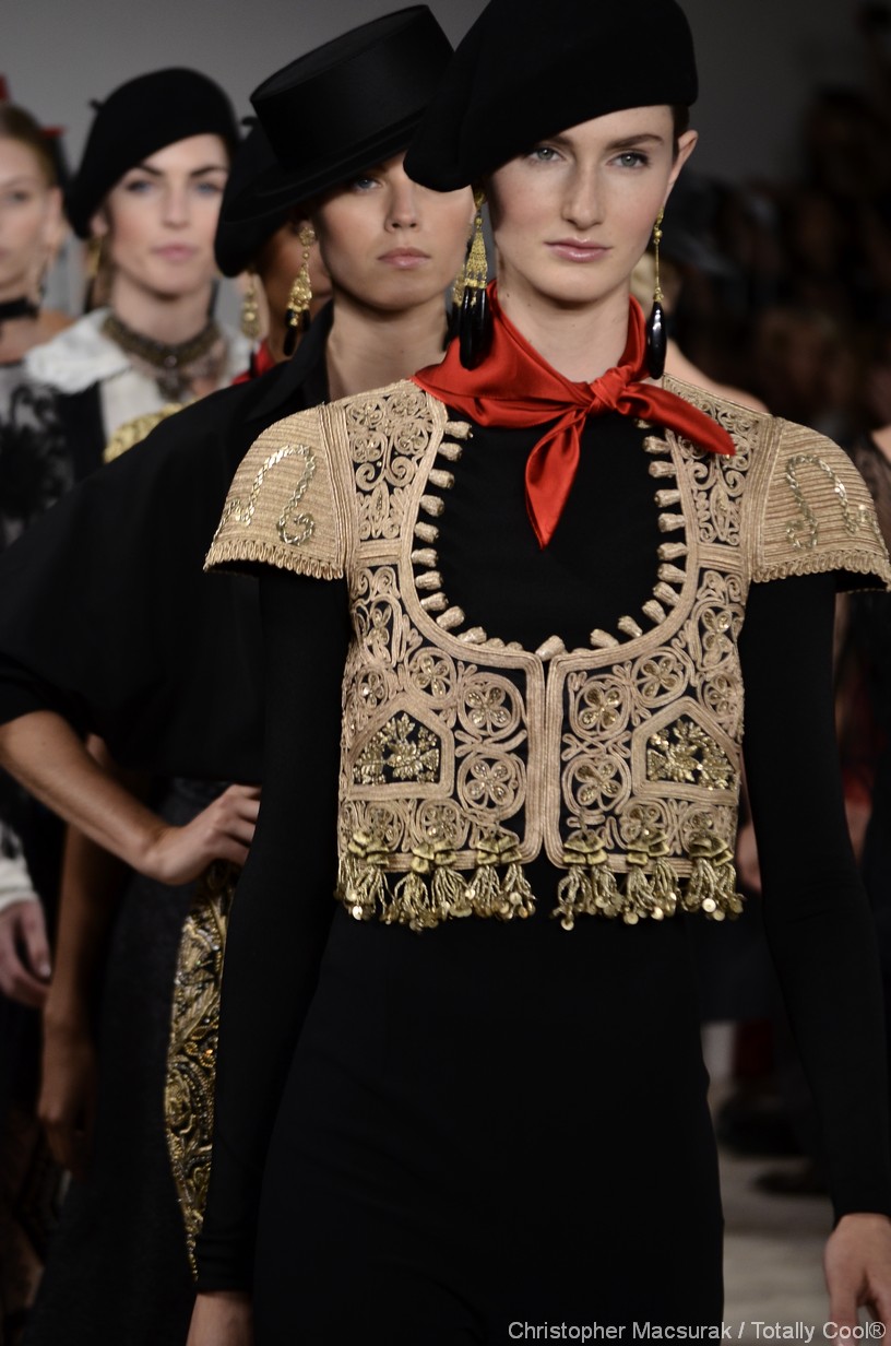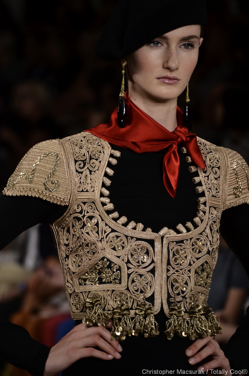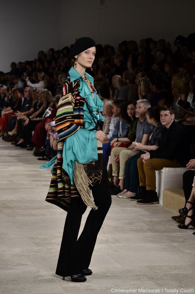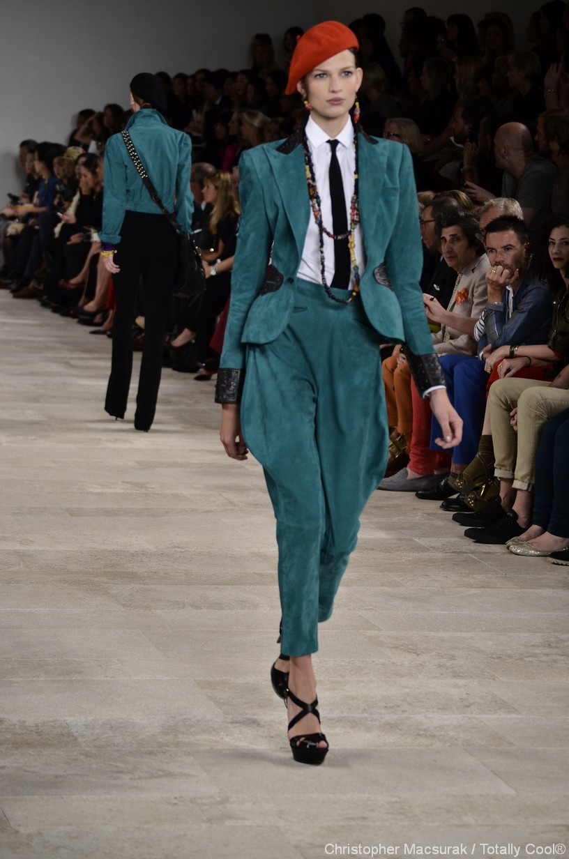 Une collection aux influences espagnoles, on y retrouve des emprunts au Flamenco, à l’hippisme, aux campagnes mais aussi à la fougue de la vie madrilène. Ralph Lauren nous offre donc une collection sophistiquée, soignée, très européenne en somme.
