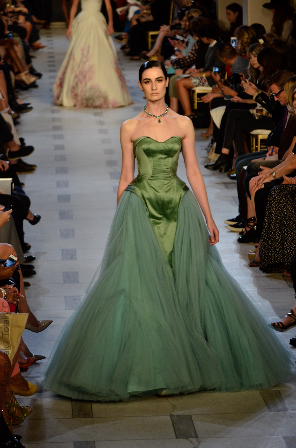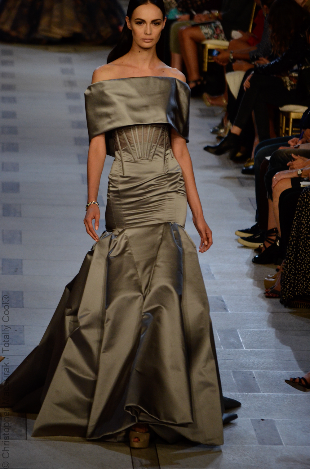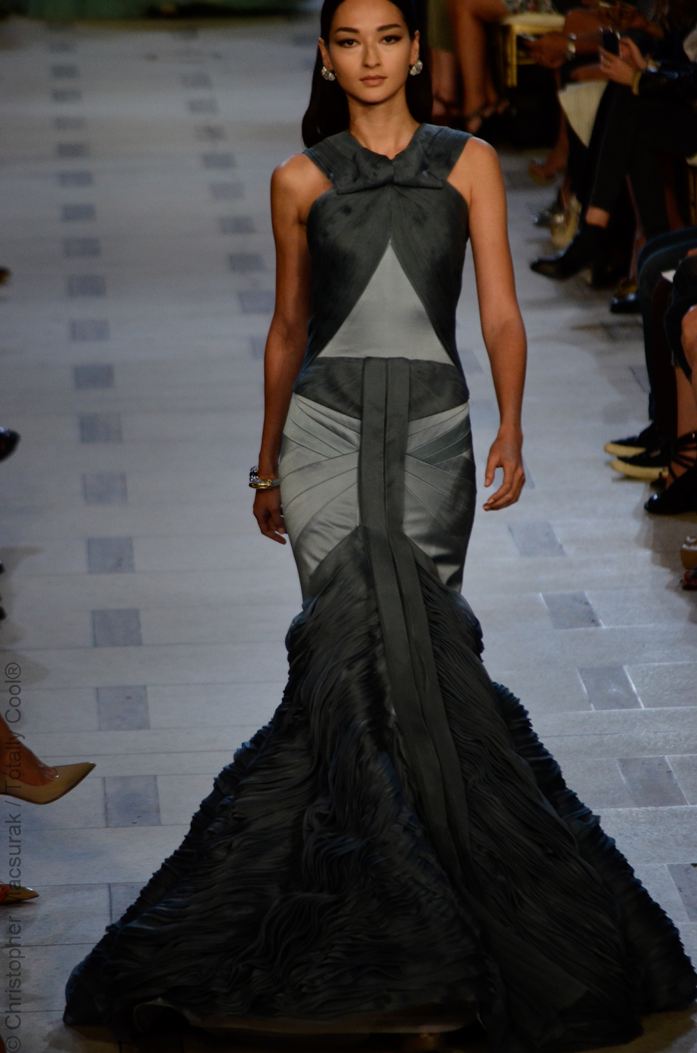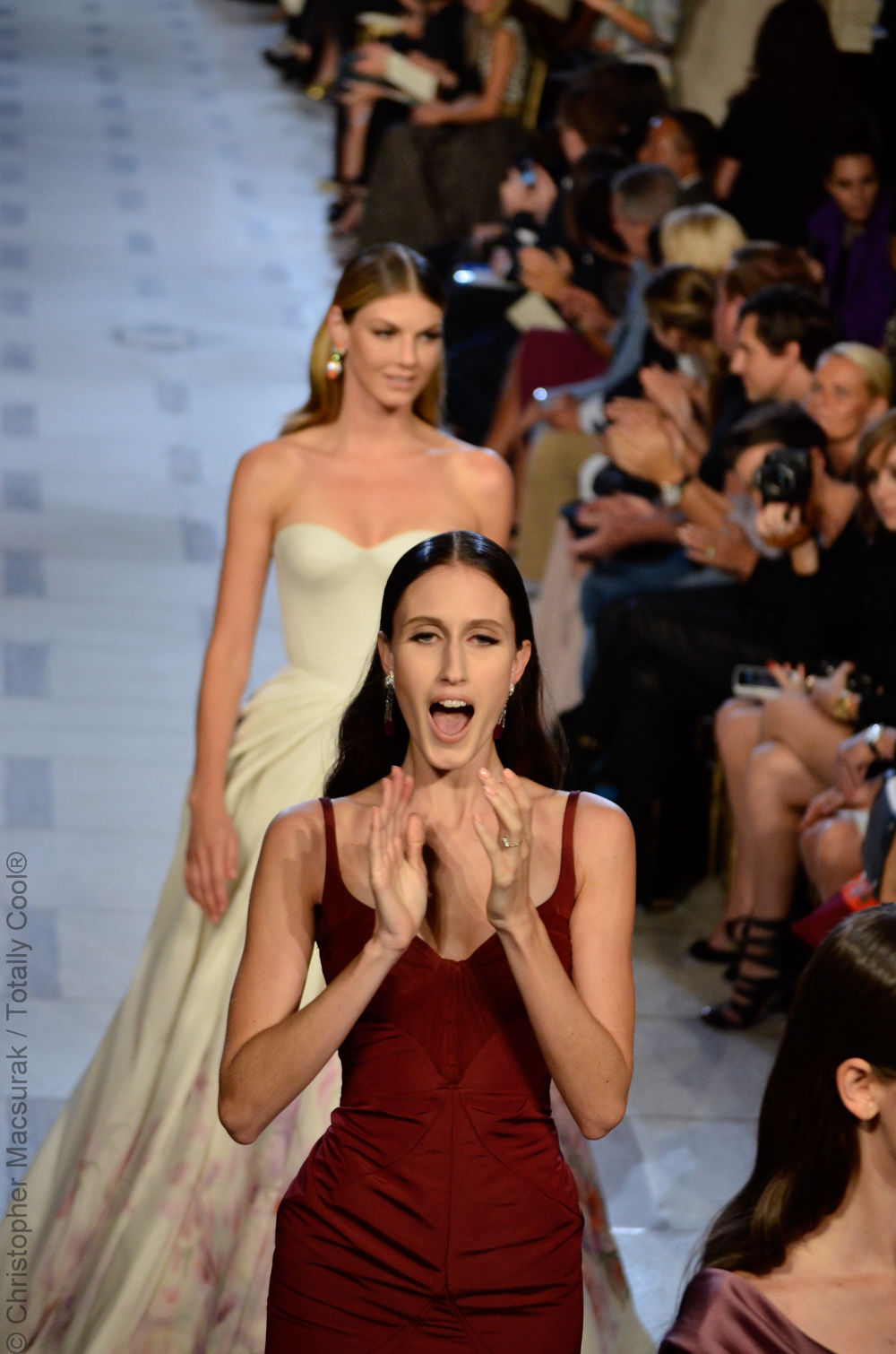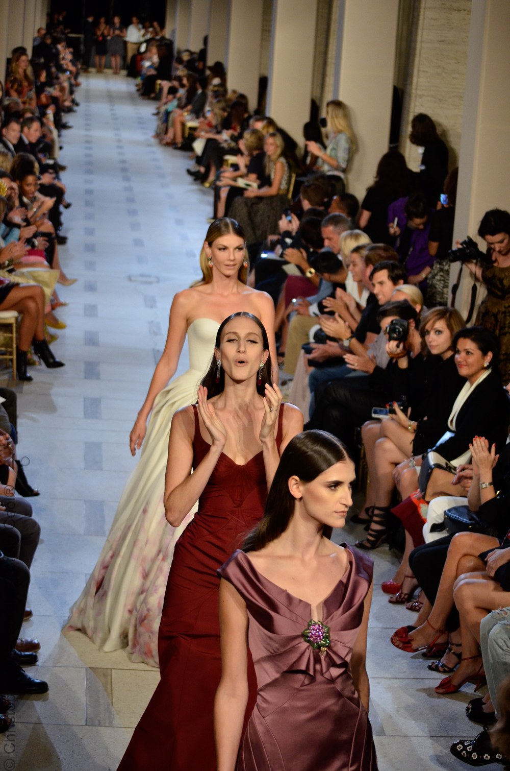 Zac Posen entouré de ses supermodels nous présente une femme sublimée aux influences des années 40. Une collection très Red Carpet.
