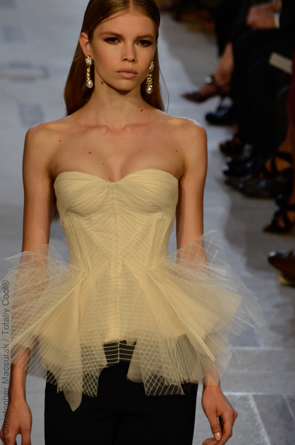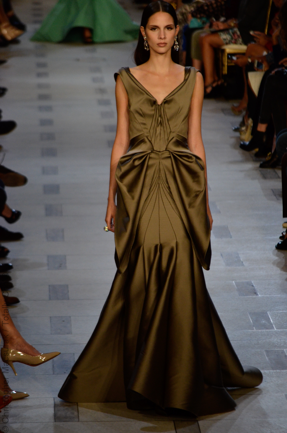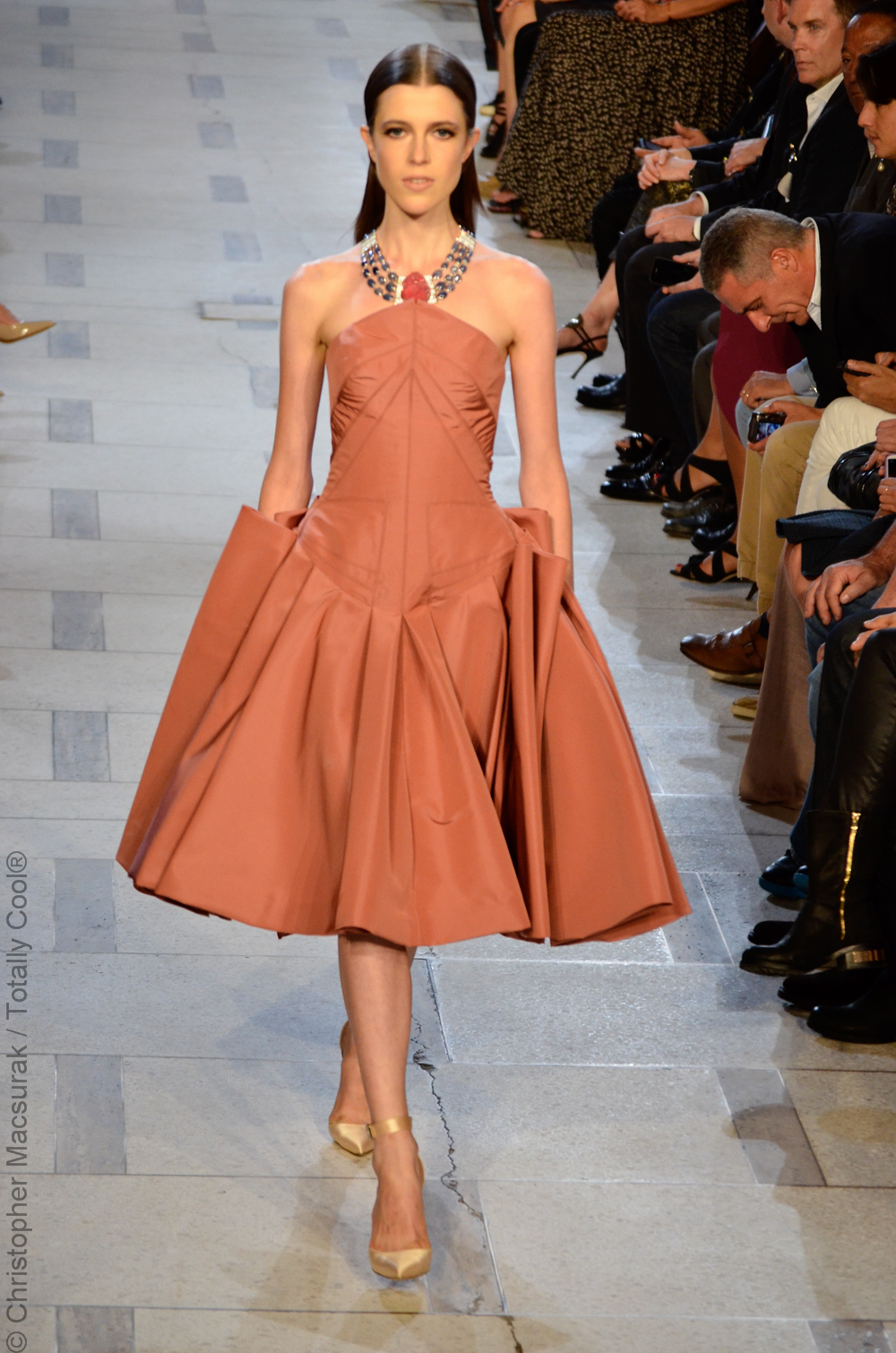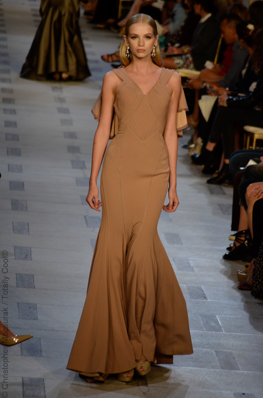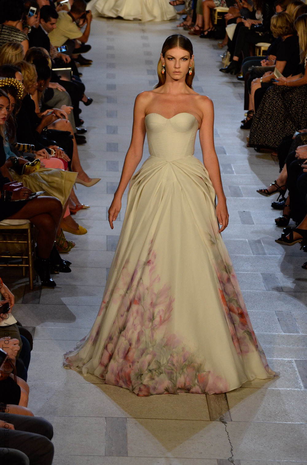 Zac Posen entouré de ses supermodels nous présente une femme sublimée aux influences des années 40. Une collection très Red Carpet.