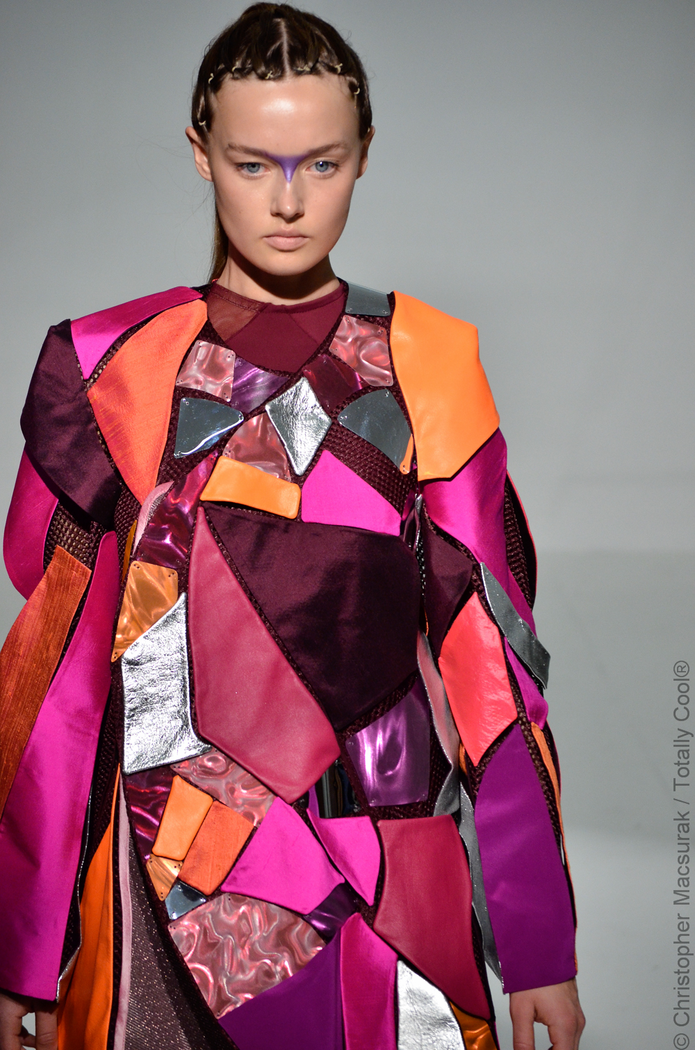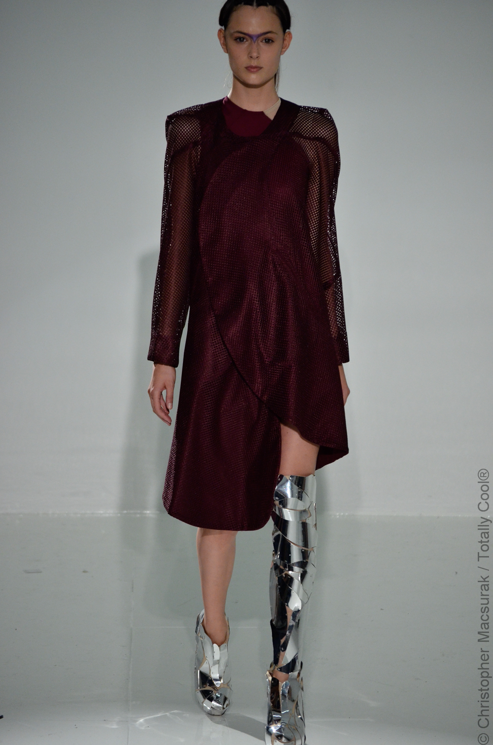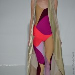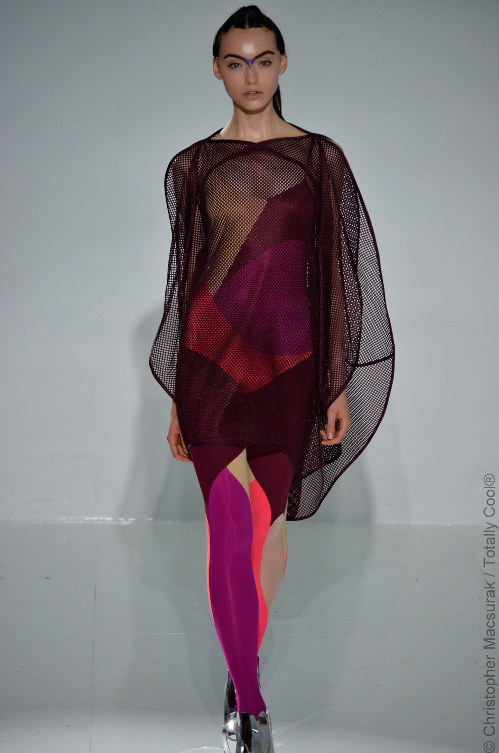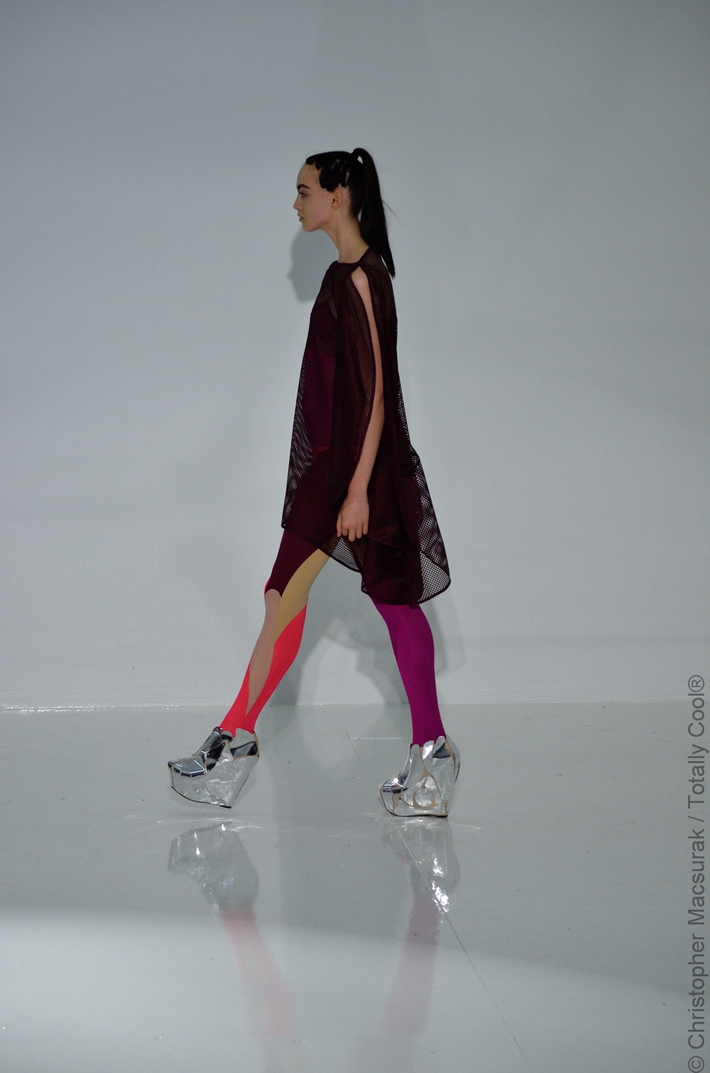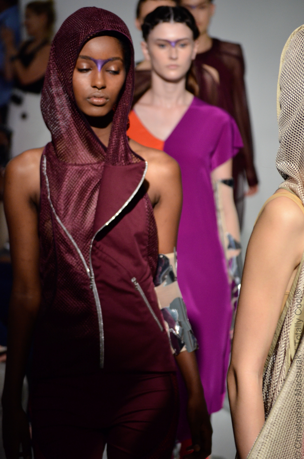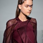 Une collection futuriste et graphique, inspirée par « les champs magnetiques humains ». Les tons sont ocres, bordeaux, sables, beiges et roses.