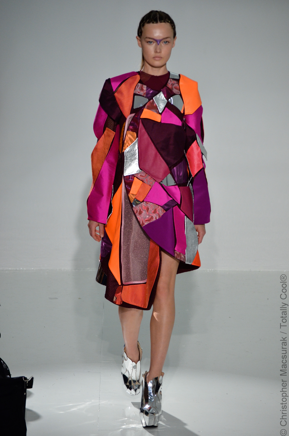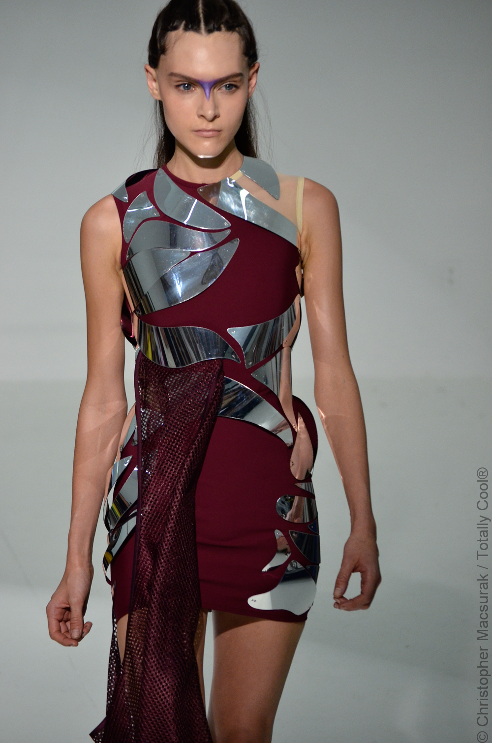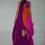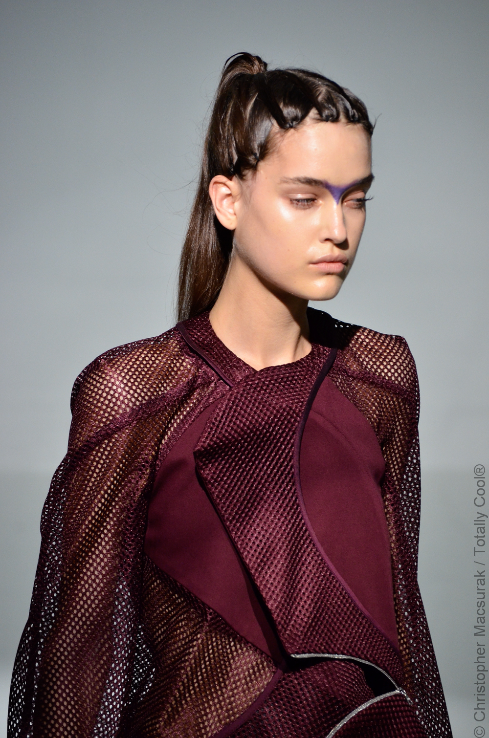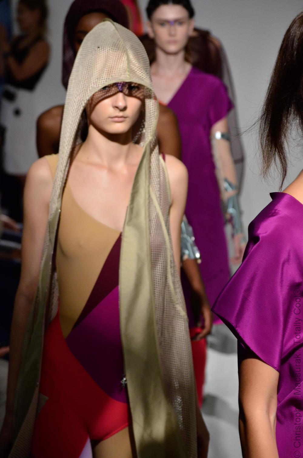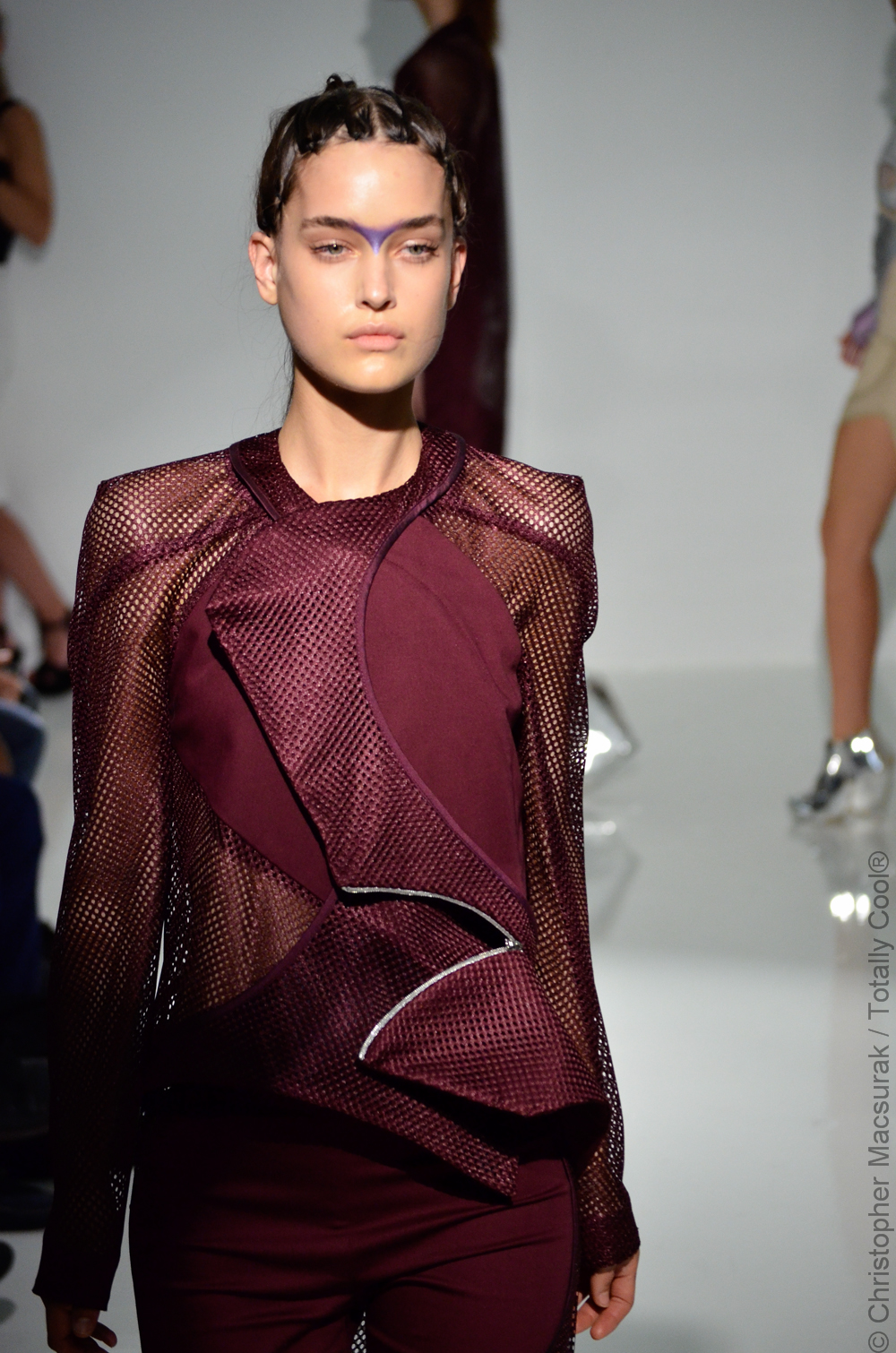 Une collection futuriste et graphique, inspirée par « les champs magnetiques humains ». Les tons sont ocres, bordeaux, sables, beiges et roses.