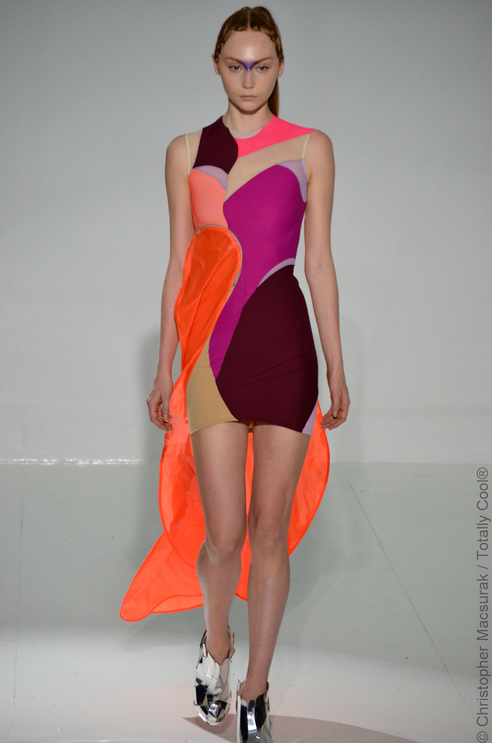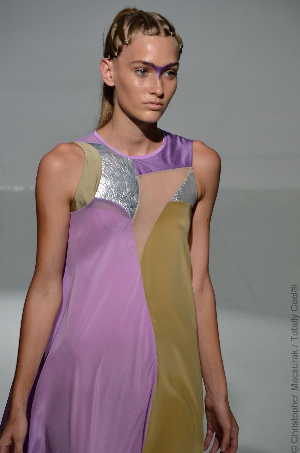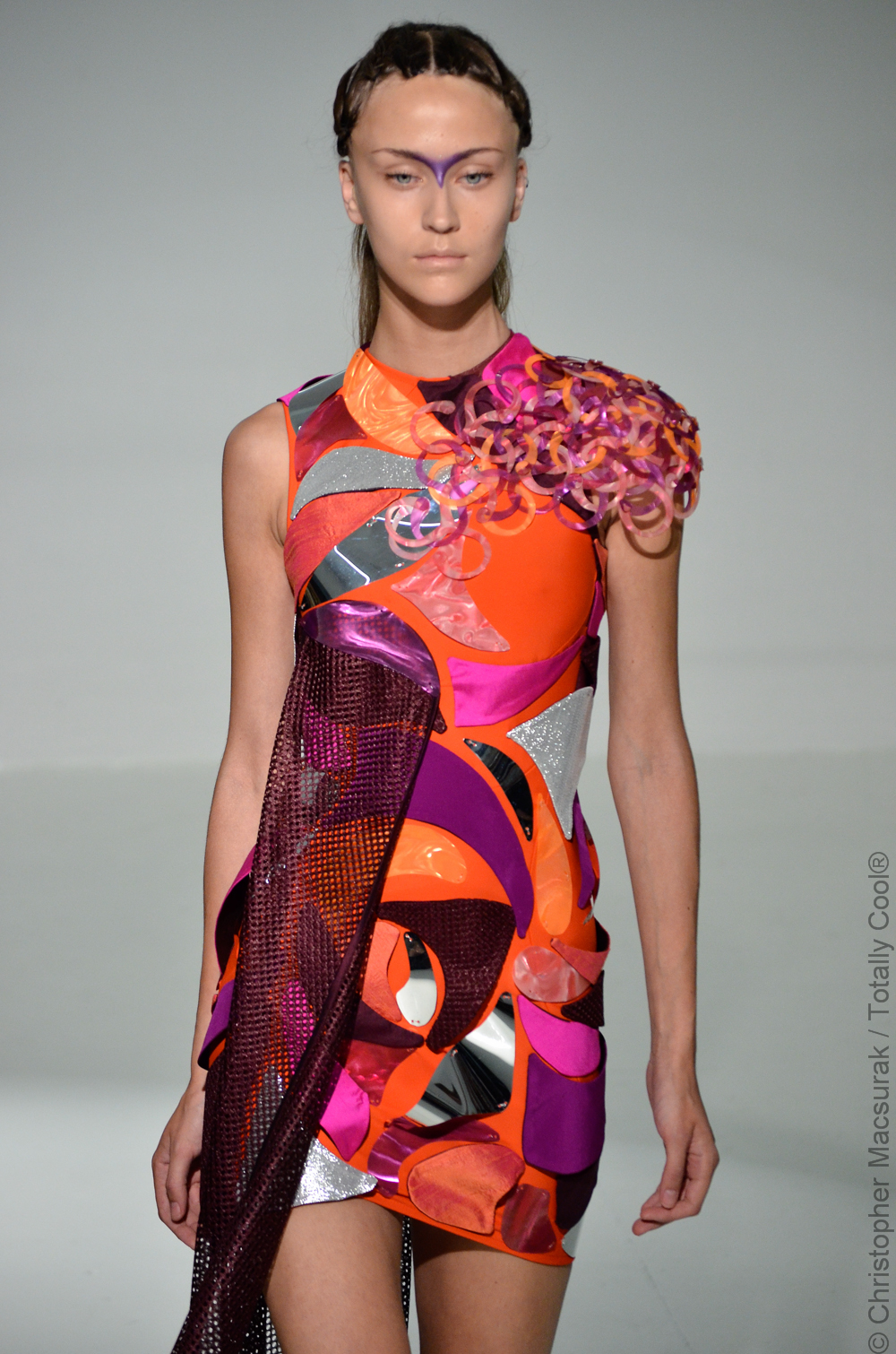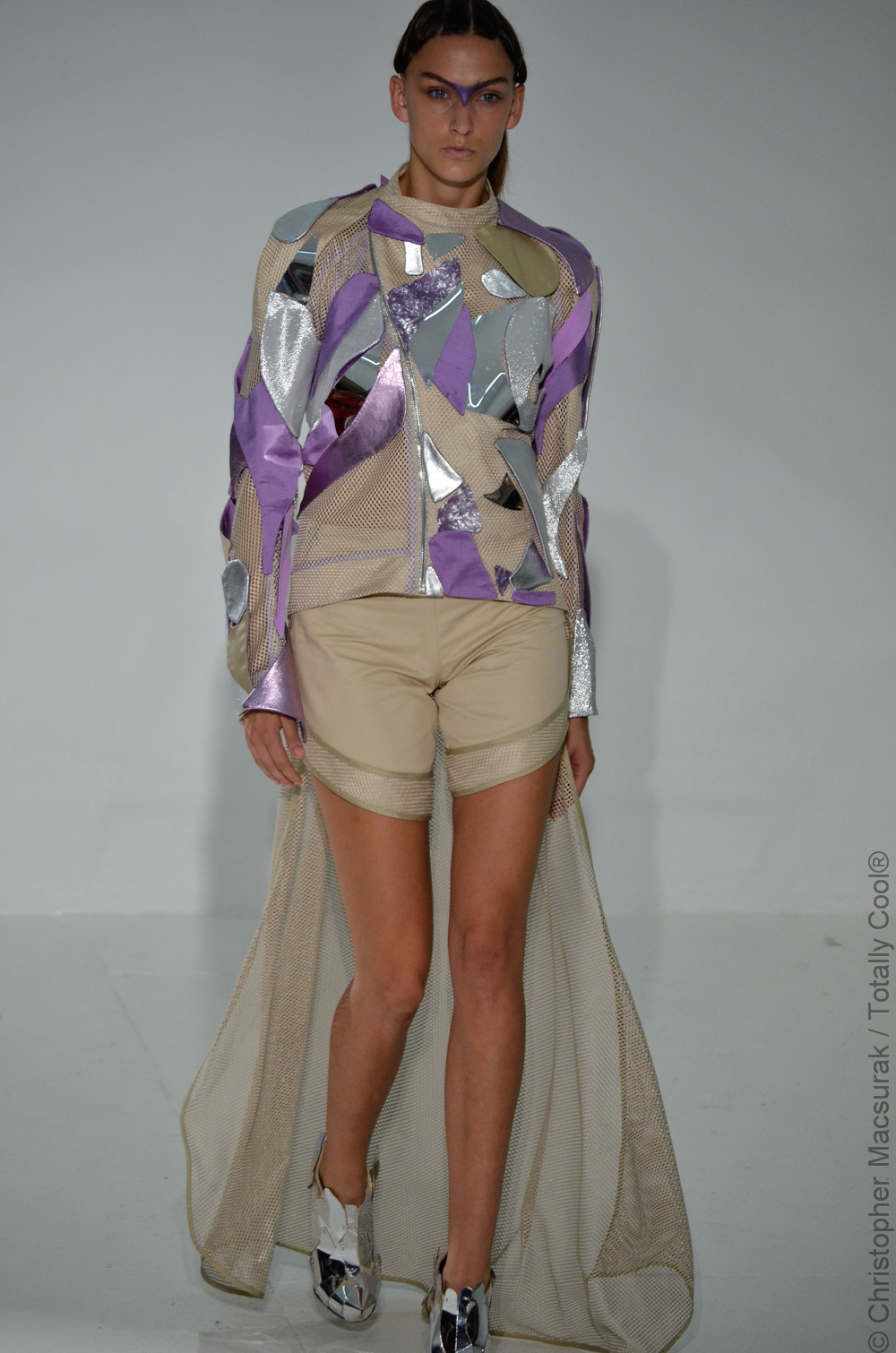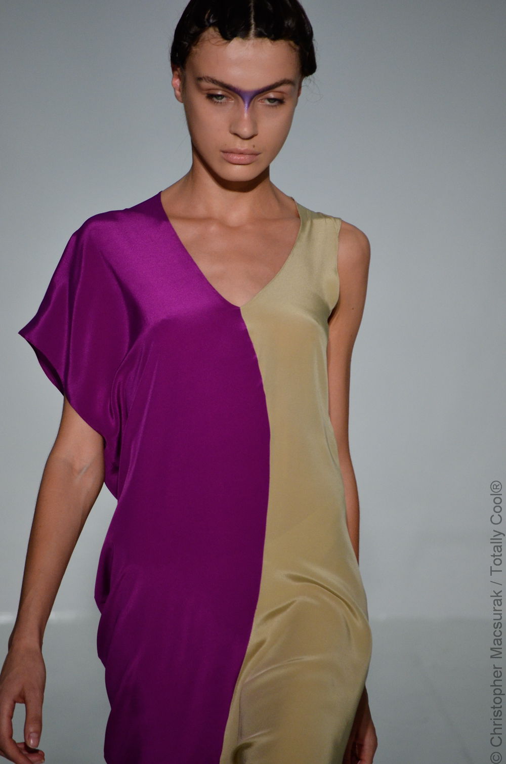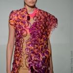 Une collection futuriste et graphique, inspirée par « les champs magnetiques humains ». Les tons sont ocres, bordeaux, sables, beiges et roses.