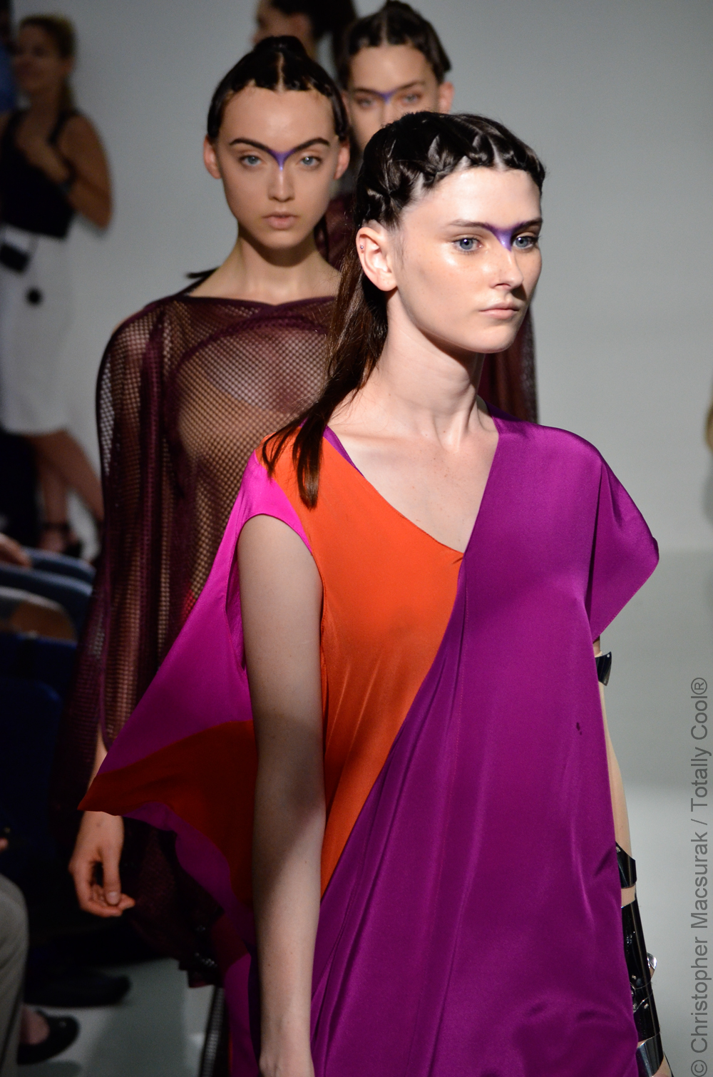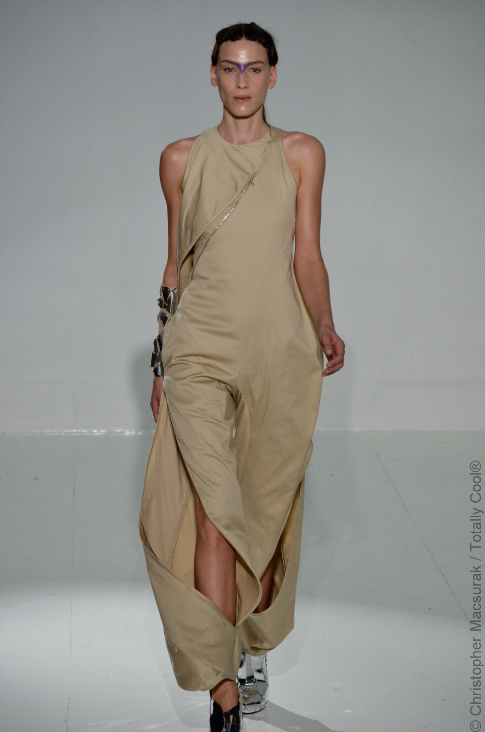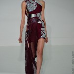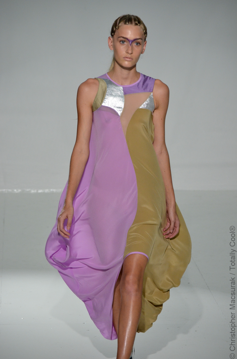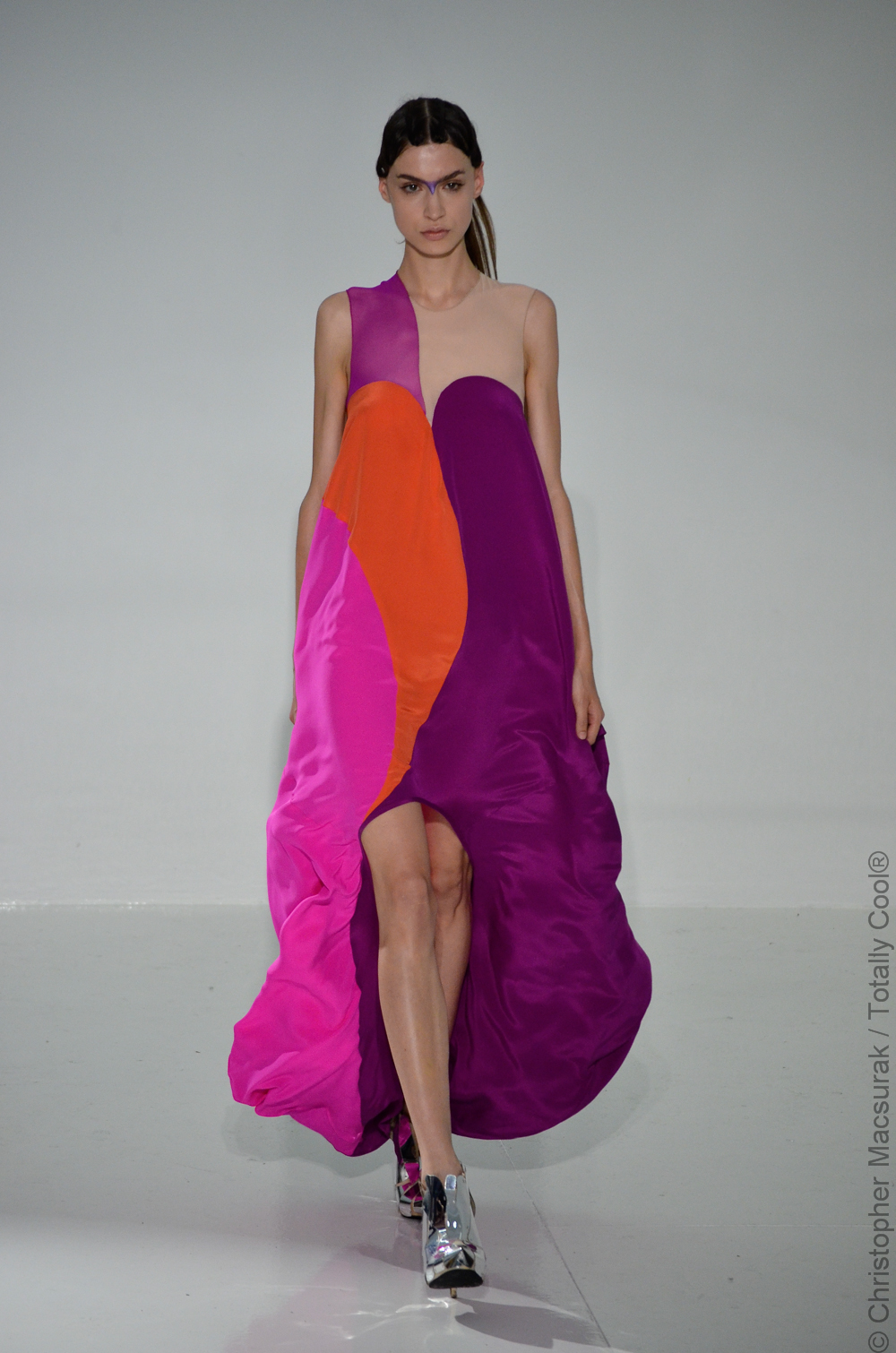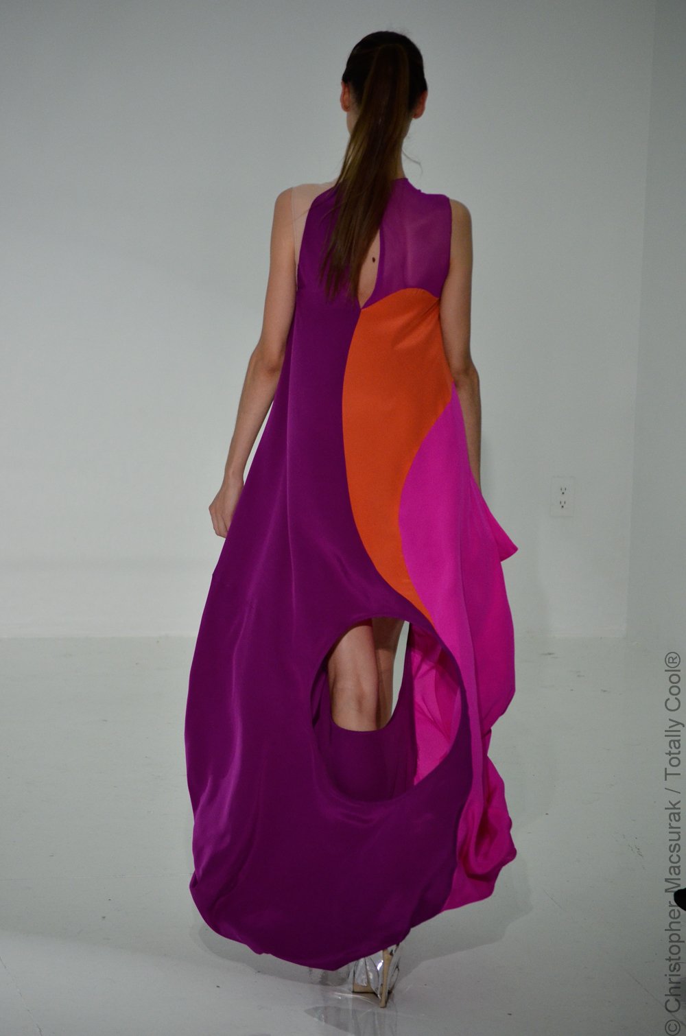 Une collection futuriste et graphique, inspirée par « les champs magnetiques humains ». Les tons sont ocres, bordeaux, sables, beiges et roses.