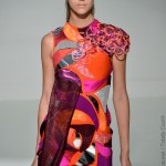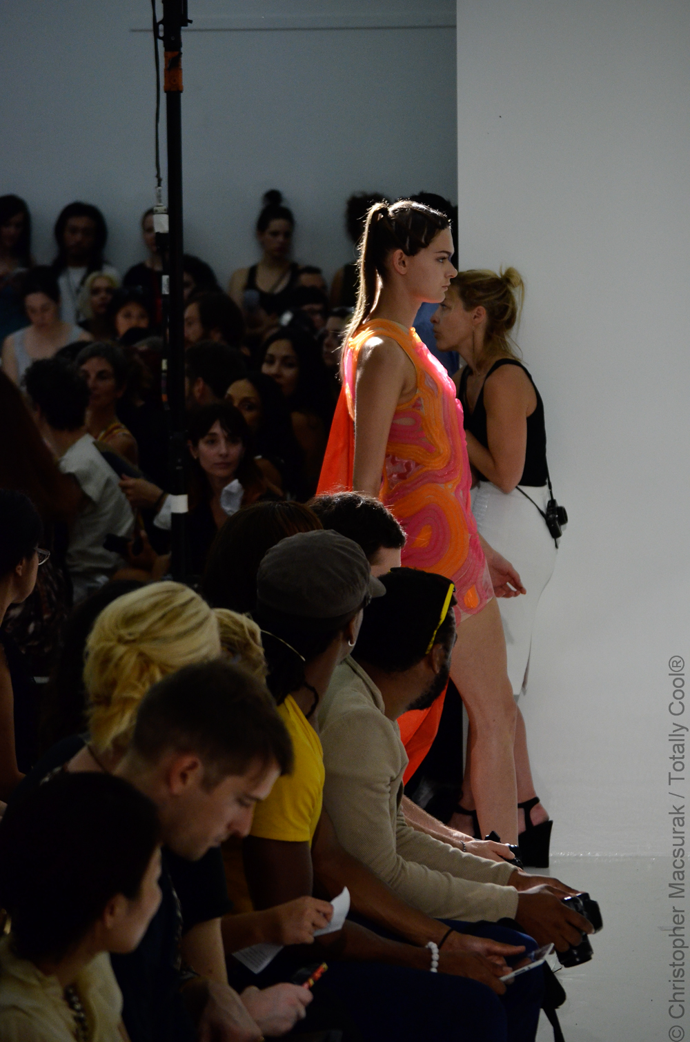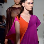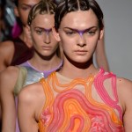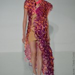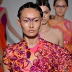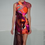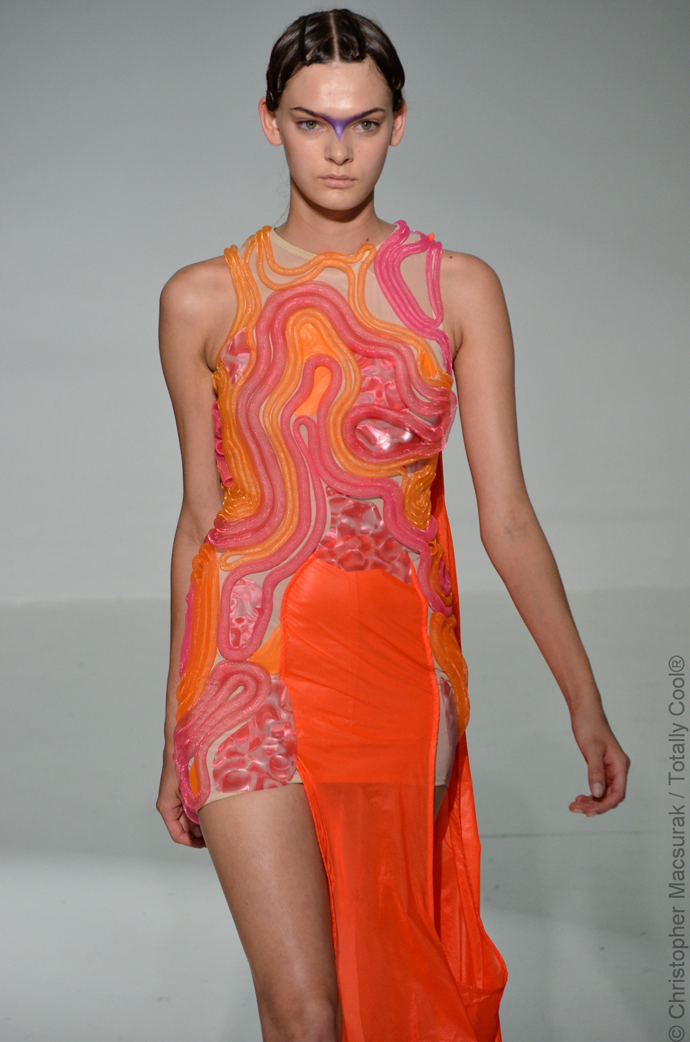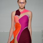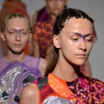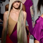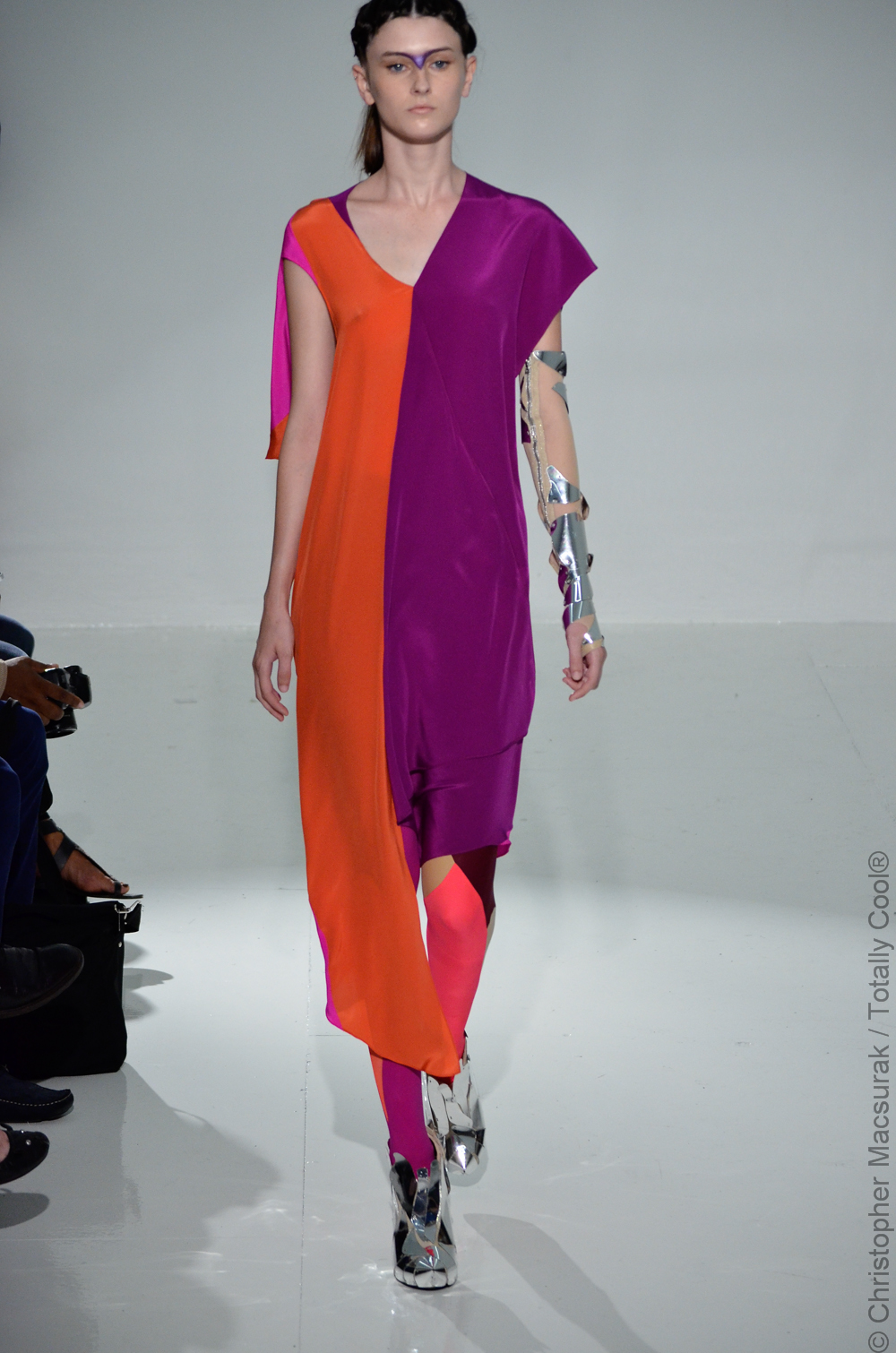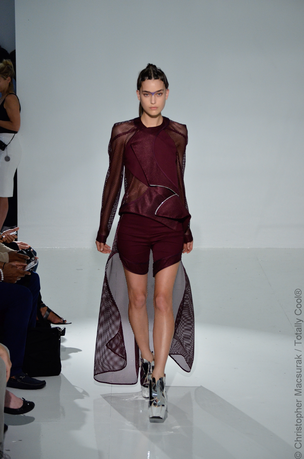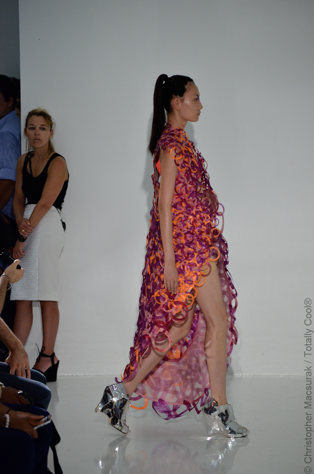 Une collection futuriste et graphique, inspirée par « les champs magnetiques humains ». Les tons sont ocres, bordeaux, sables, beiges et roses.